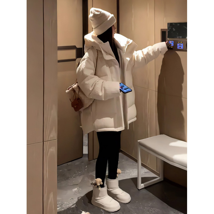 冬季新款連帽長袖百搭羽絨棉服外套女加厚保暖寬松顯瘦純色棉衣