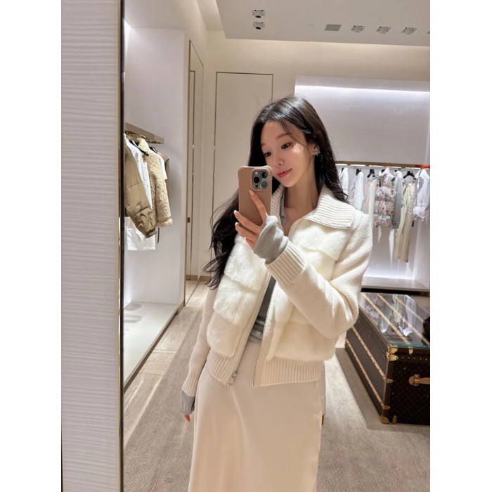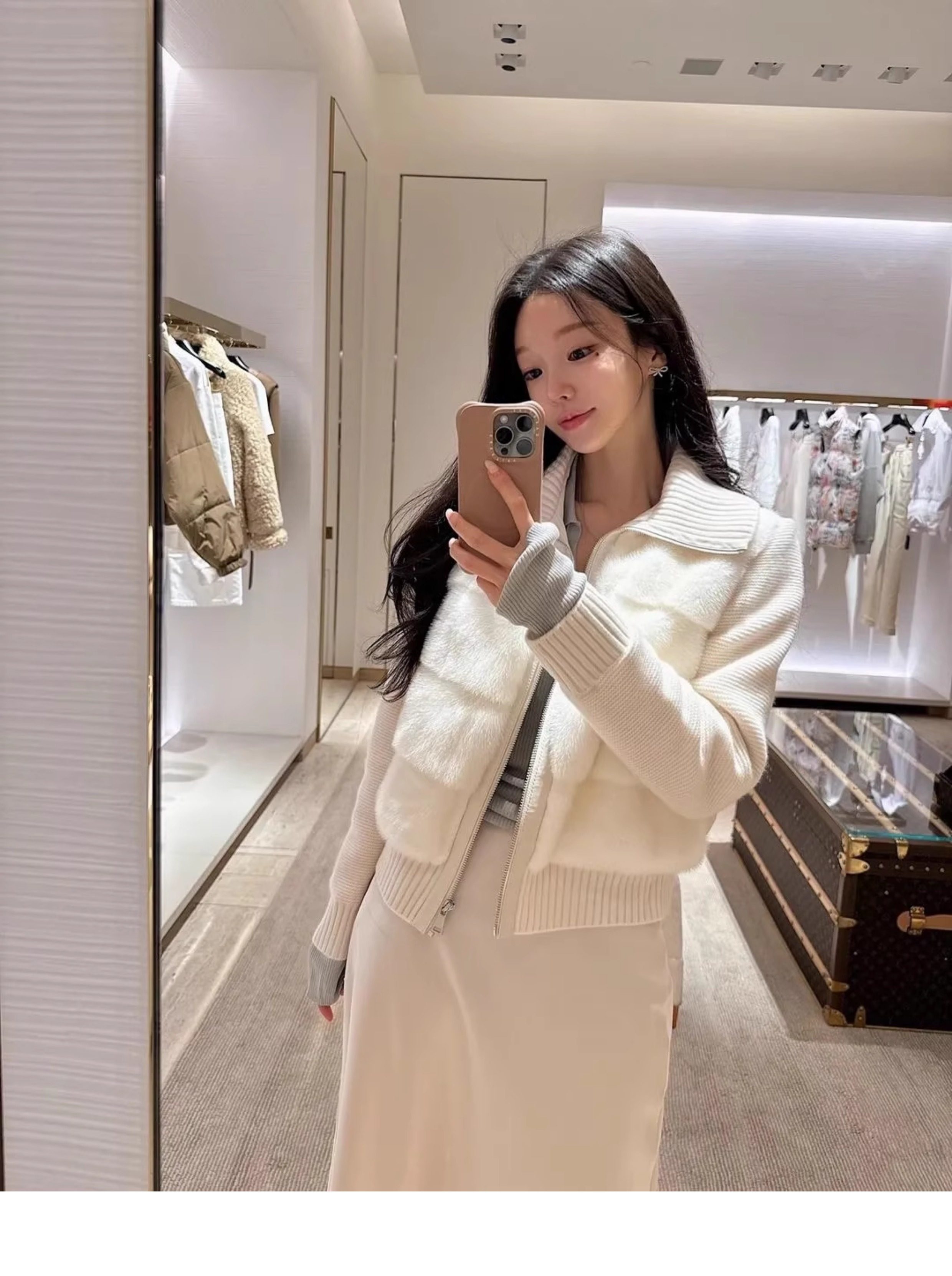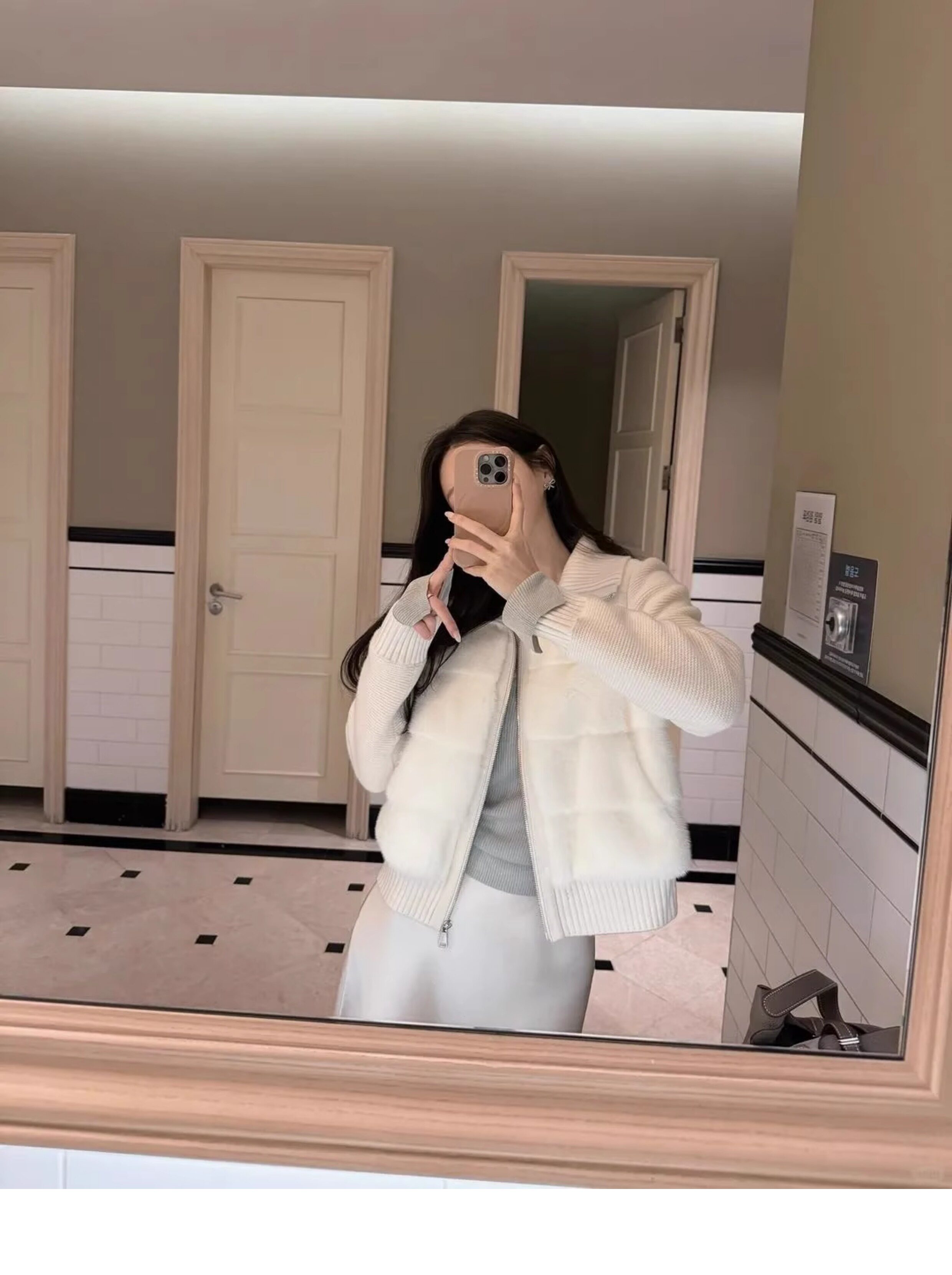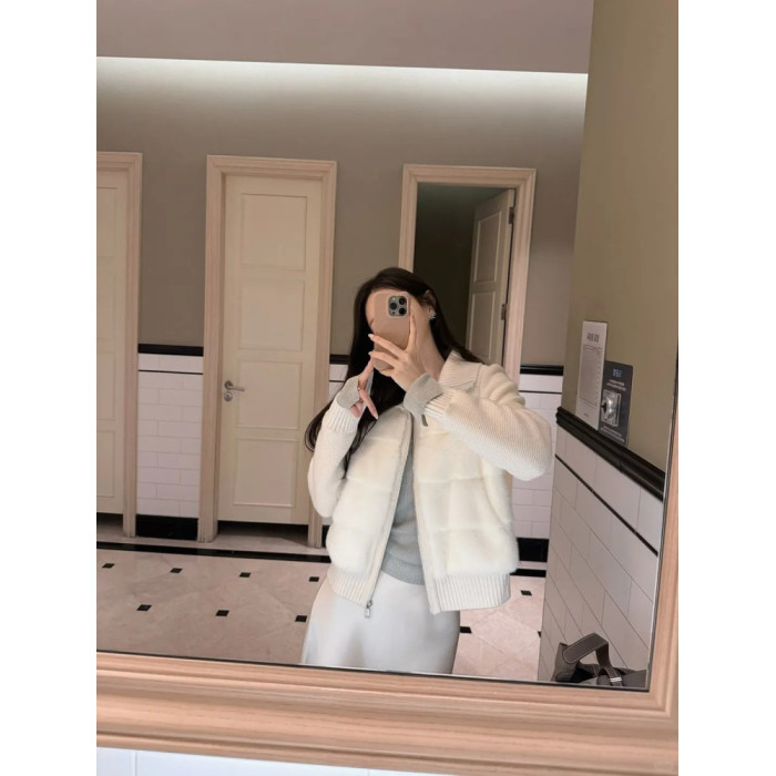 白色針織拼接棉服外套女2024冬季新款高級感小個子洋氣百搭上衣