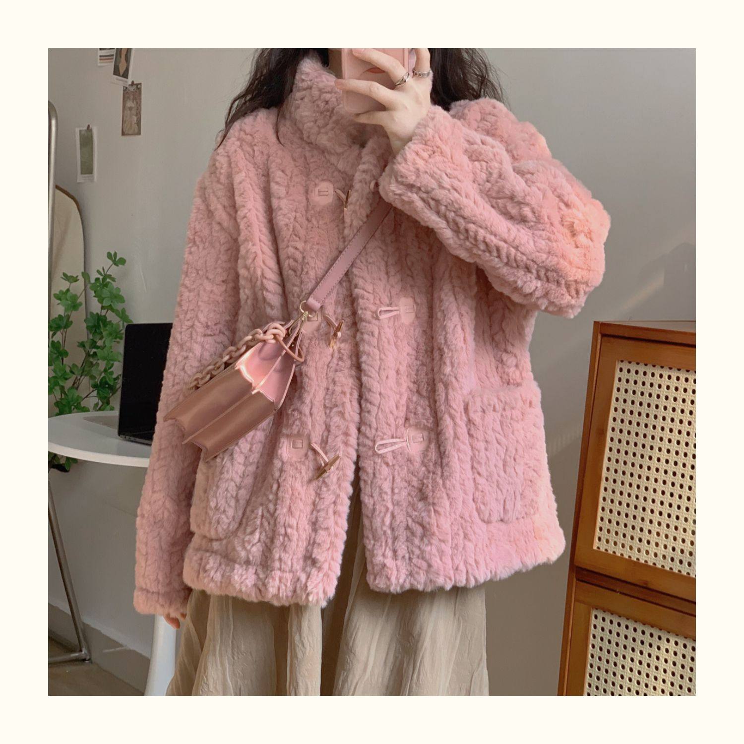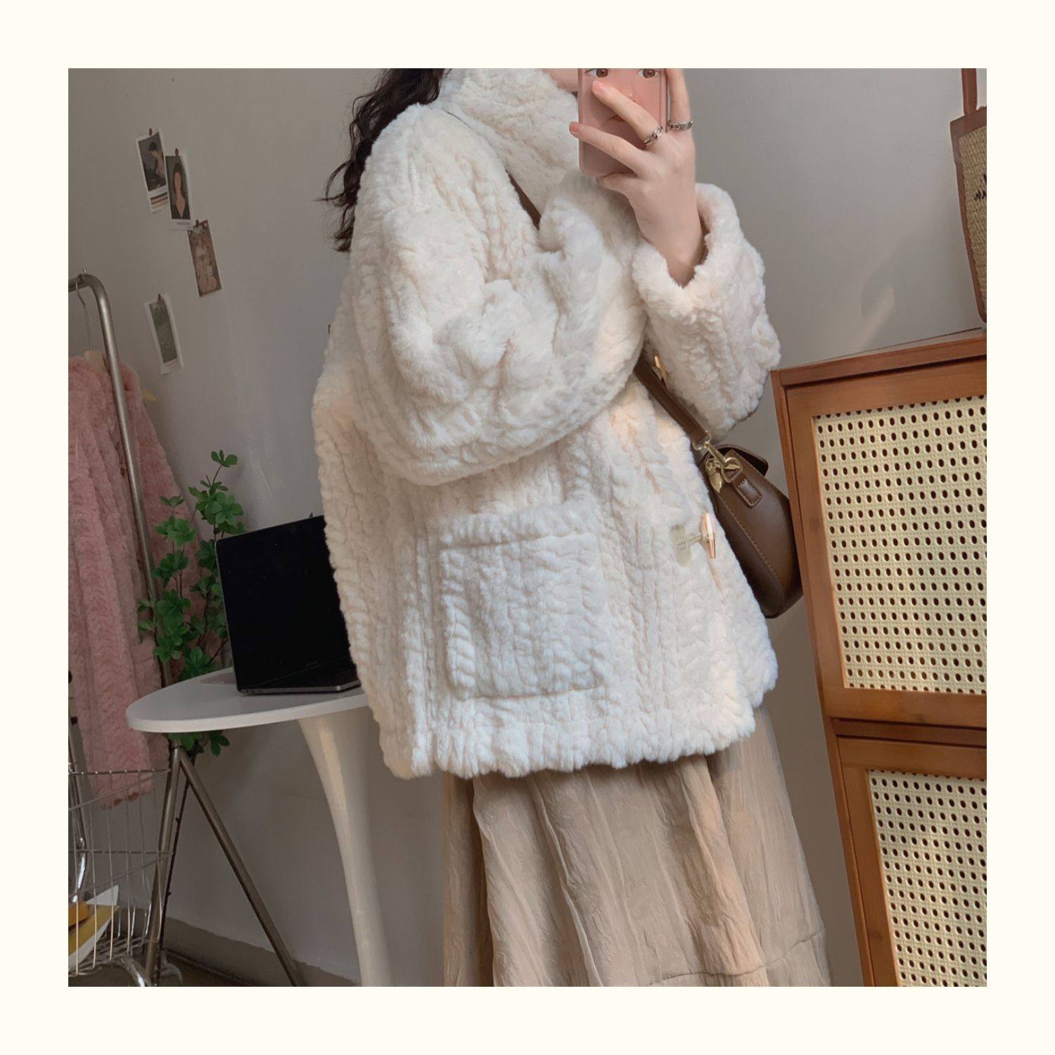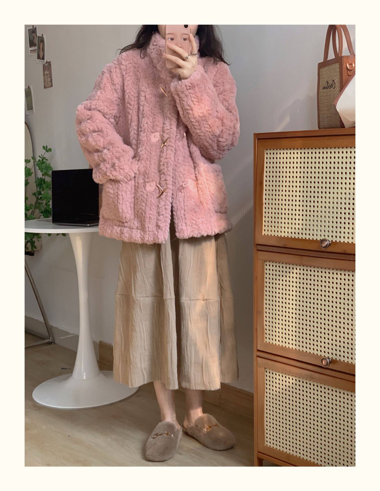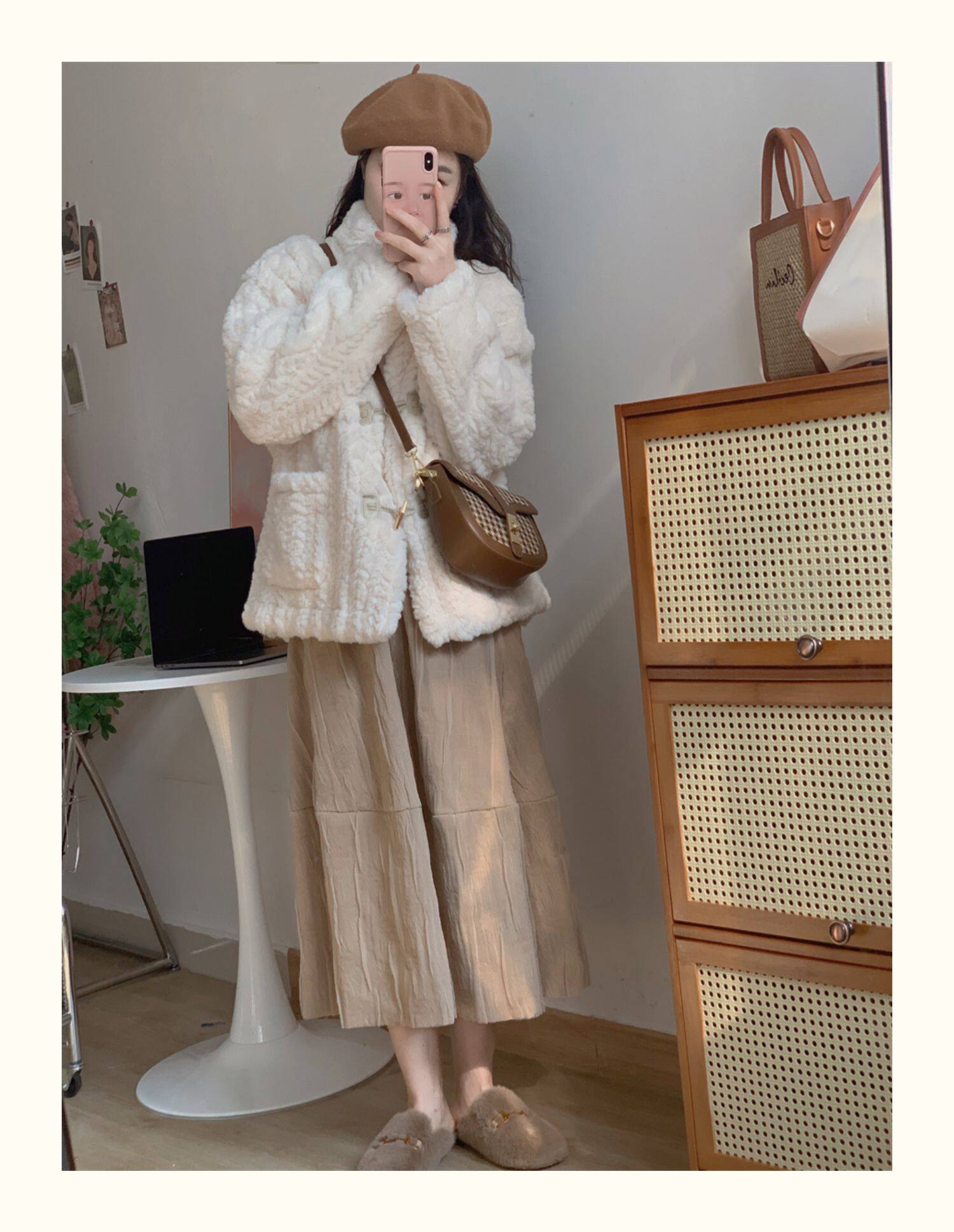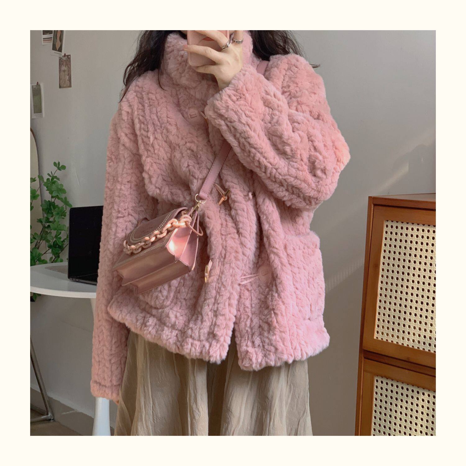 短款小香風牛角釦冬季羊羔毛絨絨外套女2024年新款小個子百搭棉服