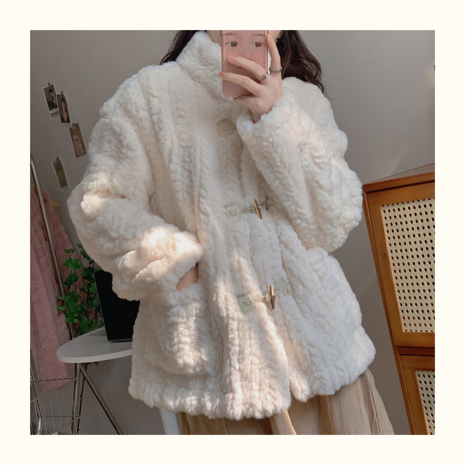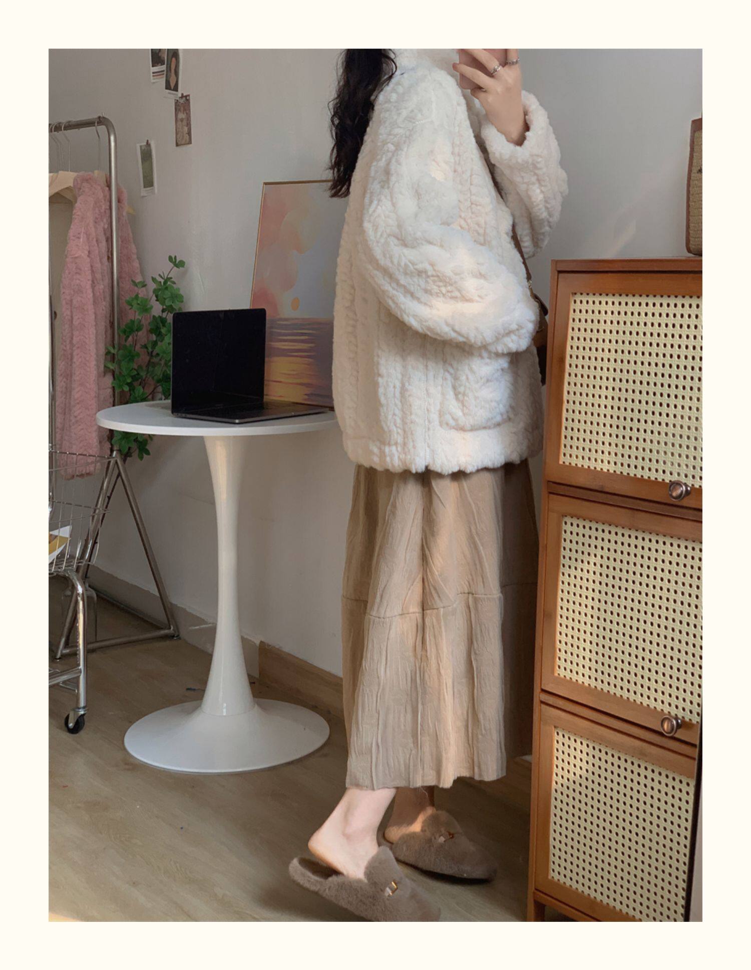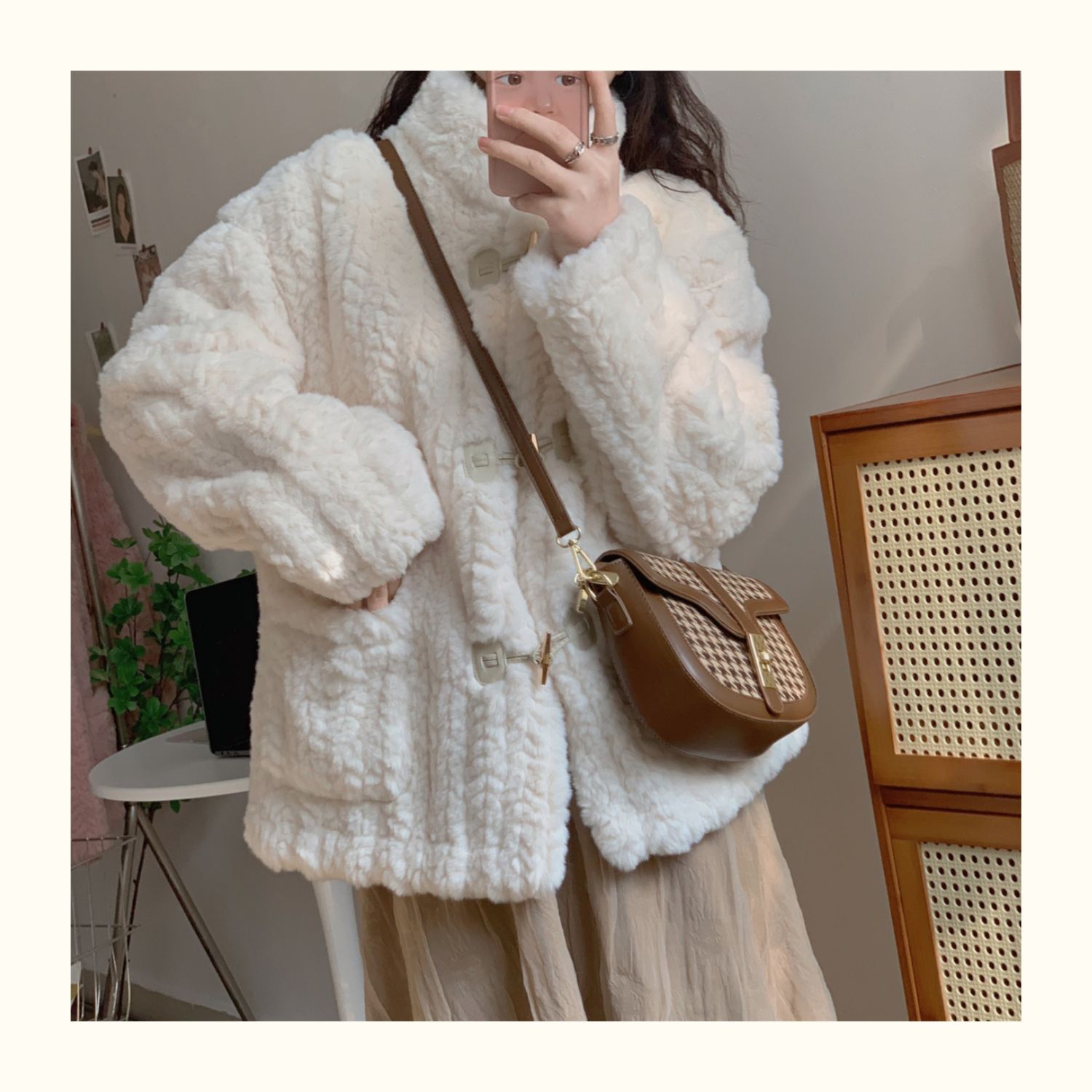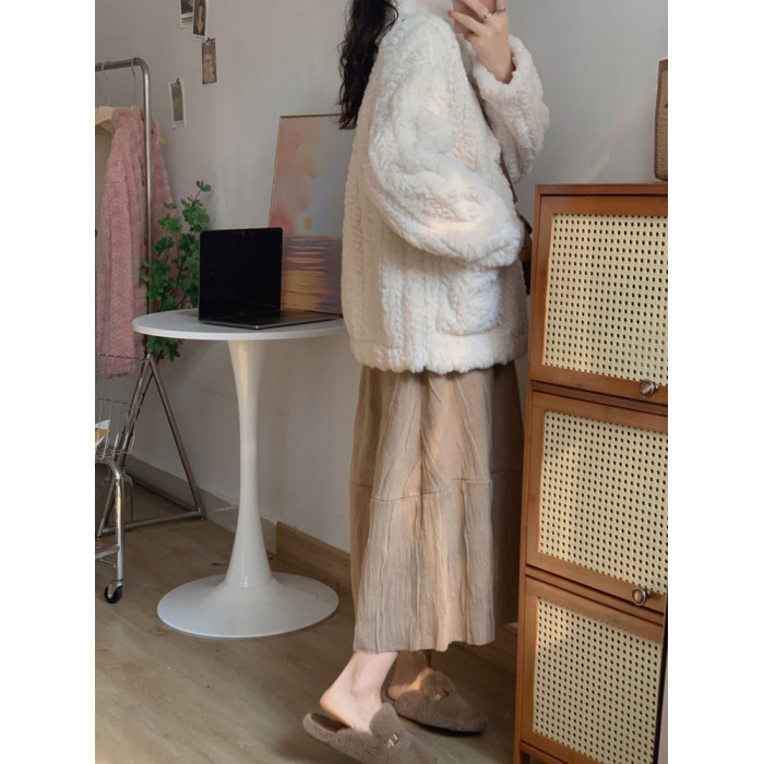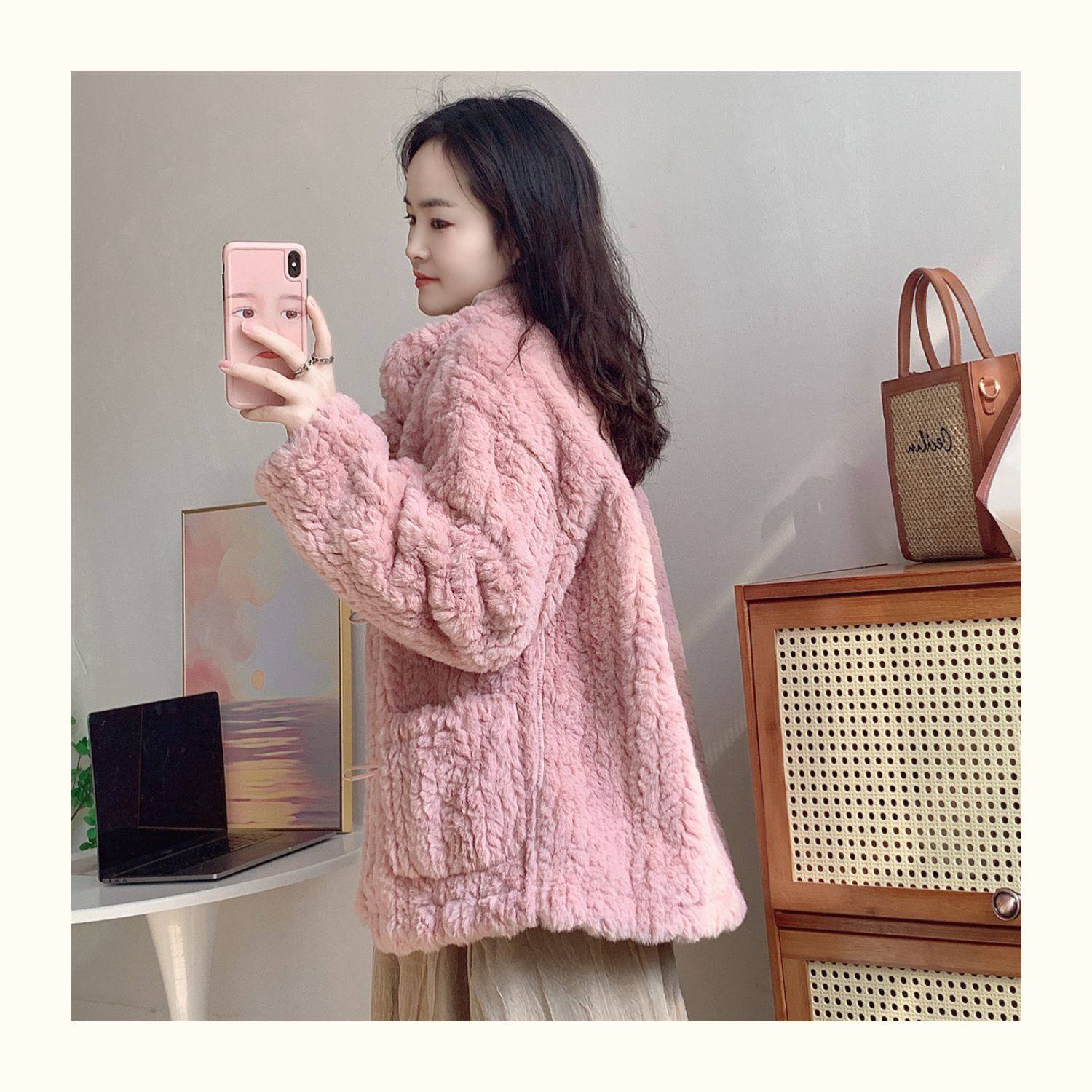 短款小香風牛角釦冬季羊羔毛絨絨外套女2024年新款小個子百搭棉服