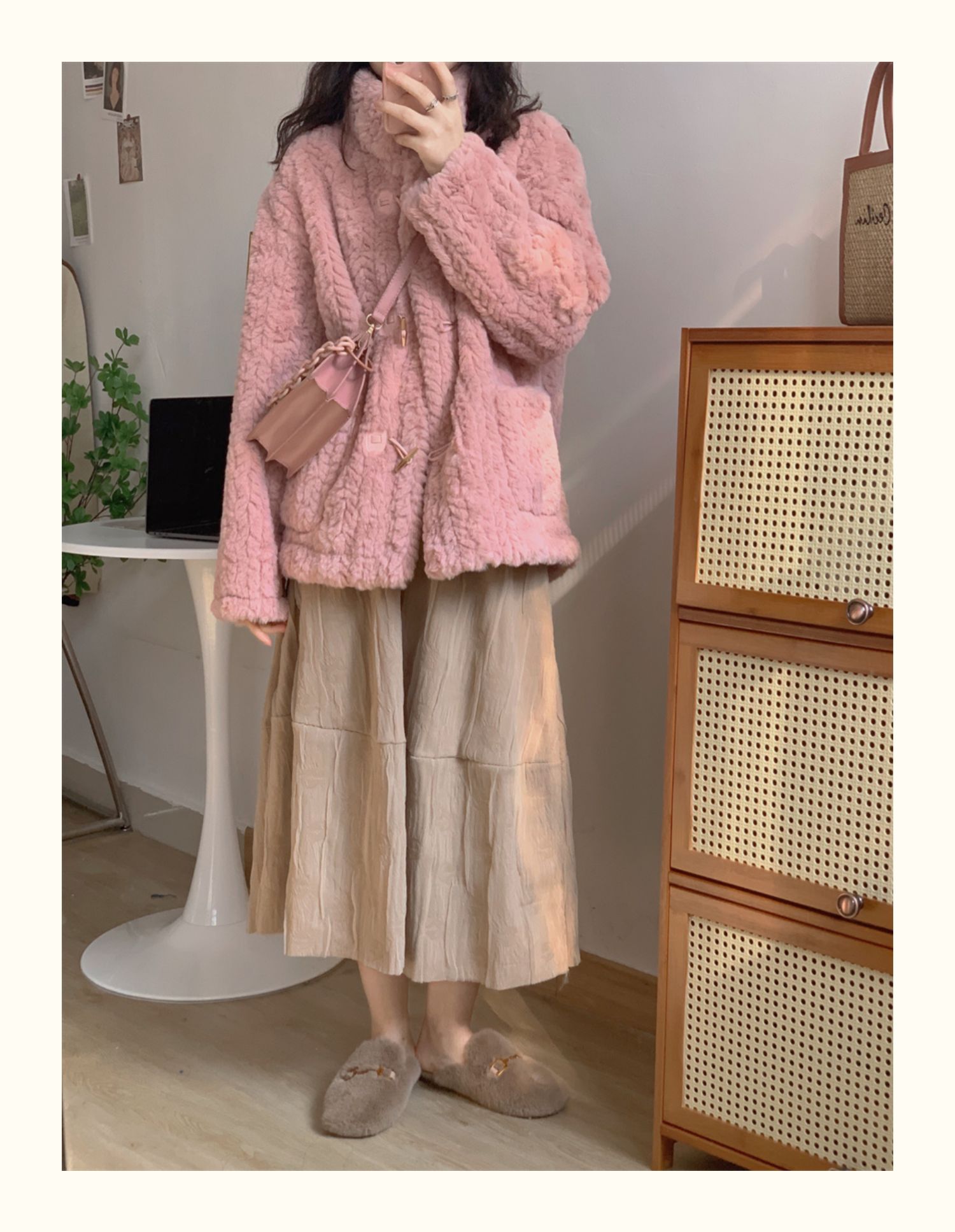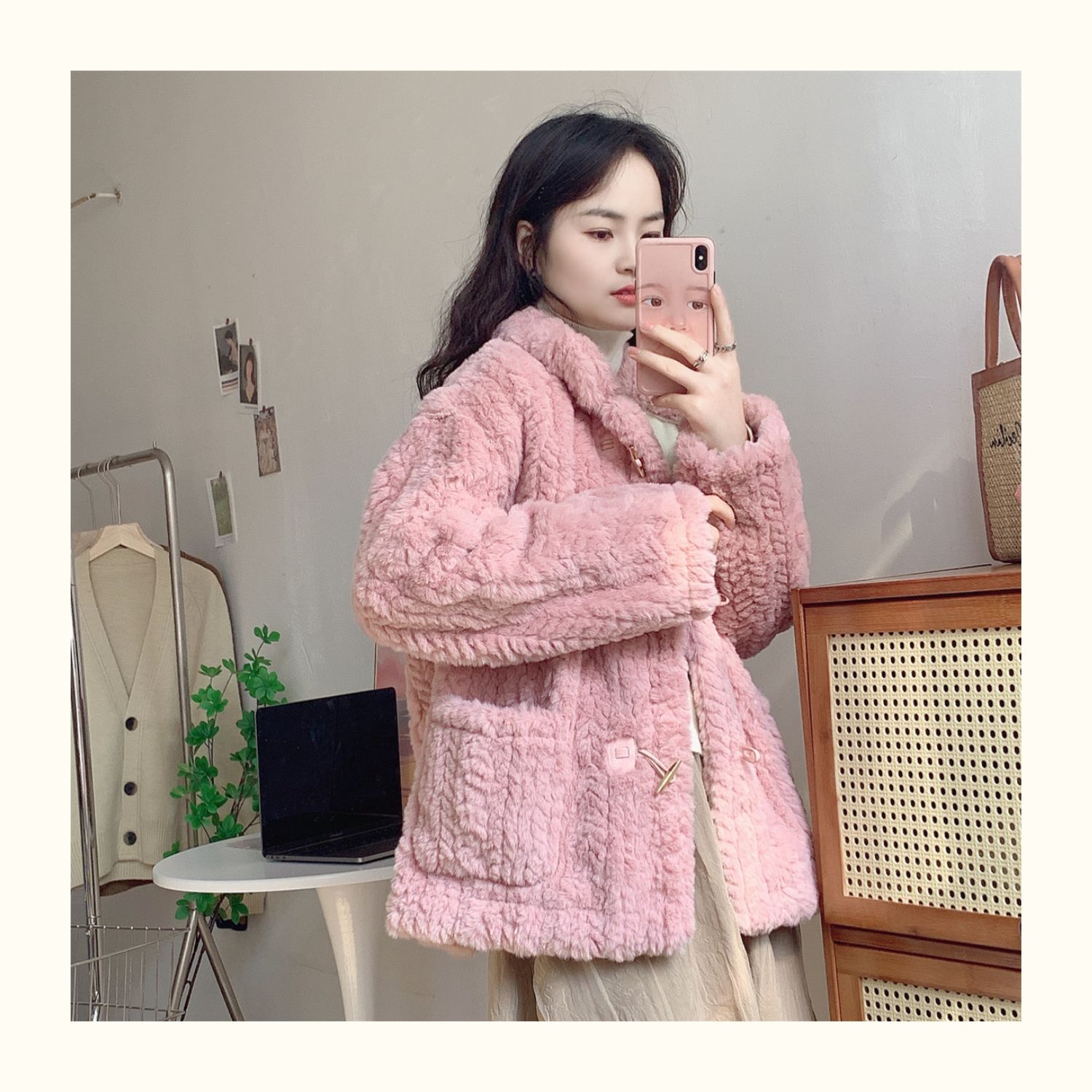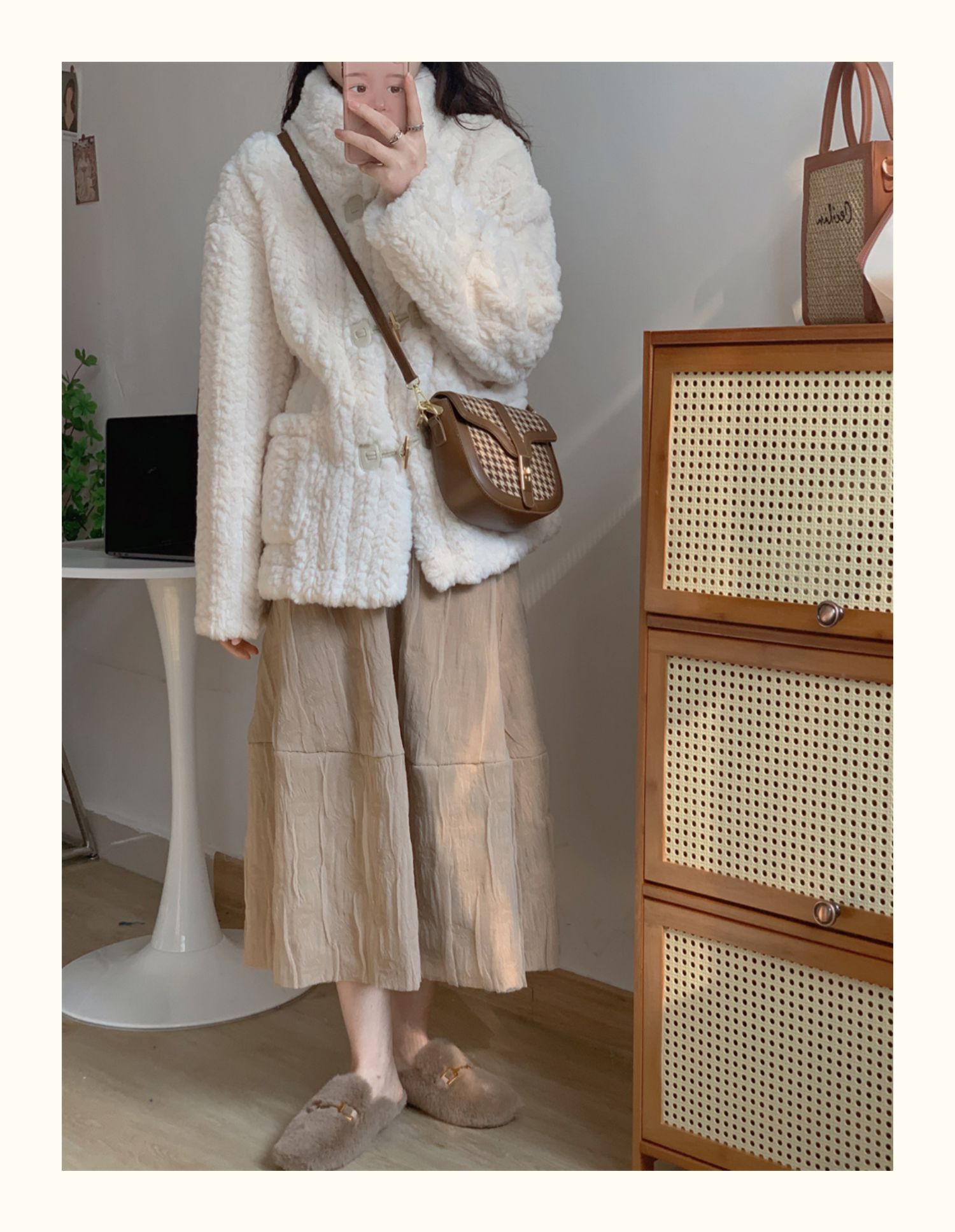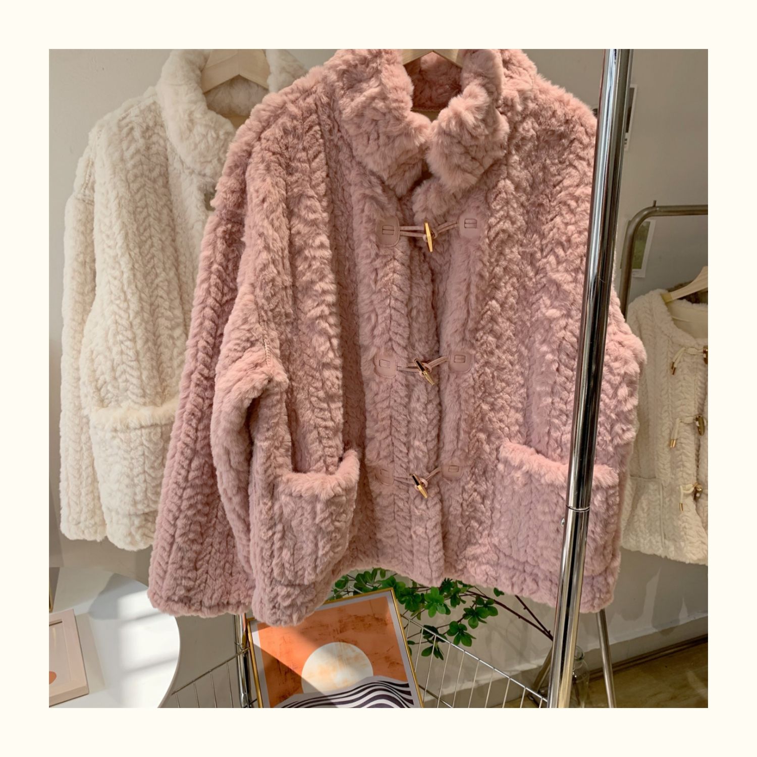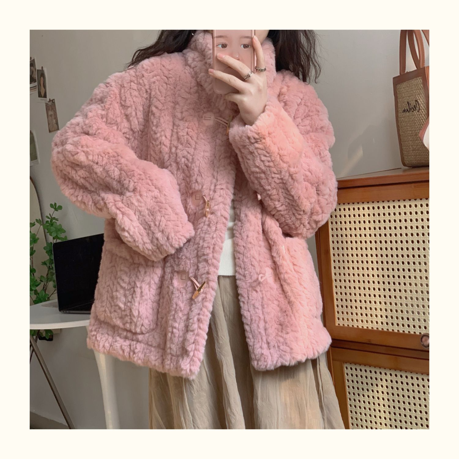 短款小香風牛角釦冬季羊羔毛絨絨外套女2024年新款小個子百搭棉服