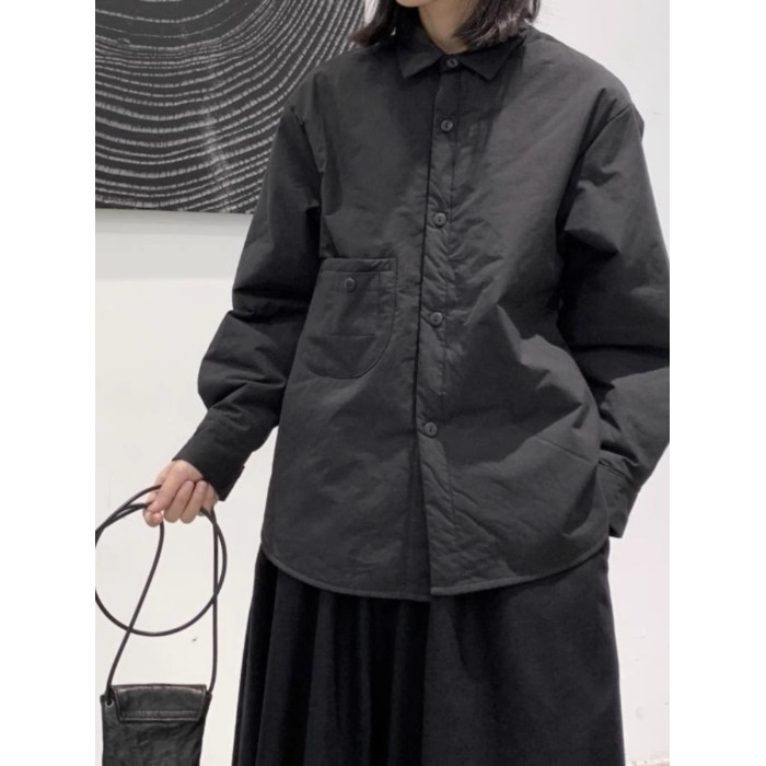 黑色夾棉襯衫棉服女士秋冬新款簡約百搭輕薄棉衣顯瘦休閒襯衣外套