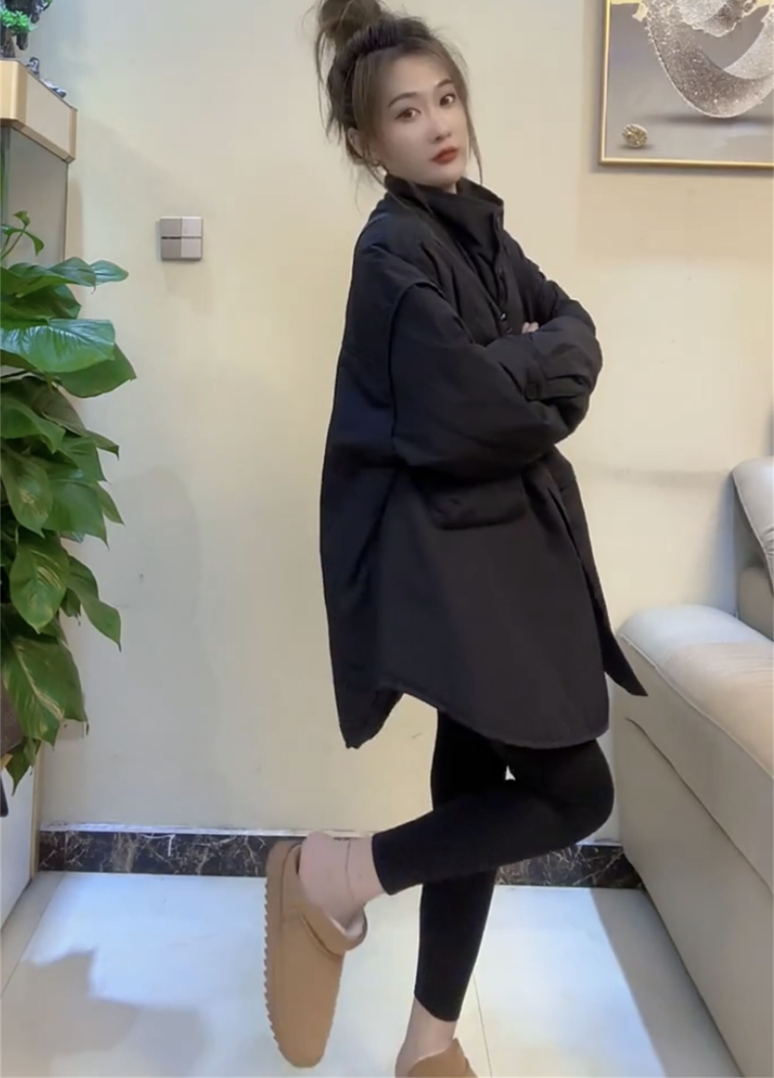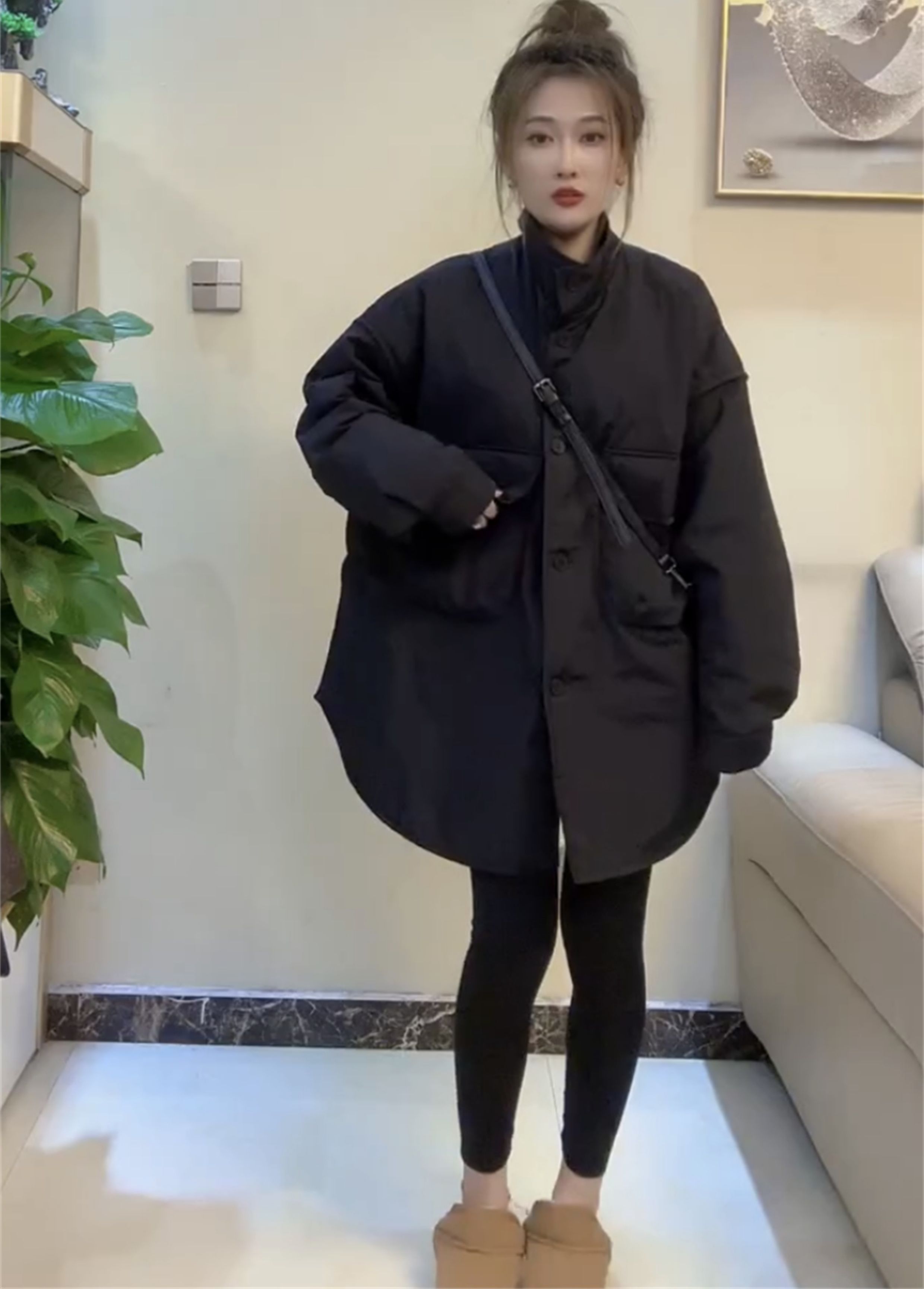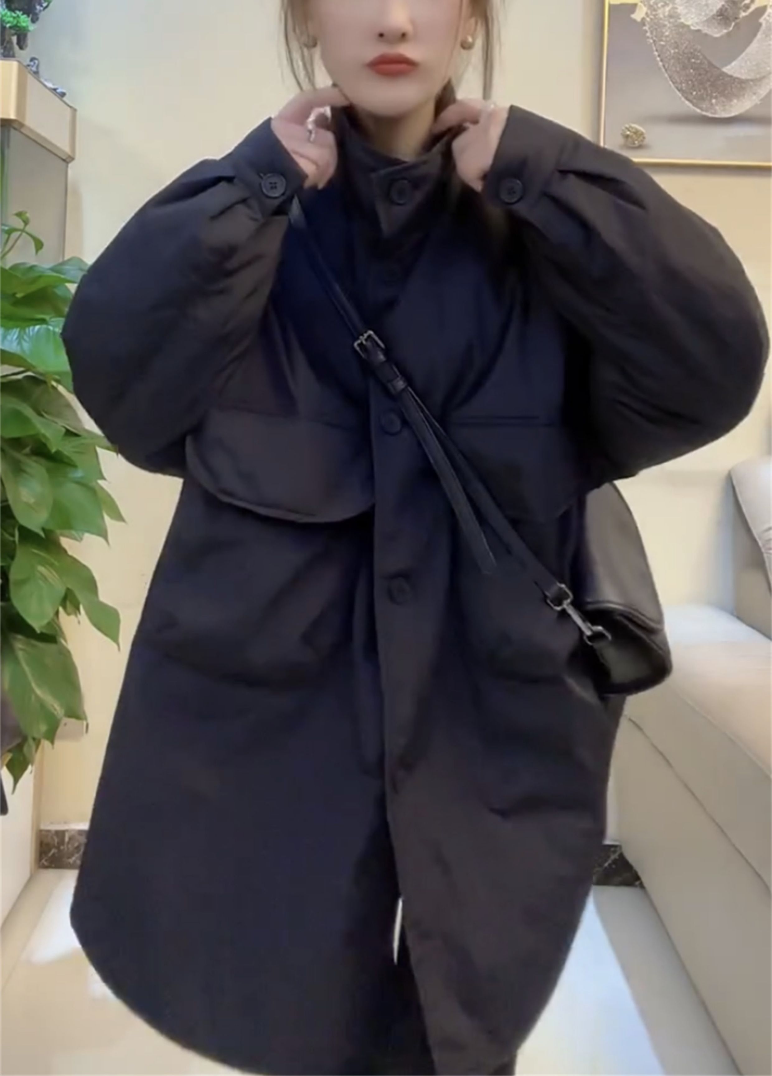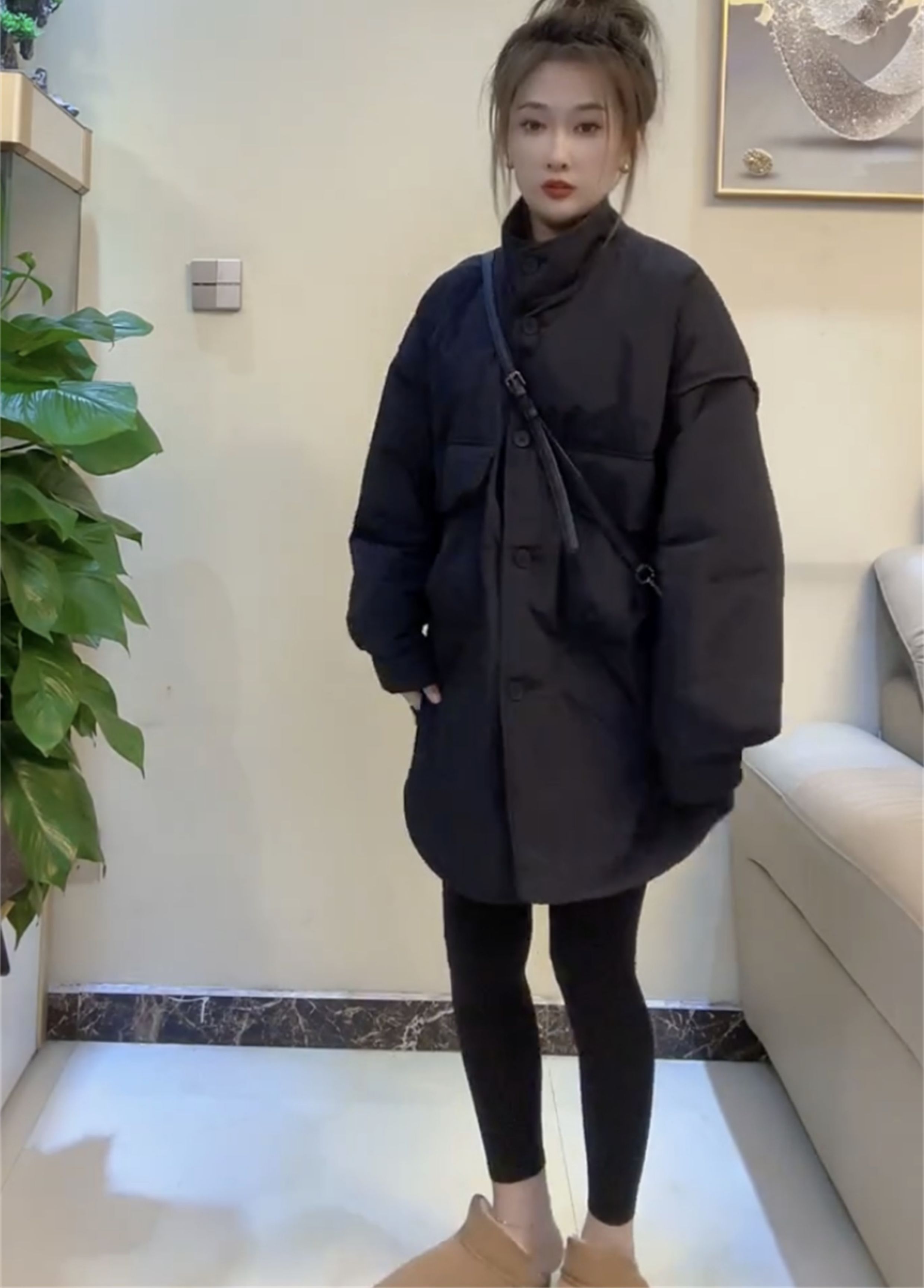 歐貨冬季黑色加厚工裝羽絨棉服設計感長款寬松韓版加棉洋氣外套女