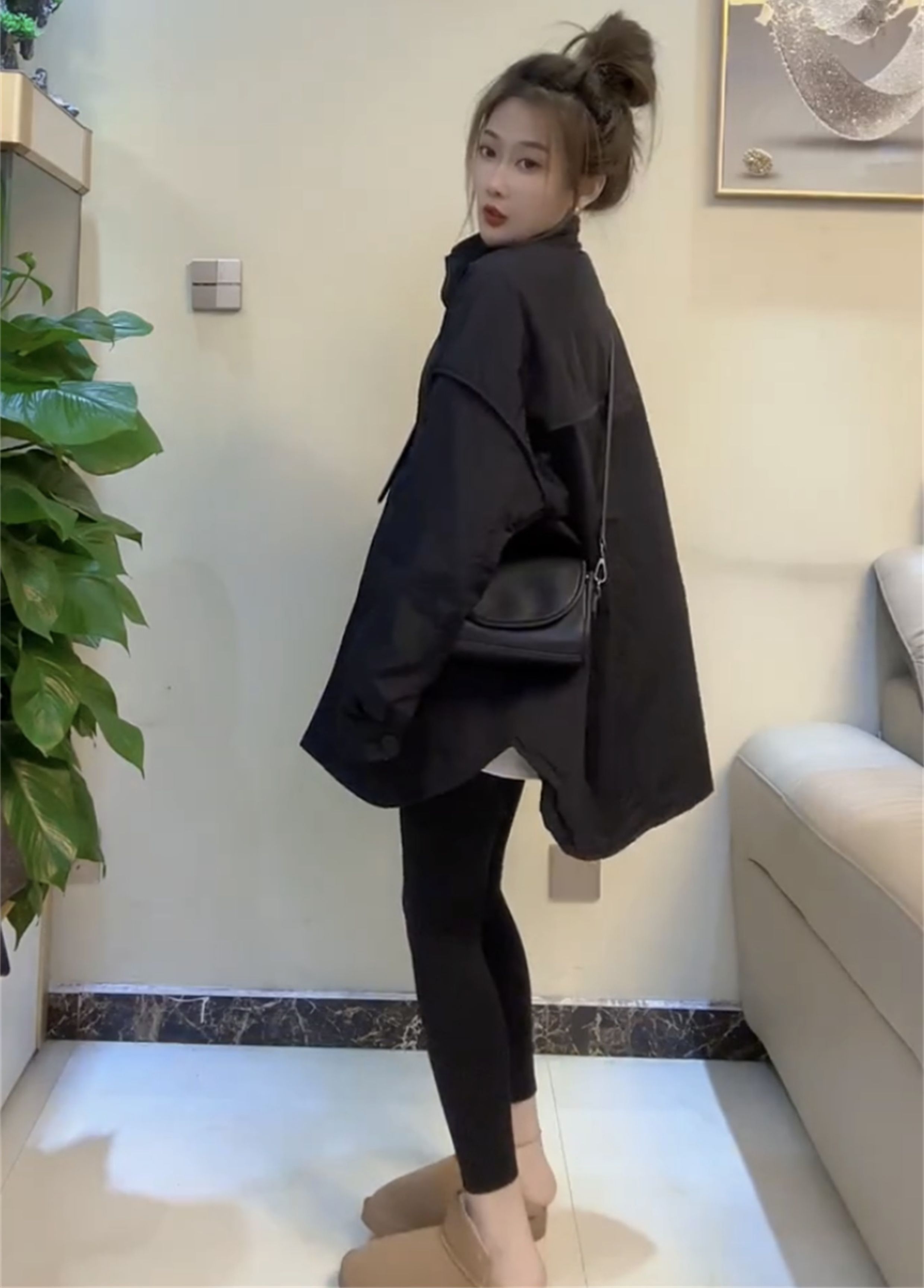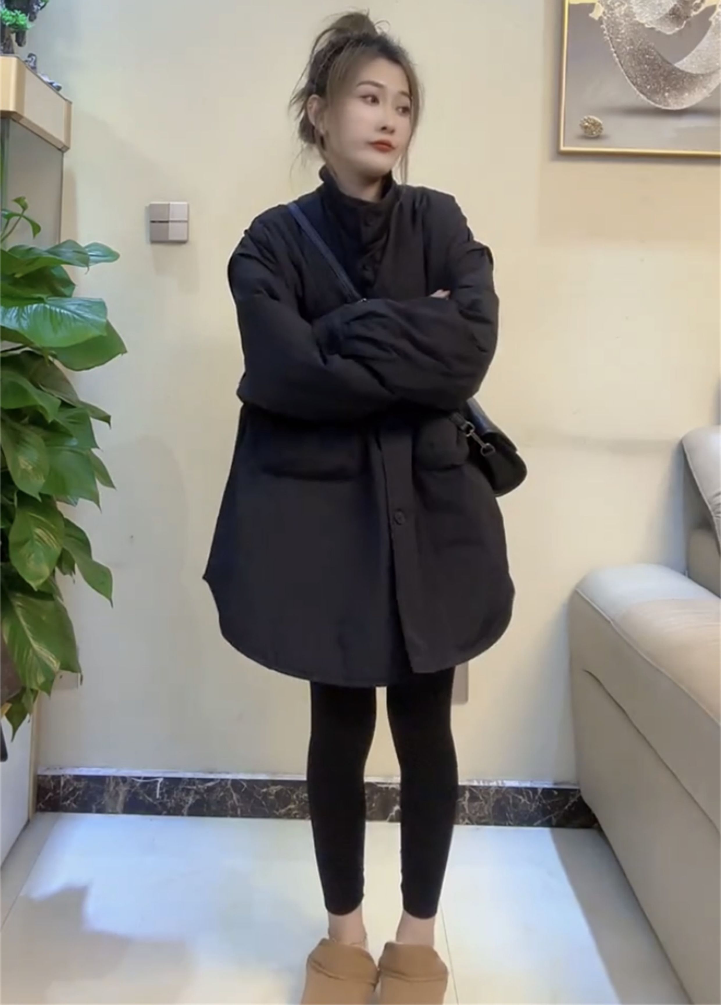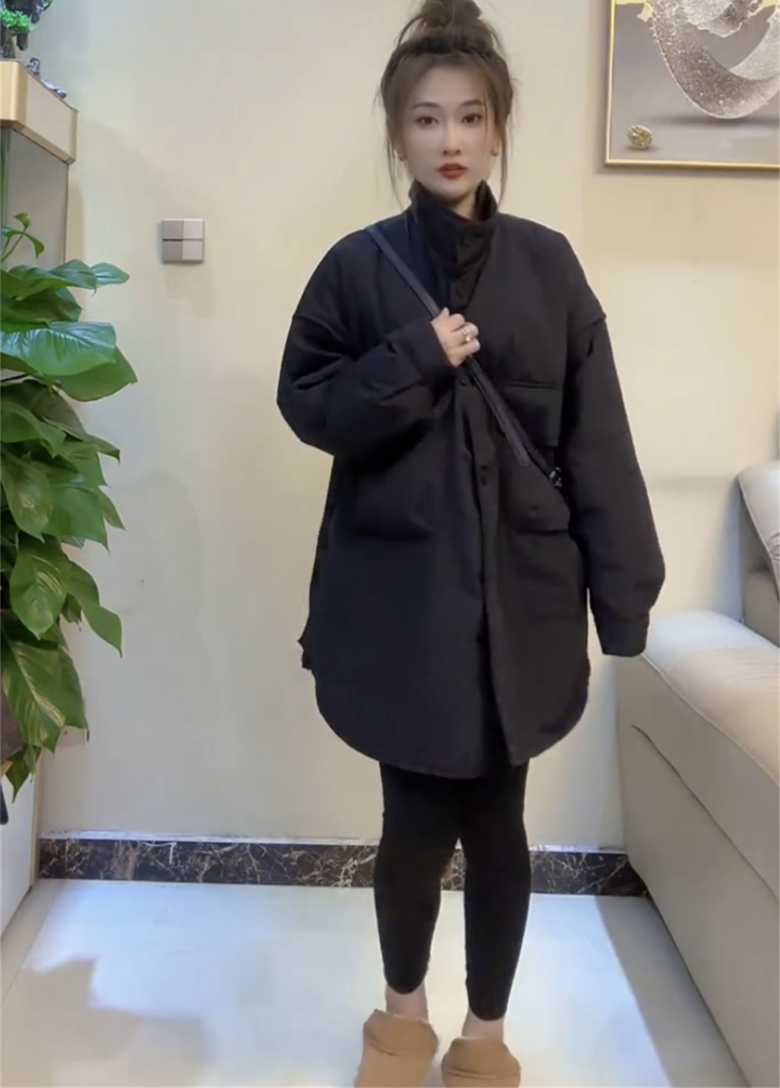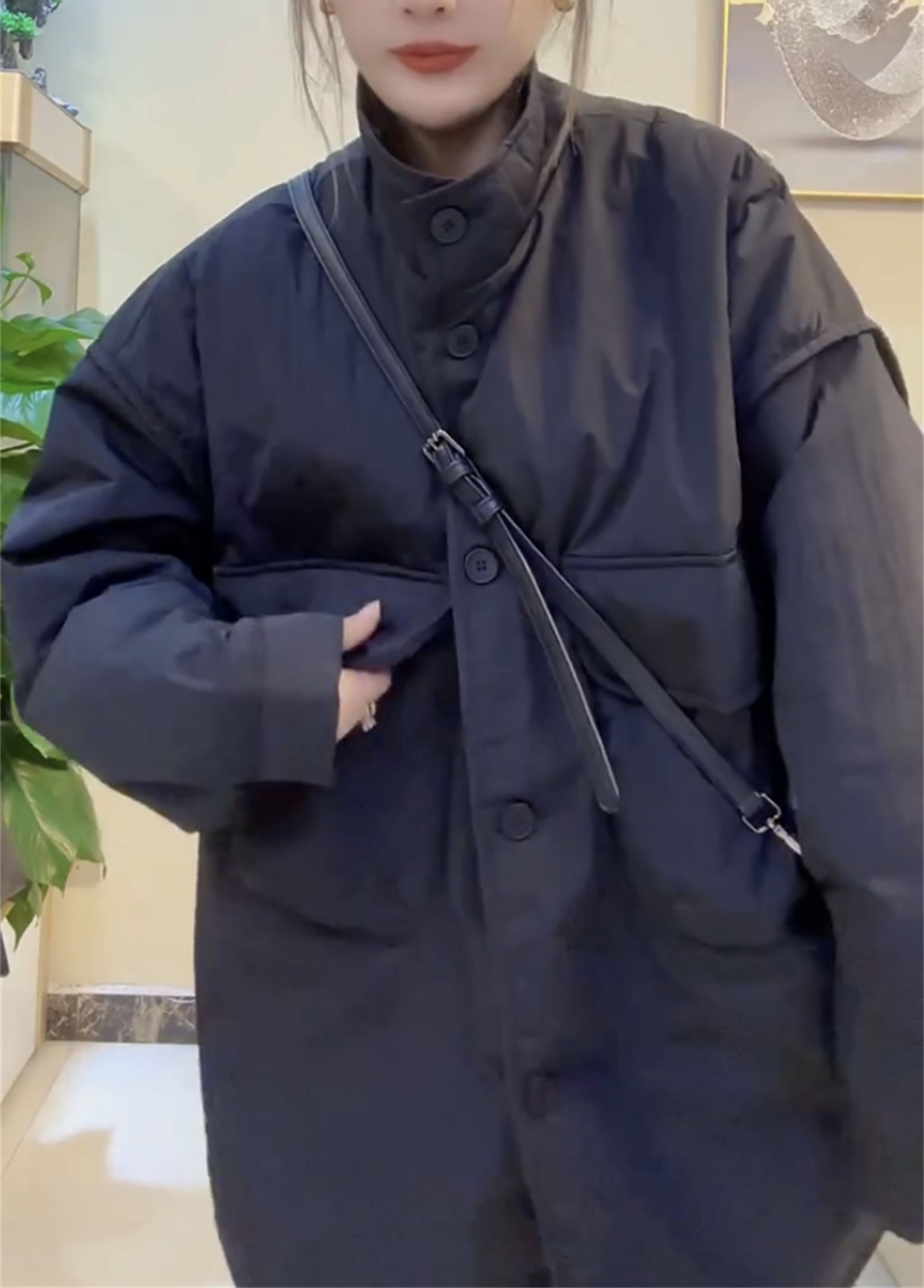 歐貨冬季黑色加厚工裝羽絨棉服設計感長款寬松韓版加棉洋氣外套女