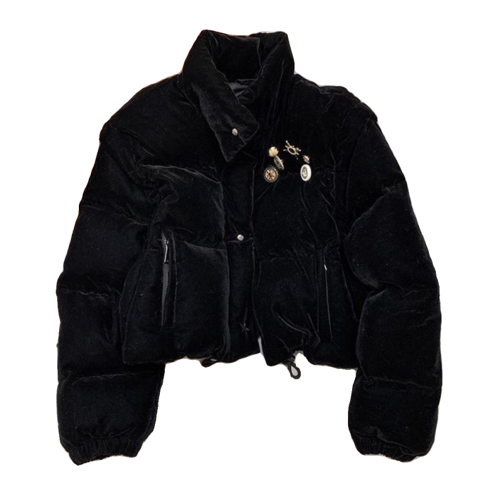 黑色絲絨復古短款羽絨棉服女冬季2022年新款棉襖加厚立領外套棉衣