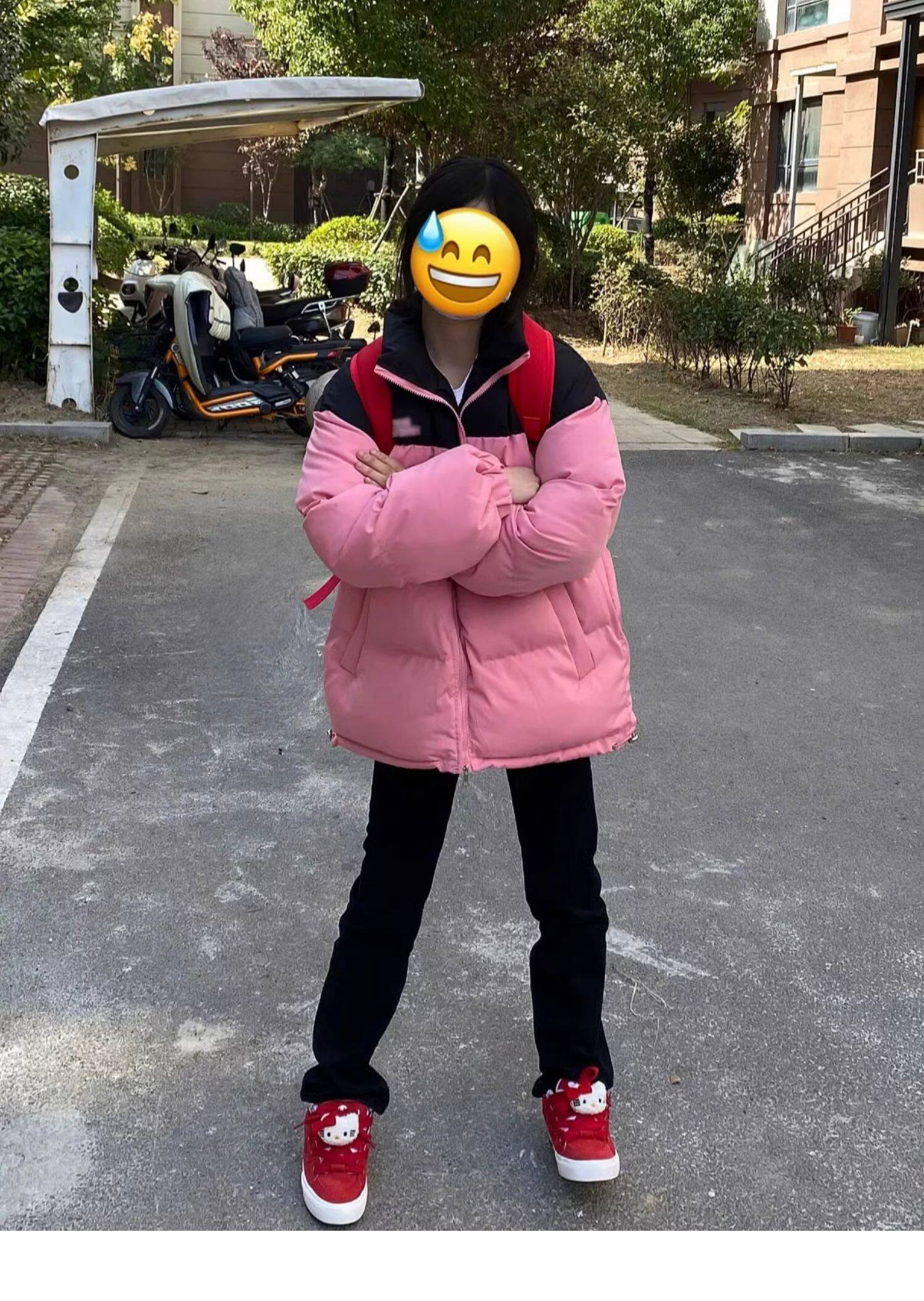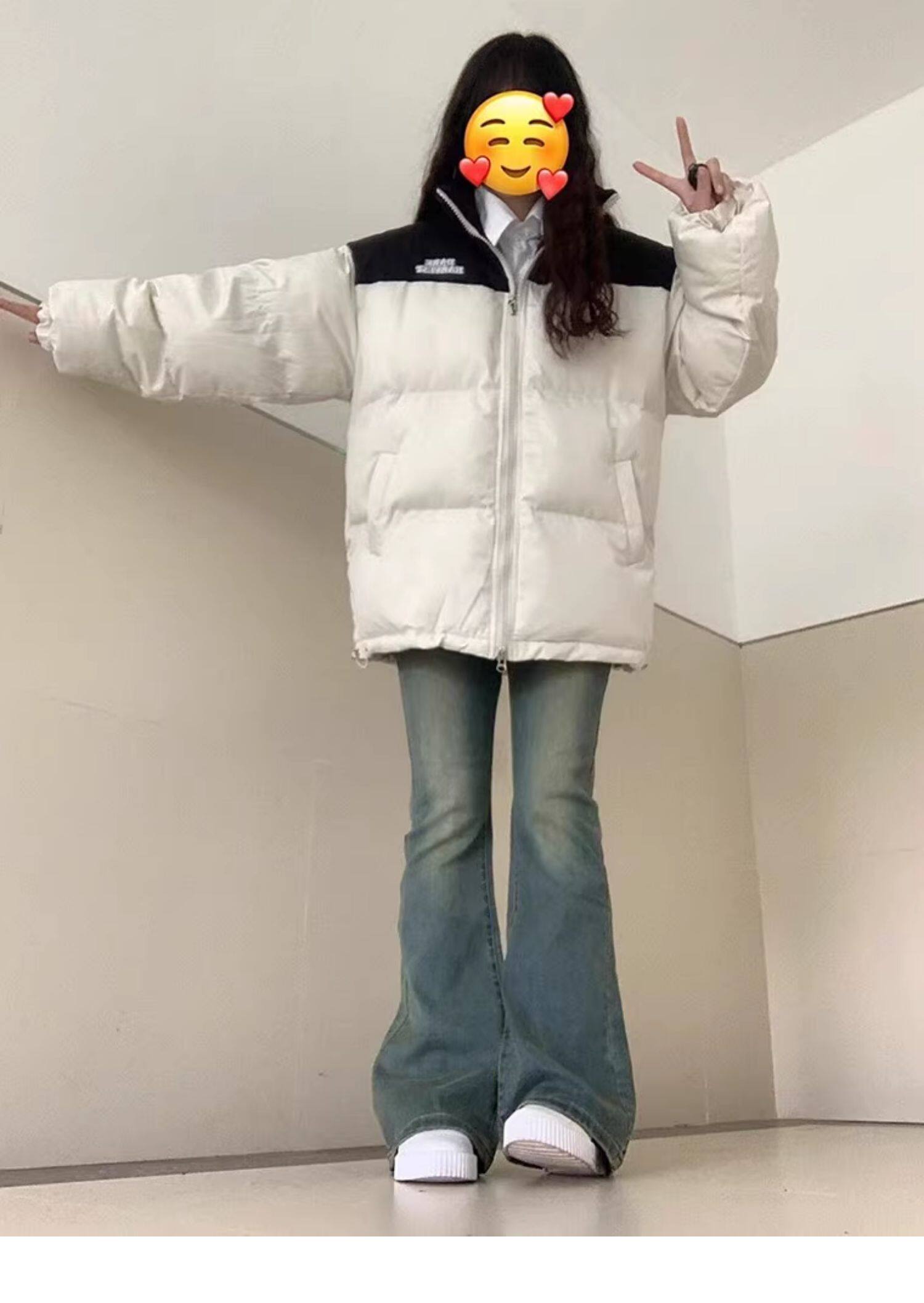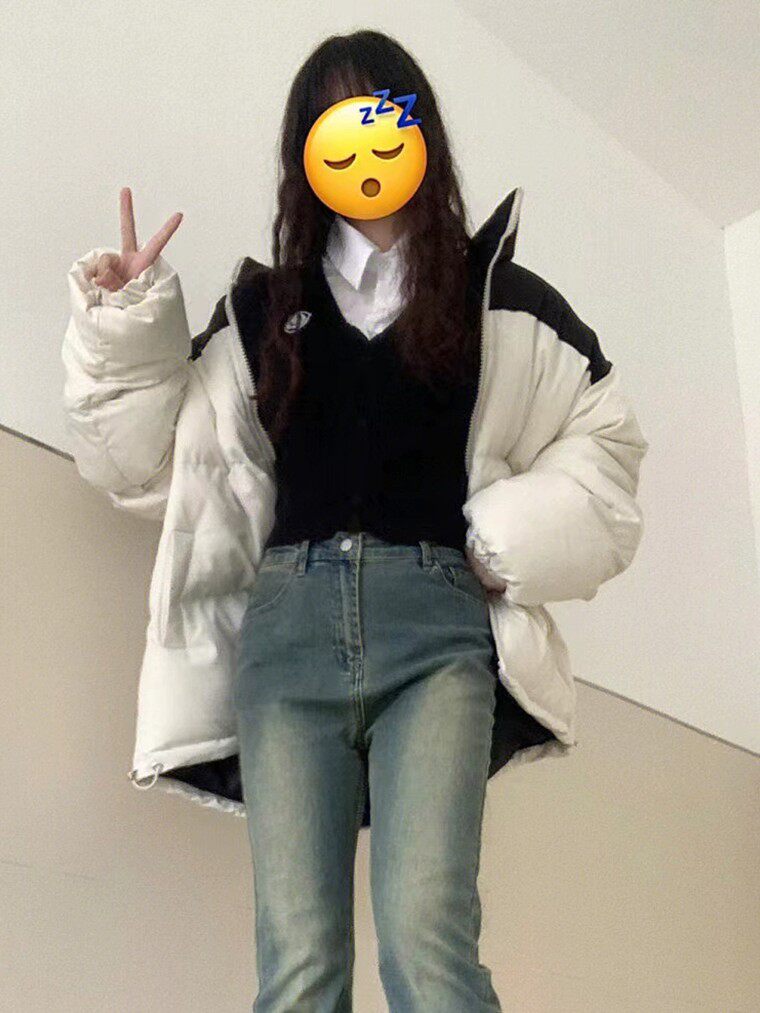 黑拼白羽絨服女冬季棉襖加厚小個子麵包服保暖設計感小衆立領棉服