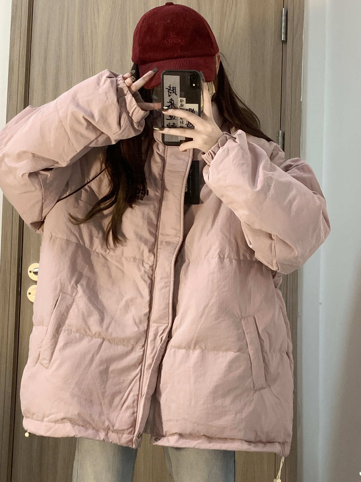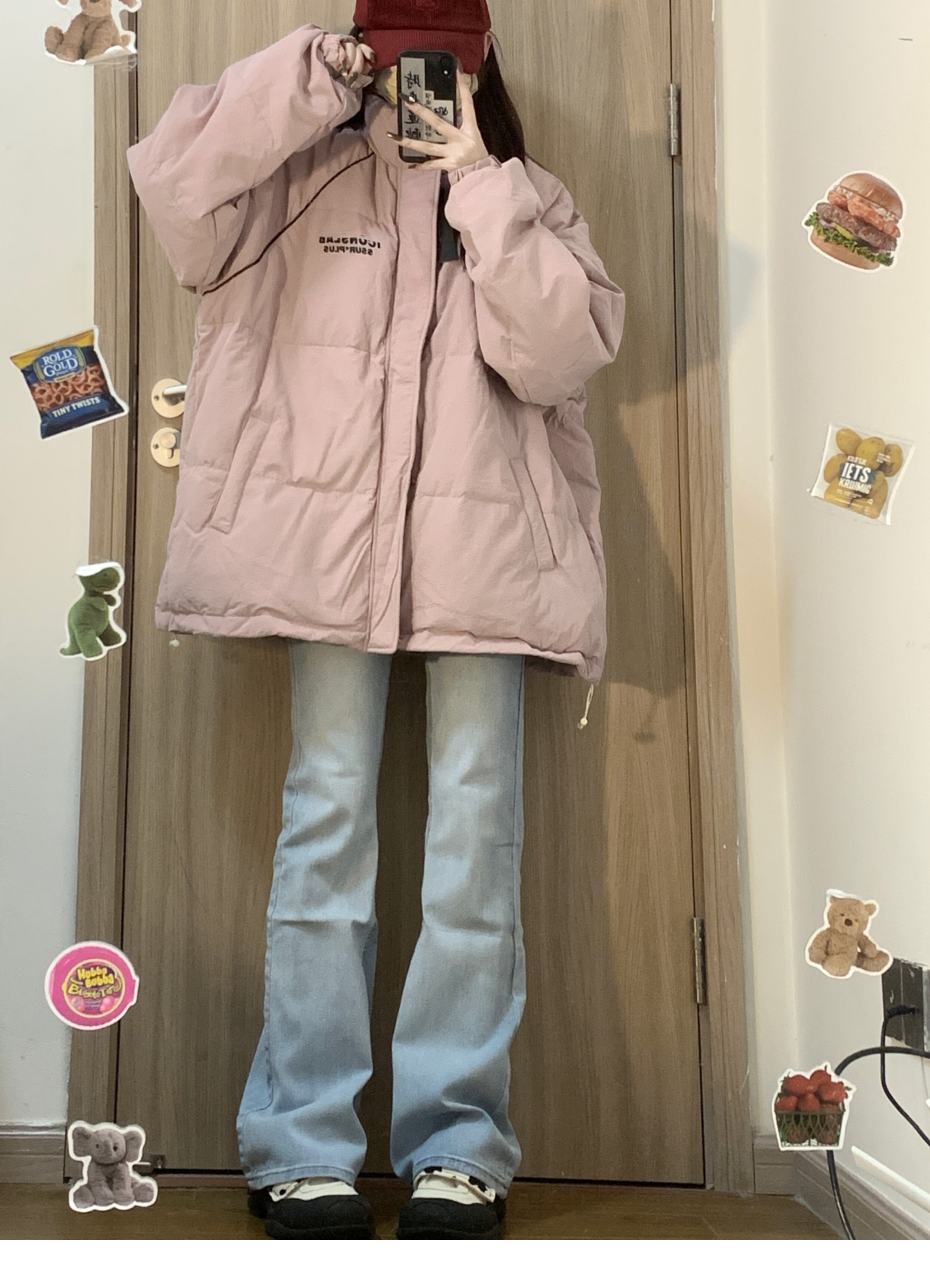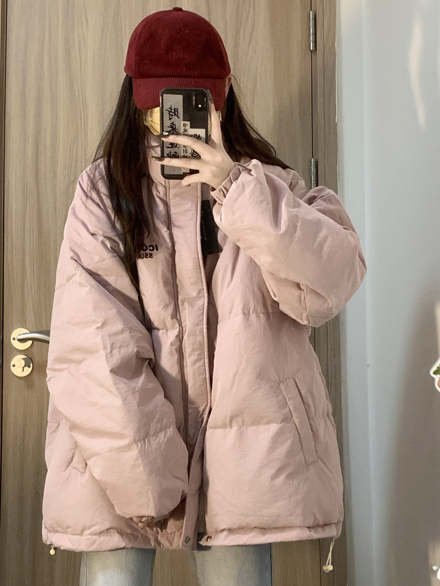 學院風粉色保暖字母印花立領麵包服棉衣外套女冬季ins加厚棉服潮