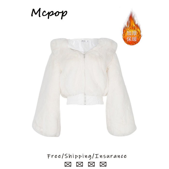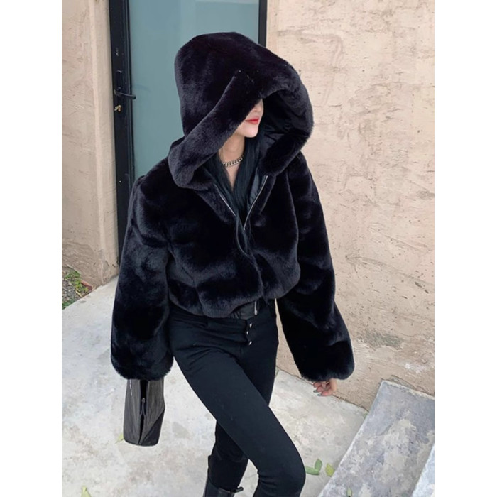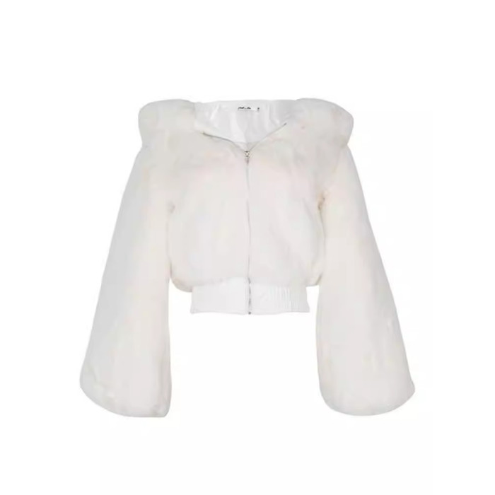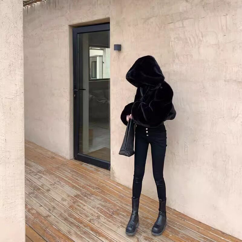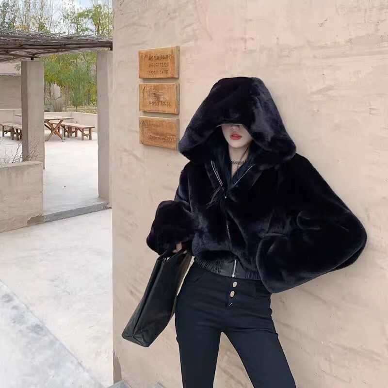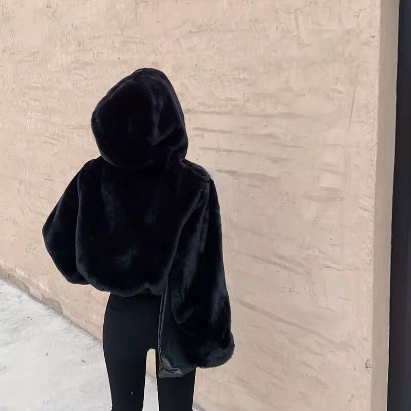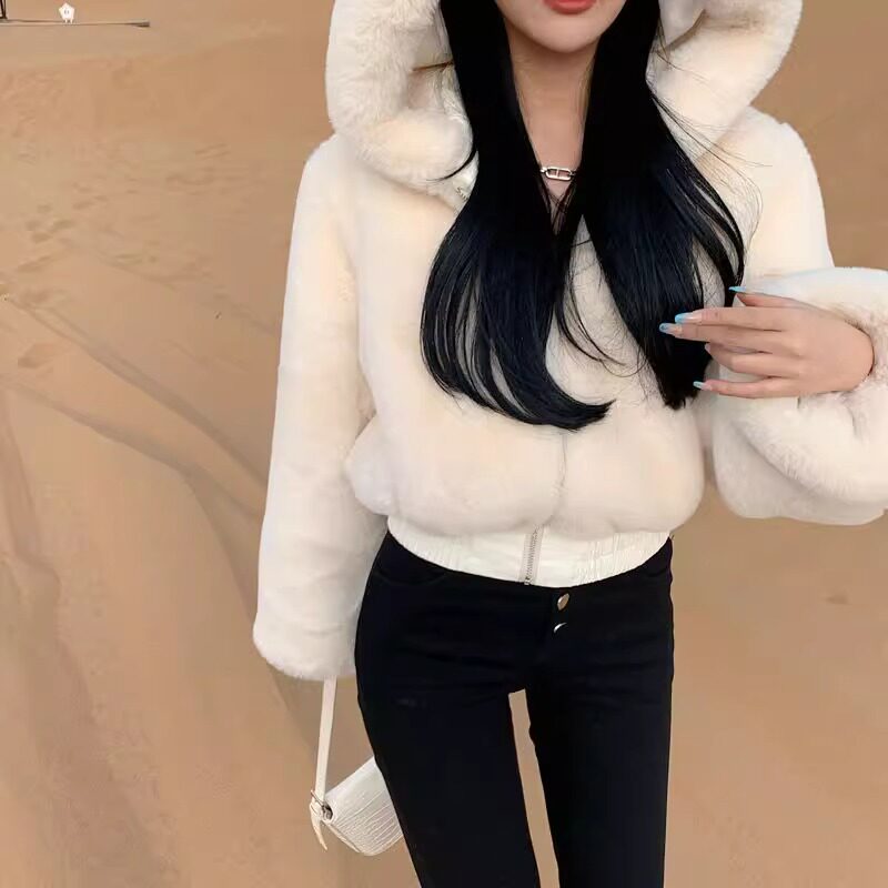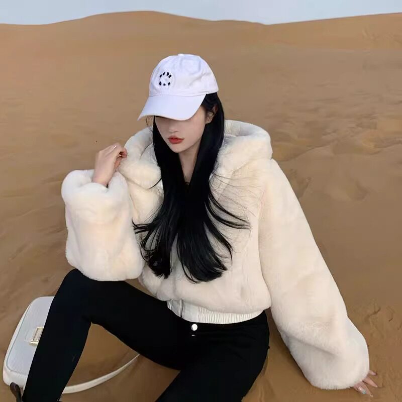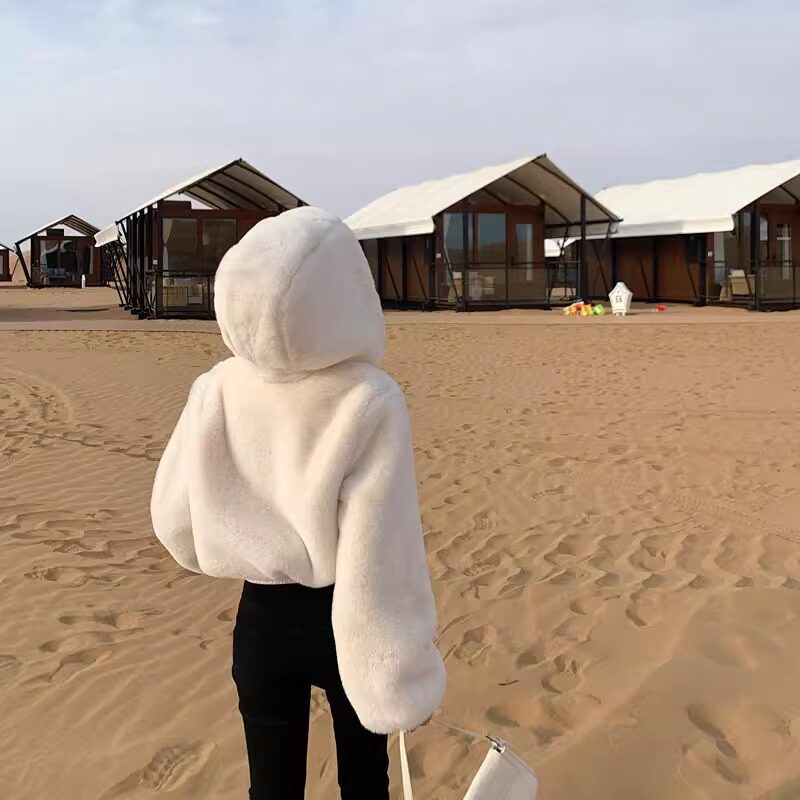 仿兔毛絨短款棉服外套女2025新款秋冬小個子加厚保暖連帽衛衣棉襖