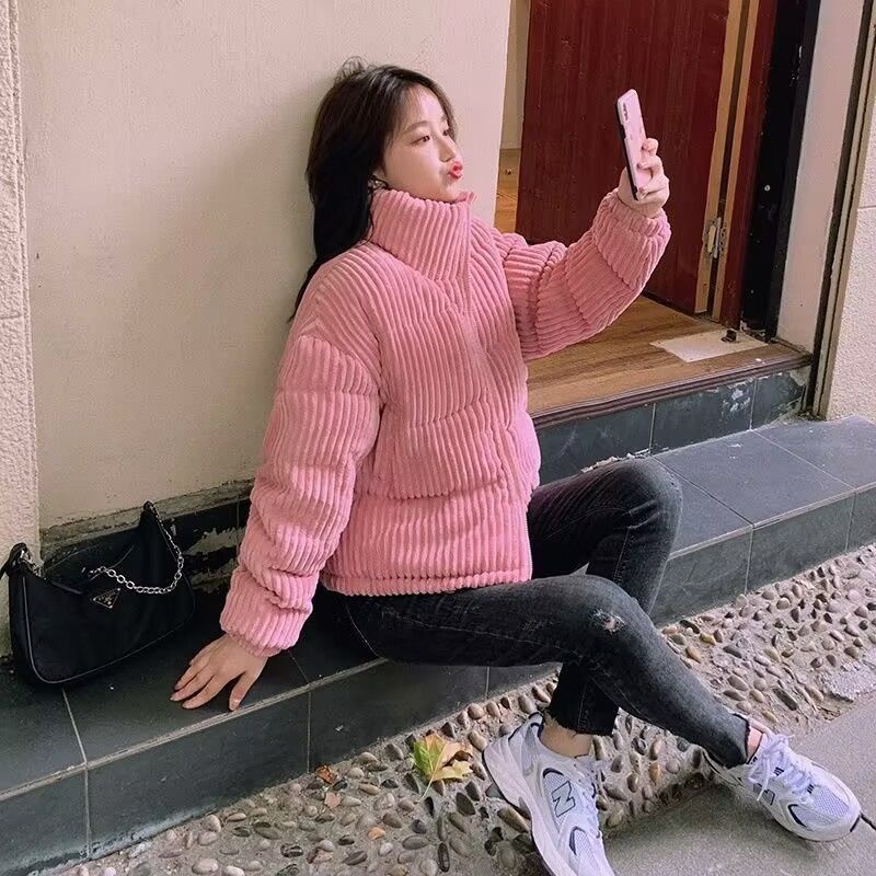 燈芯絨棉服外套女冬小個子2025新年短款韓版寬松加厚麵包服棉衣潮