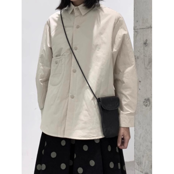 尾單輕便保暖夾棉外穿襯衫棉服女秋冬款休閒減齡純色襯衣外套