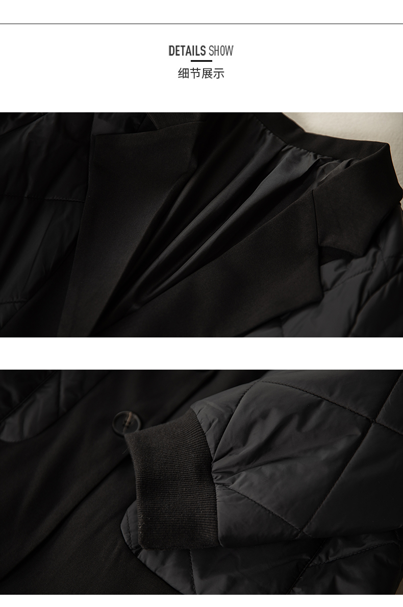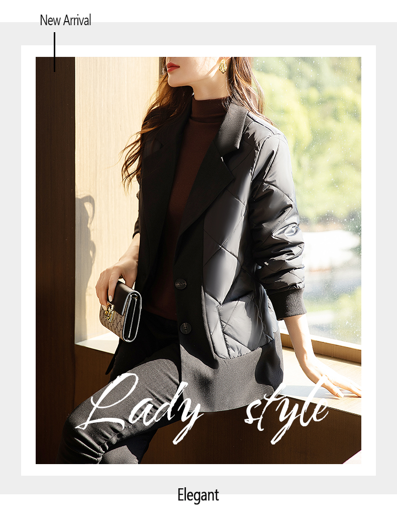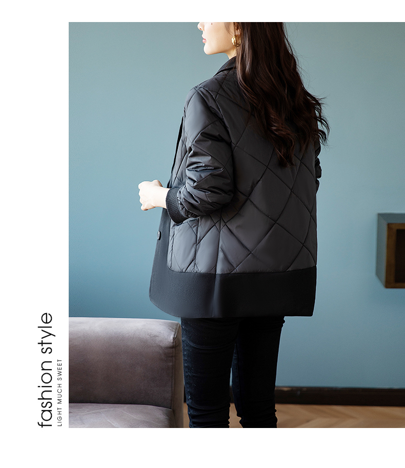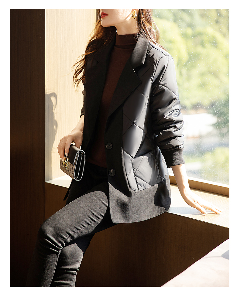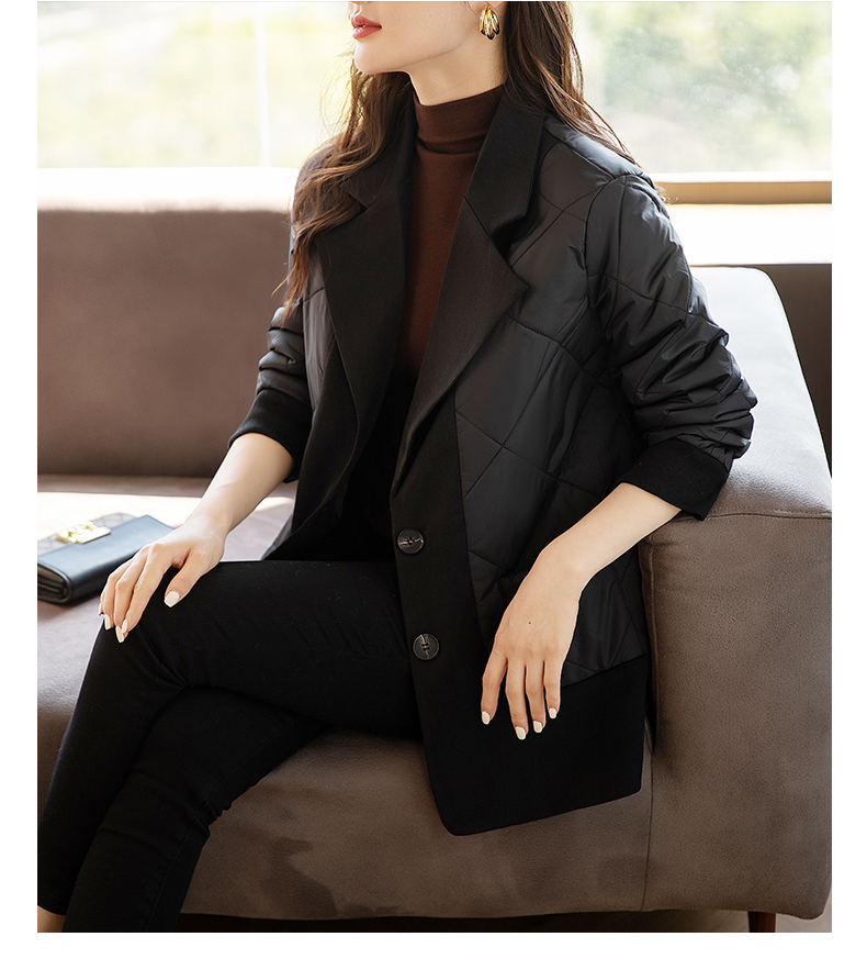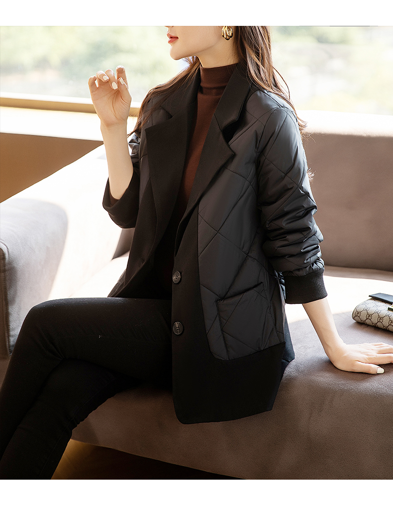 九月陌墨羽絨棉衣女士秋冬季新款輕薄假兩件時尚洋氣西裝棉服外套