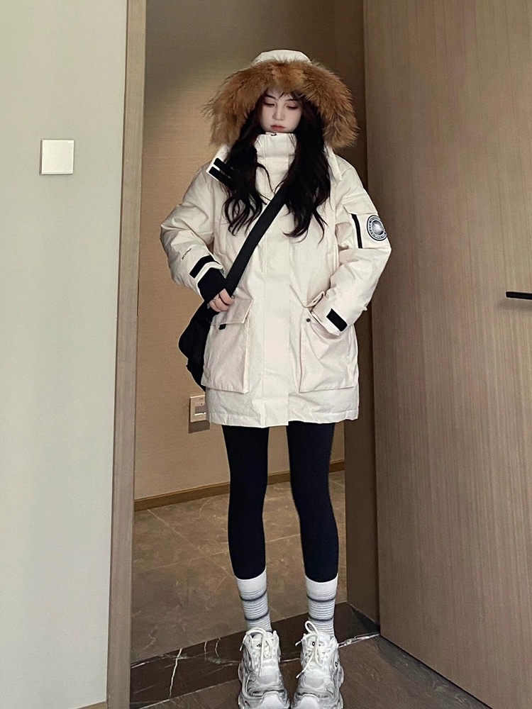 大毛領派克羽絨棉服女2025冬季新款寬松韓系工裝棉衣棉襖加厚外套