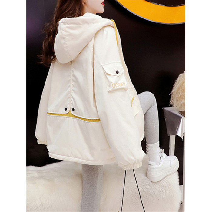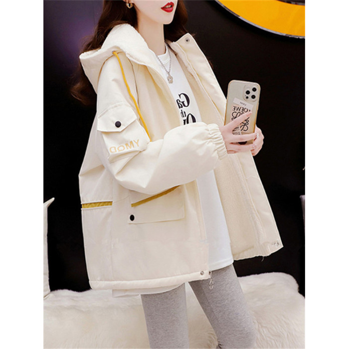 羊羔毛外套女加絨加厚2025秋冬新款韓版情侶裝寬松設計感工裝棉服