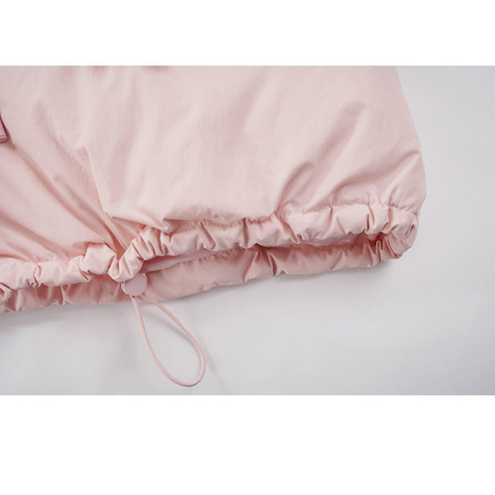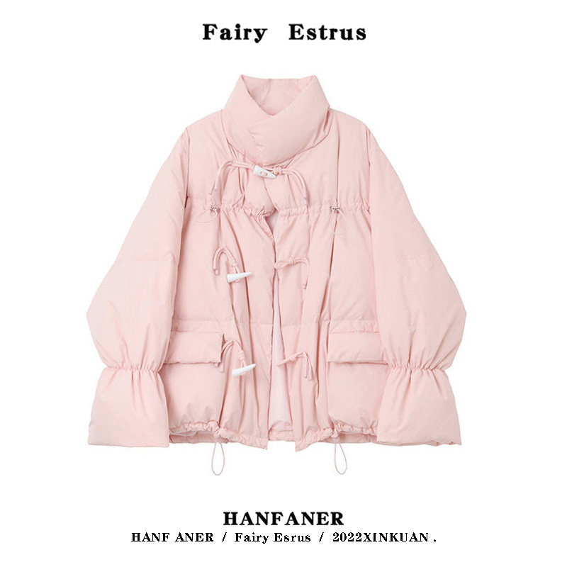 粉色牛角釦棉服女冬季新款ins原宿港風學生加厚短款麵包服外套潮