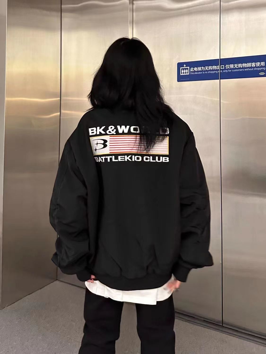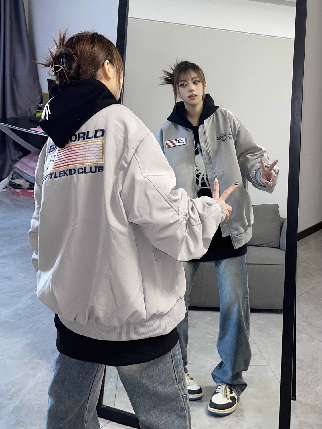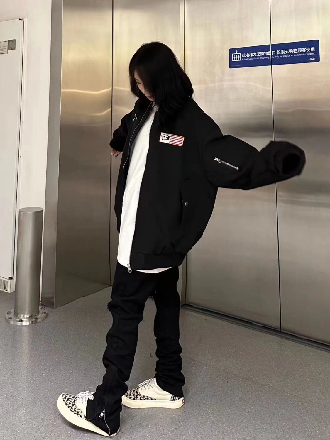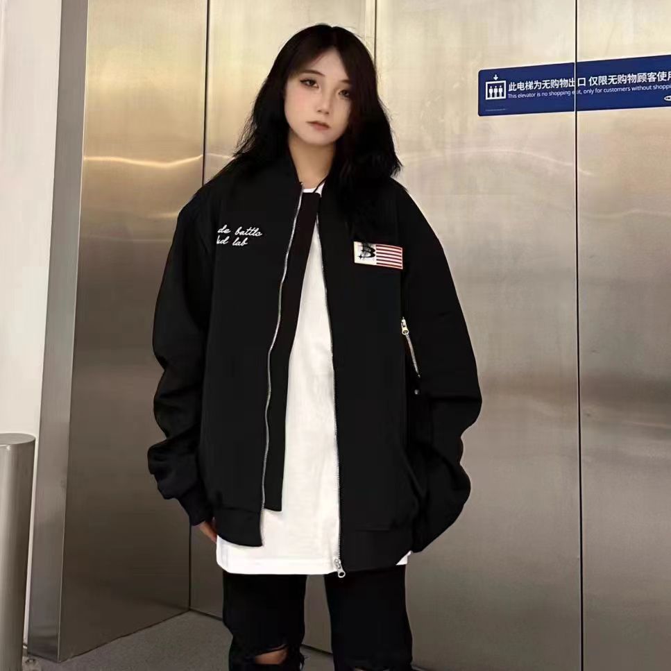美式國潮旗幟刺綉飛行秋冬款夾棉夾克男女寬松棒球服棉衣加厚外套