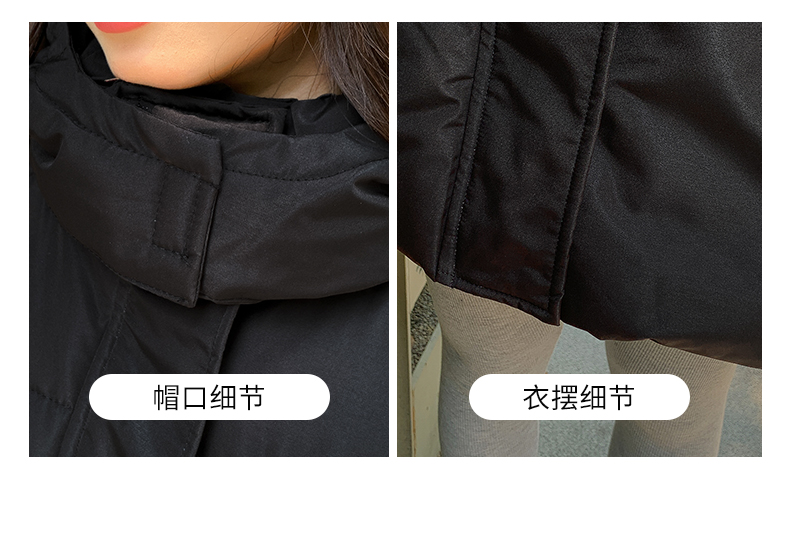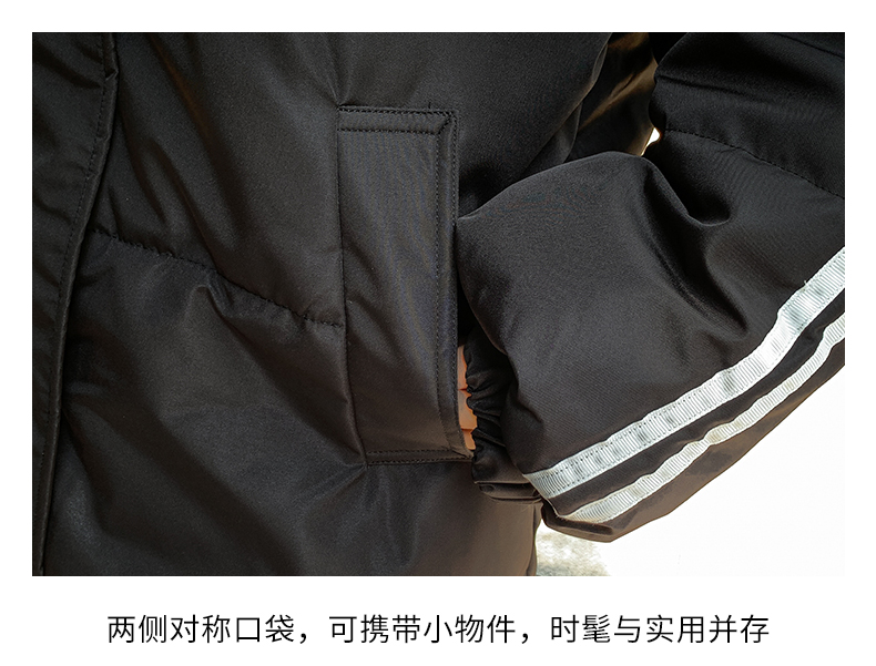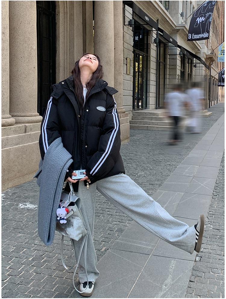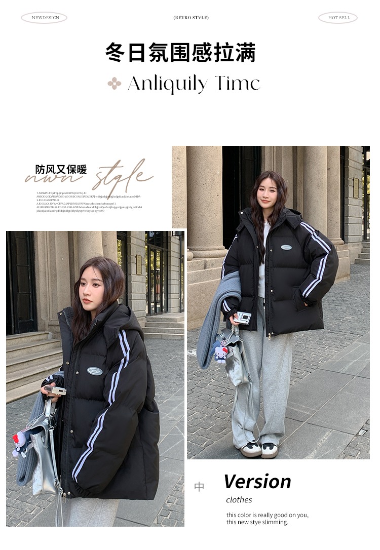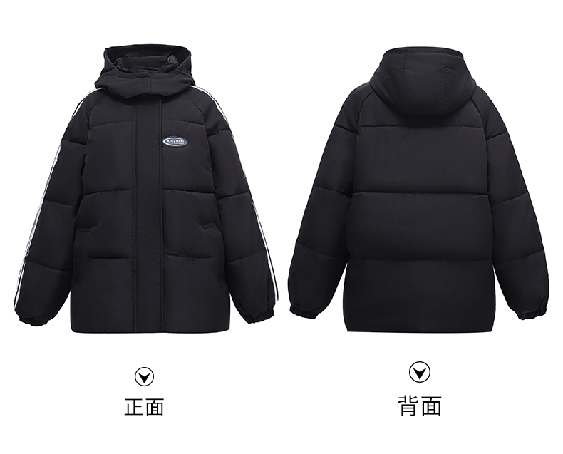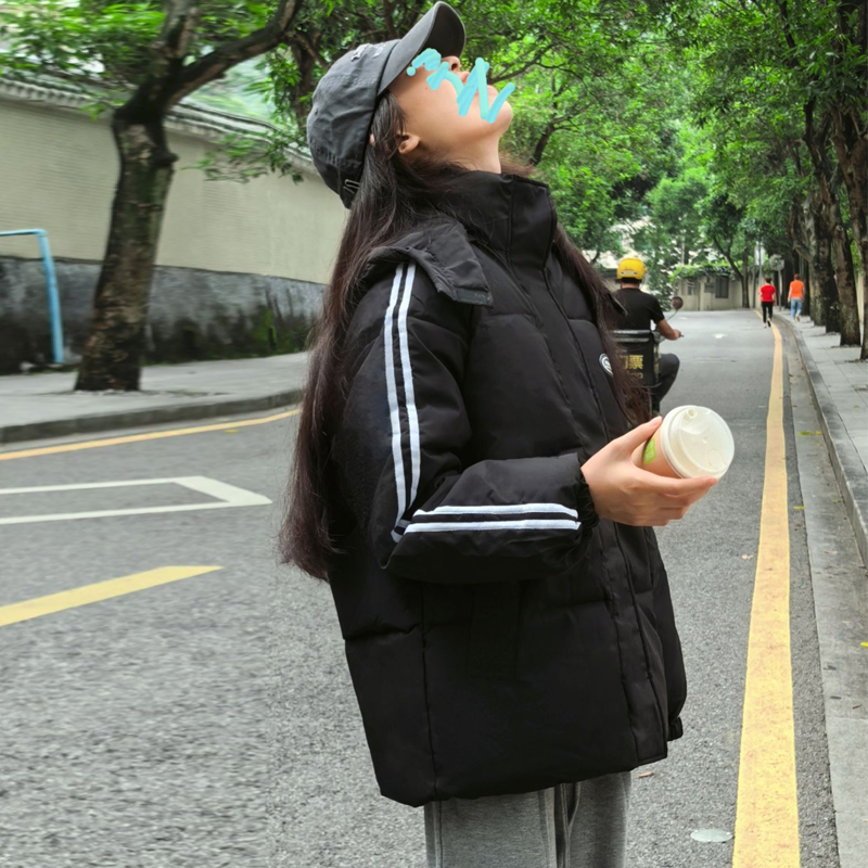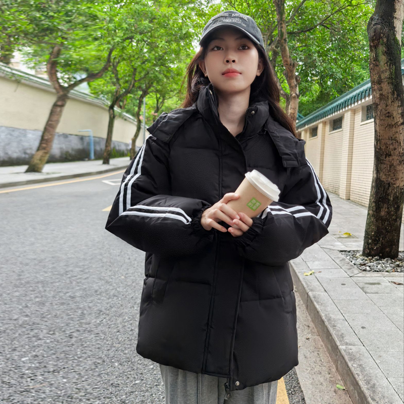 黑色羽絨棉服女冬季2025新款韓系寬松學院風連帽加厚條紋棉襖外套