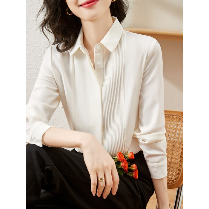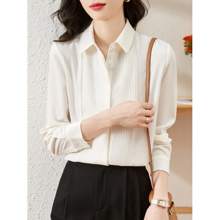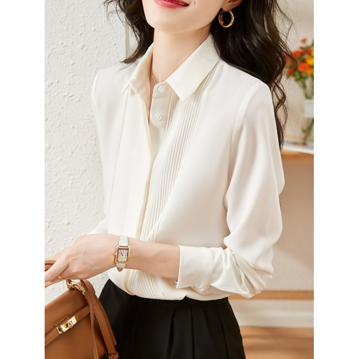 白襯衫女職業裝春秋法式上班工作通勤正裝上衣長袖雪紡白色襯衣女