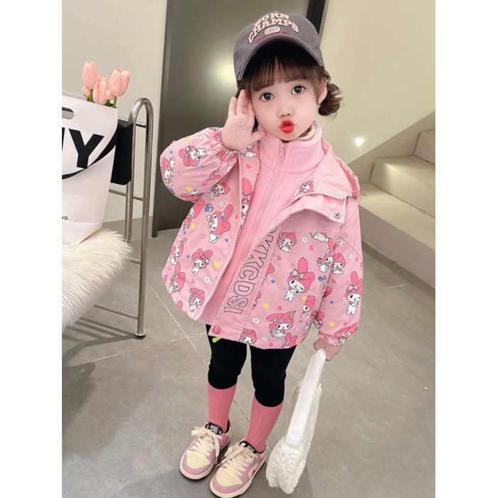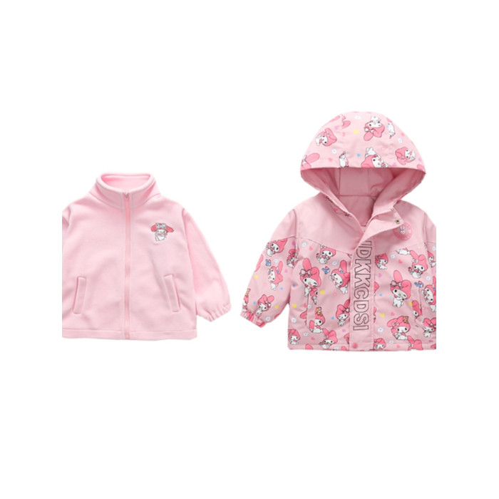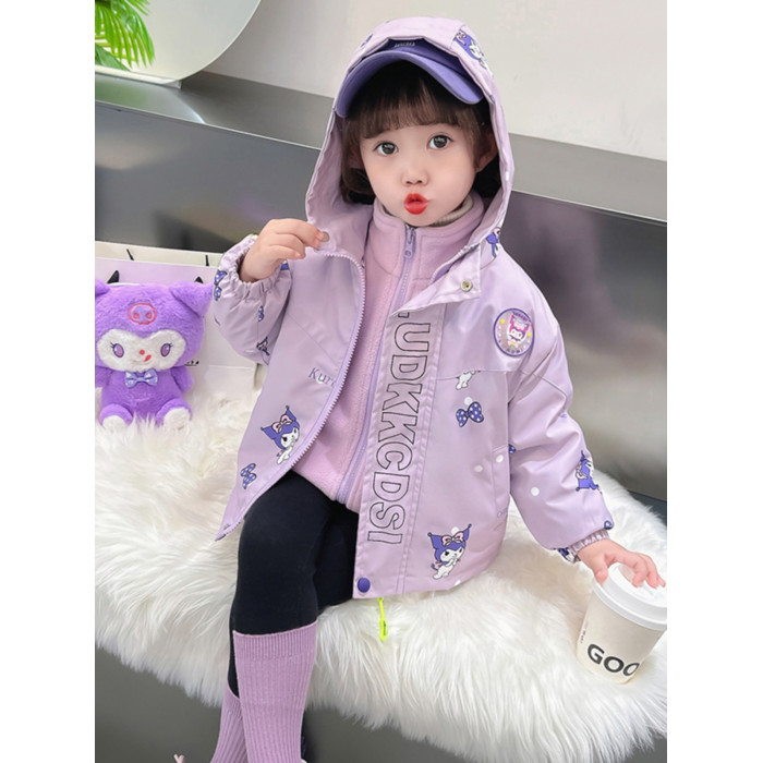 女寶寶夾棉加厚三合一沖鋒衣小女孩秋冬季洋氣卡通庫洛米連帽外套