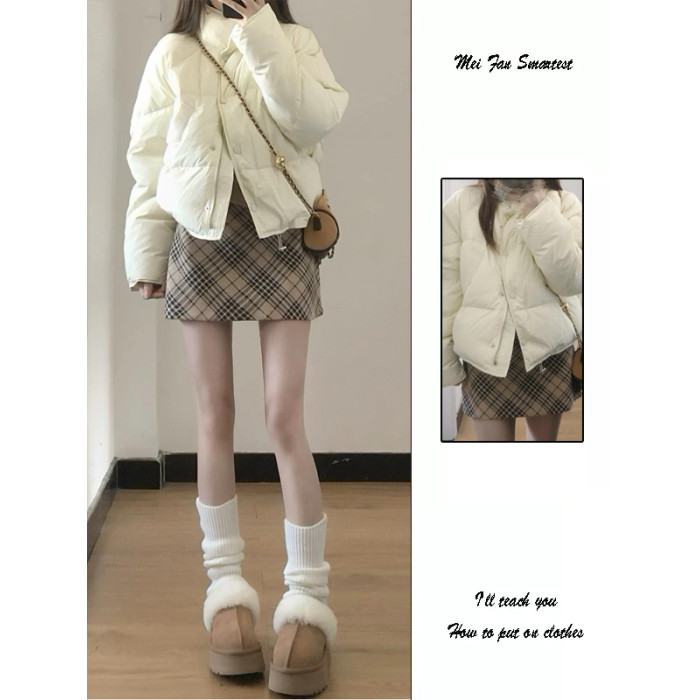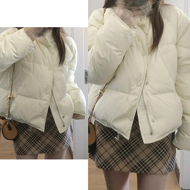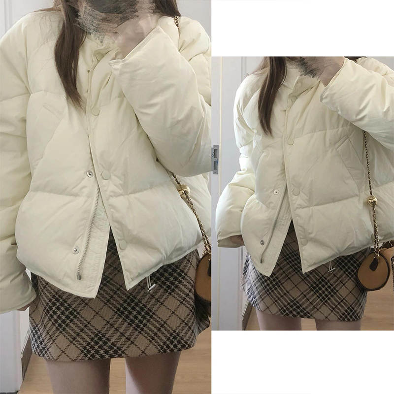 白色立領短款羽絨棉服女冬季款新款加厚保暖麵包服韓版小個子棉衣
