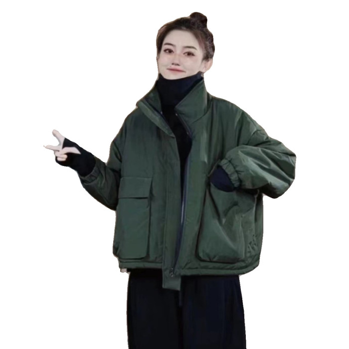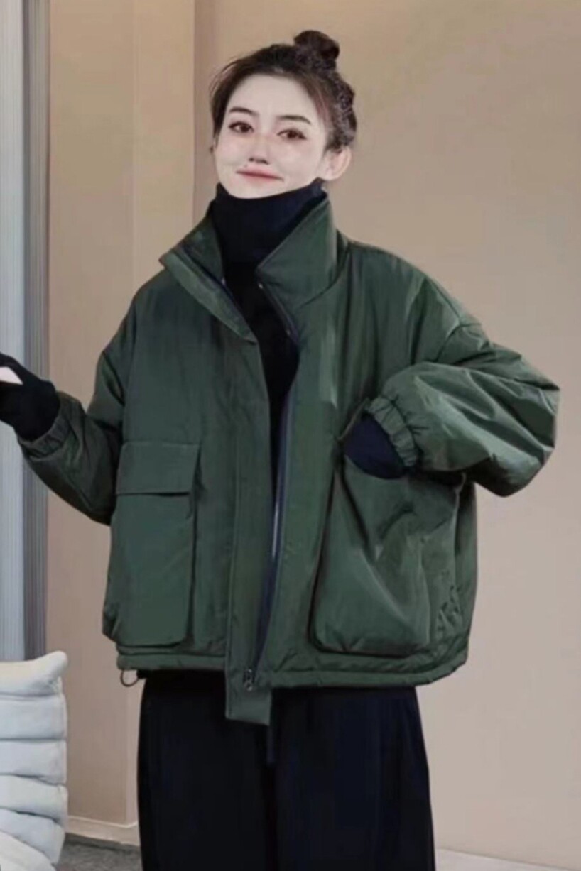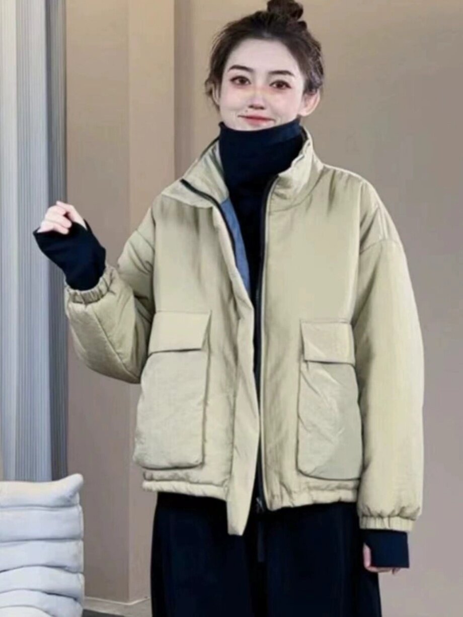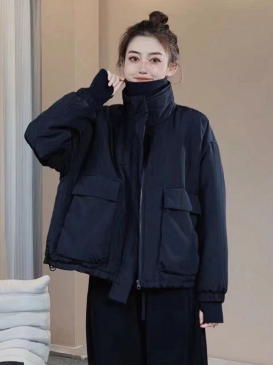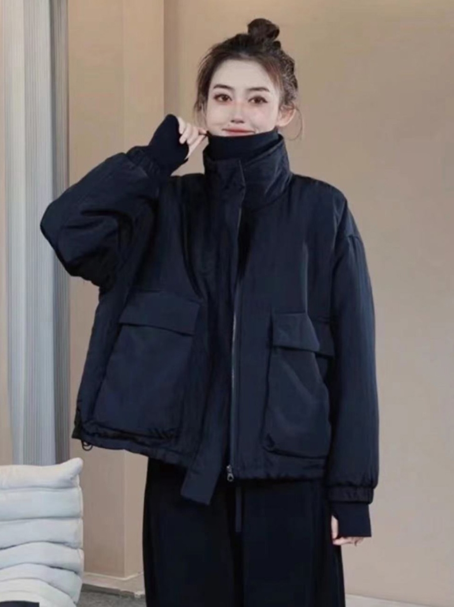 大口袋立領夾棉棉衣外套女2025年秋冬工裝休閒百搭寬松拉鍊棉服
