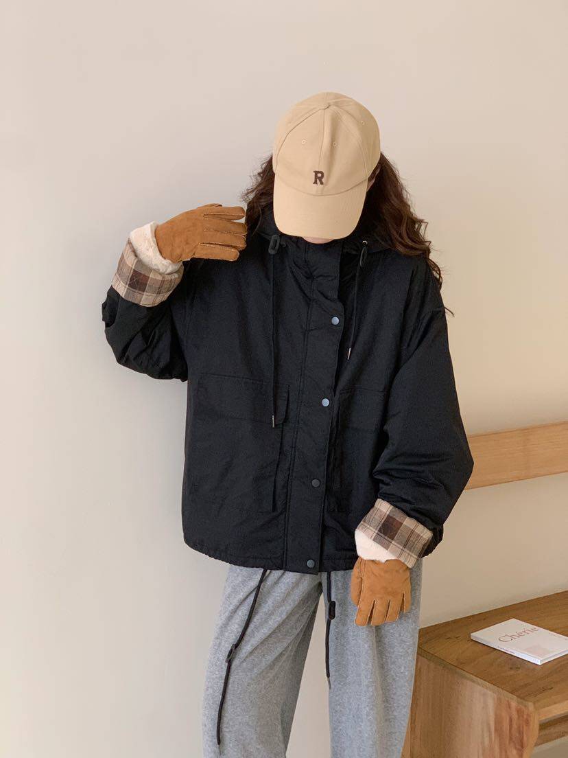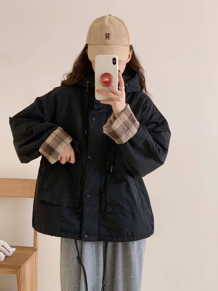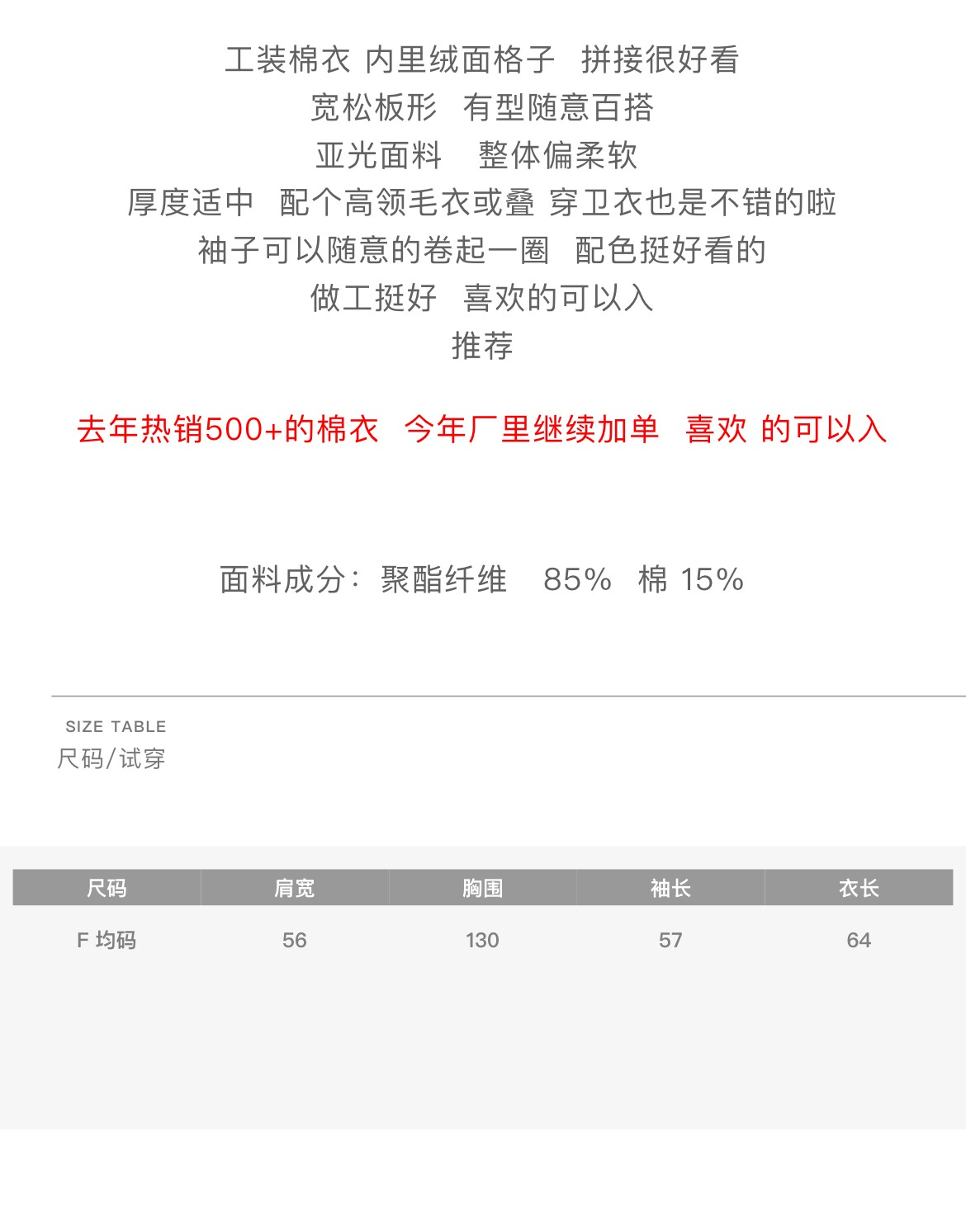 高級感超好看工裝格子棉服外套今年流行的寬松棉襖棉衣夾棉上衣潮