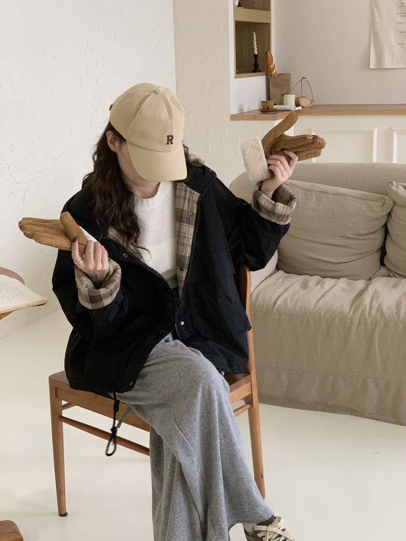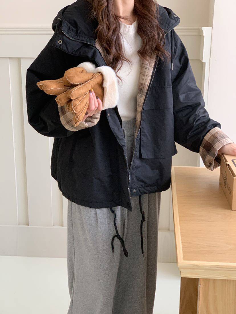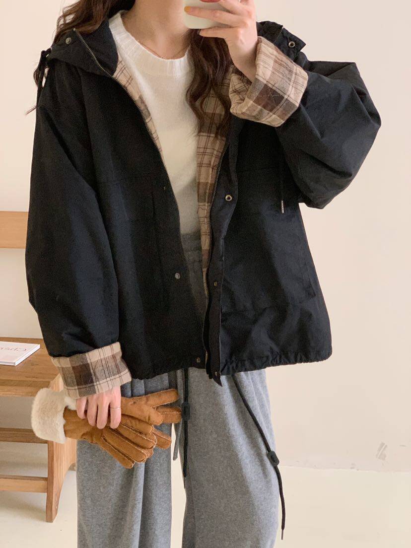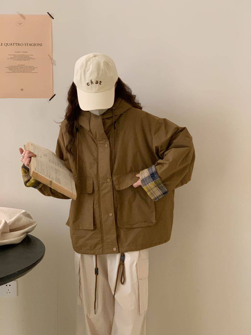 高級感超好看工裝格子棉服外套今年流行的寬松棉襖棉衣夾棉上衣潮