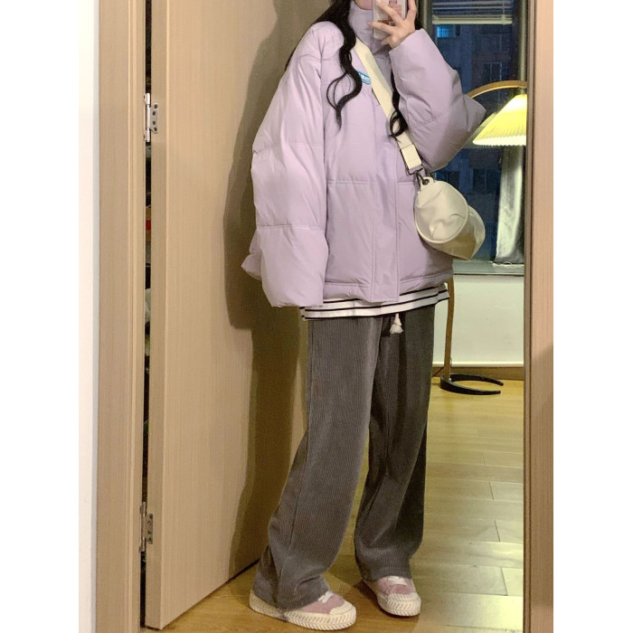 紫色羽絨棉服外套女冬季2025年新款寬松高級感麵包服加厚保暖棉衣