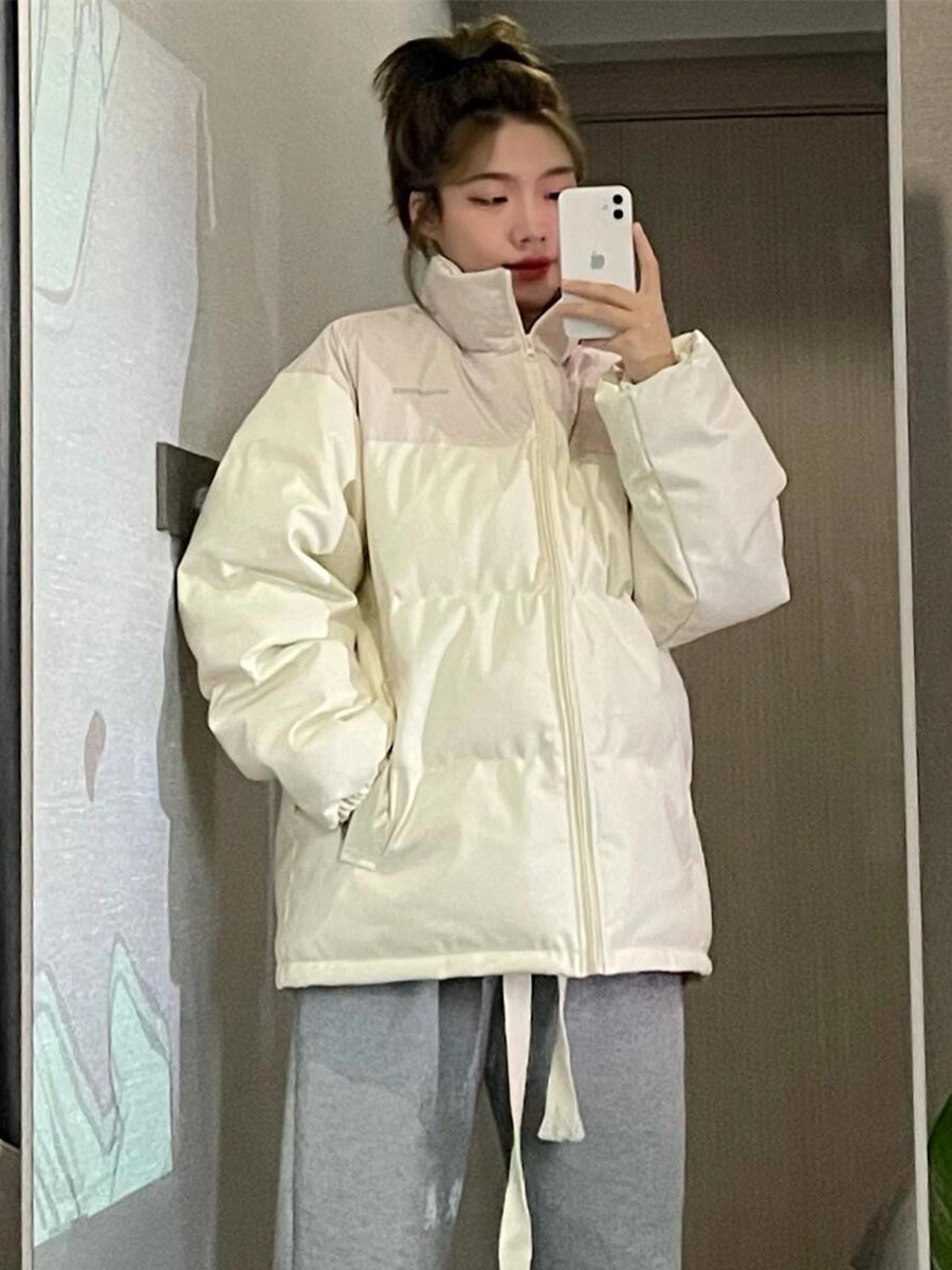 pu皮羽絨棉服女冬季2025新款設計感寬松立領麵包服情侶棉衣厚外套