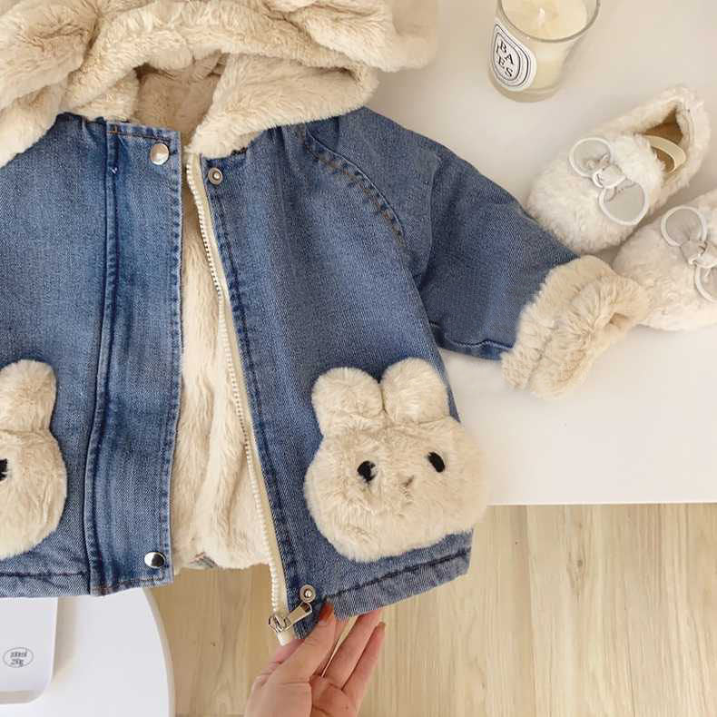 女小童加絨牛仔外套2023新款冬裝秋冬款加厚棉服寶寶冬季保暖棉衣