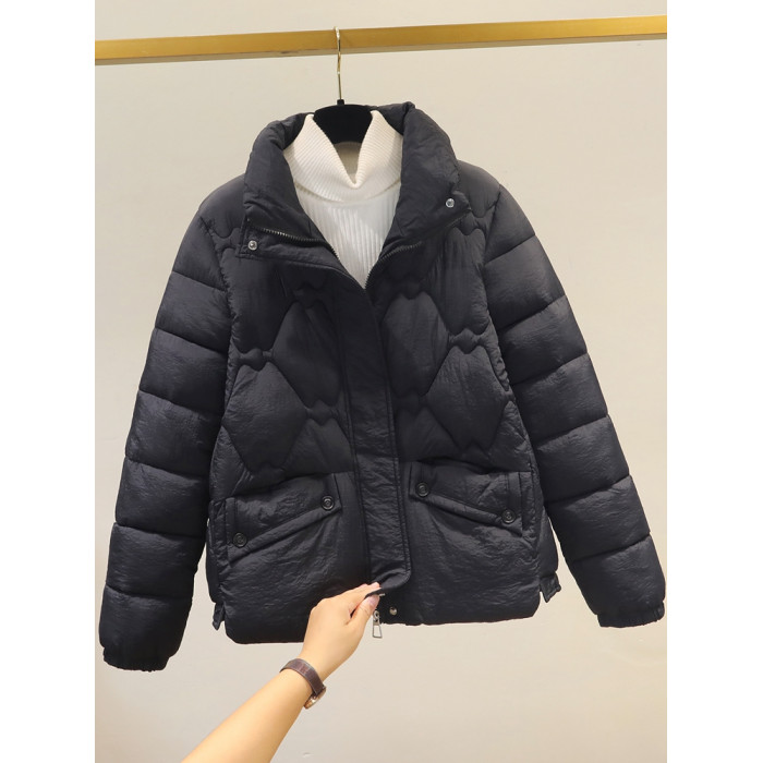 2025冬裝新款棉襖外套女短款洋氣小個子羽絨棉服立領寬松保暖棉衣