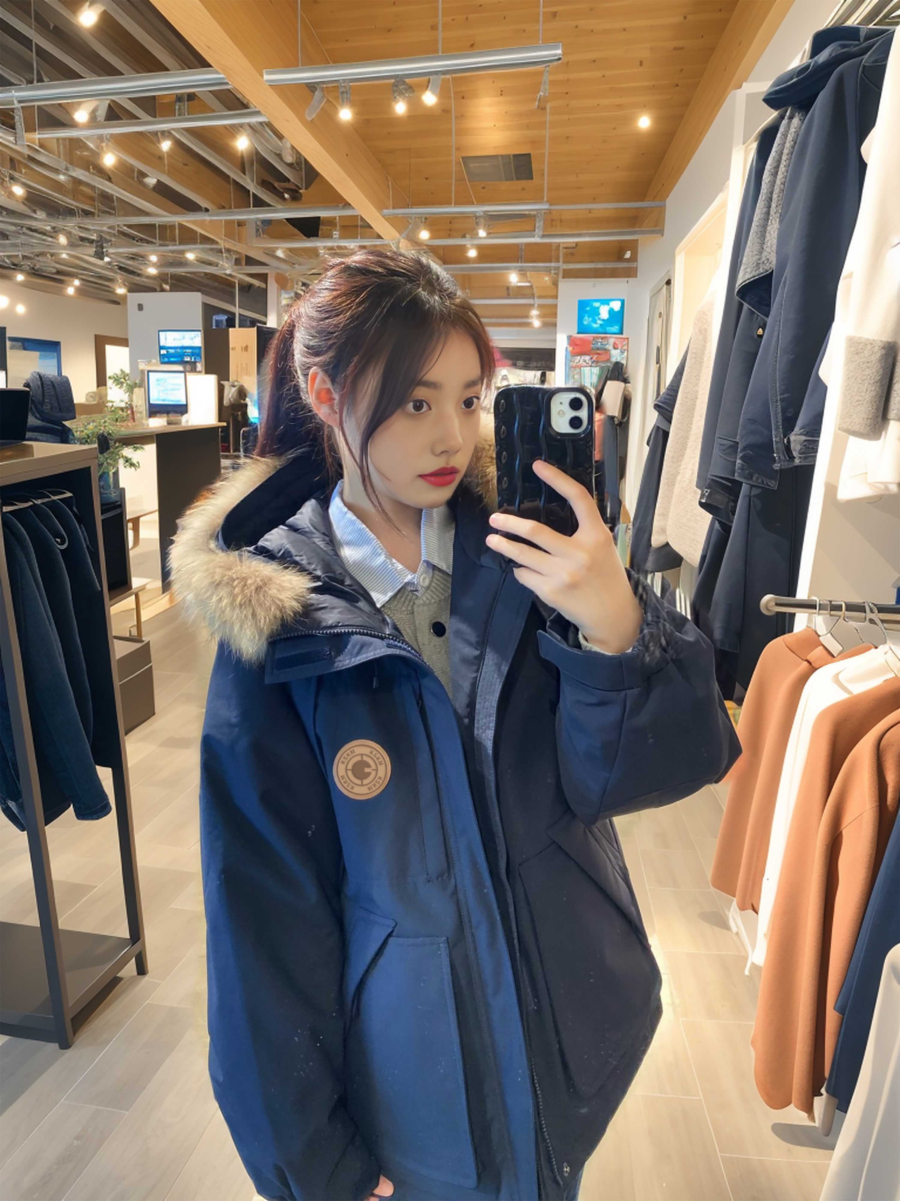 KSKM藏藍色派克服女2025秋冬季加厚高級感中長款工裝羽絨棉服外套