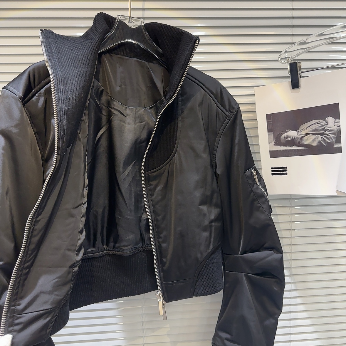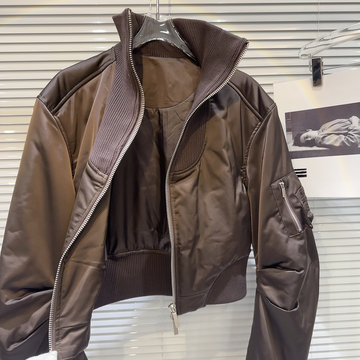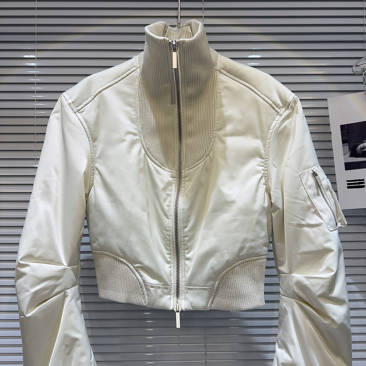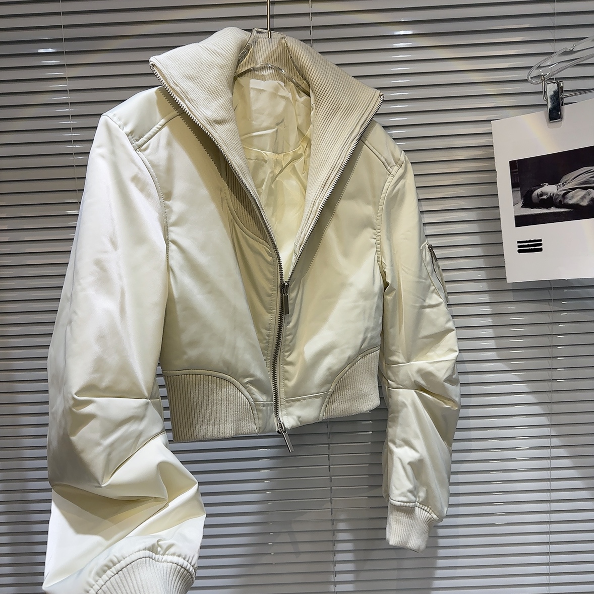 網紅同款2025冬季新款炸街辣妹螺紋領口保暖純色棉服夾克棉衣外套