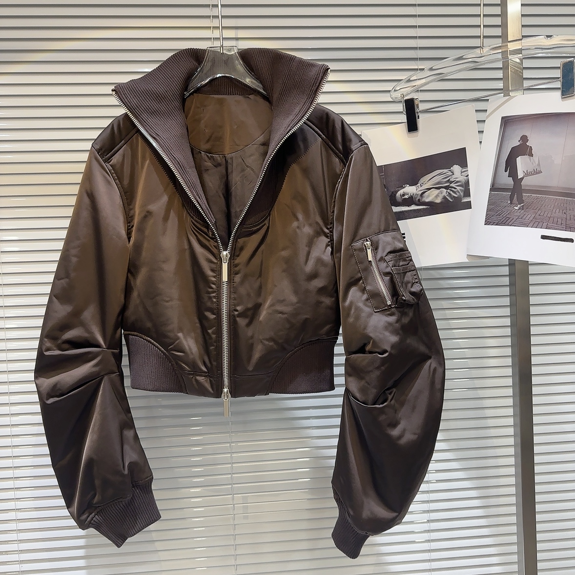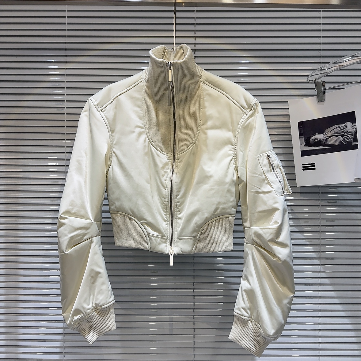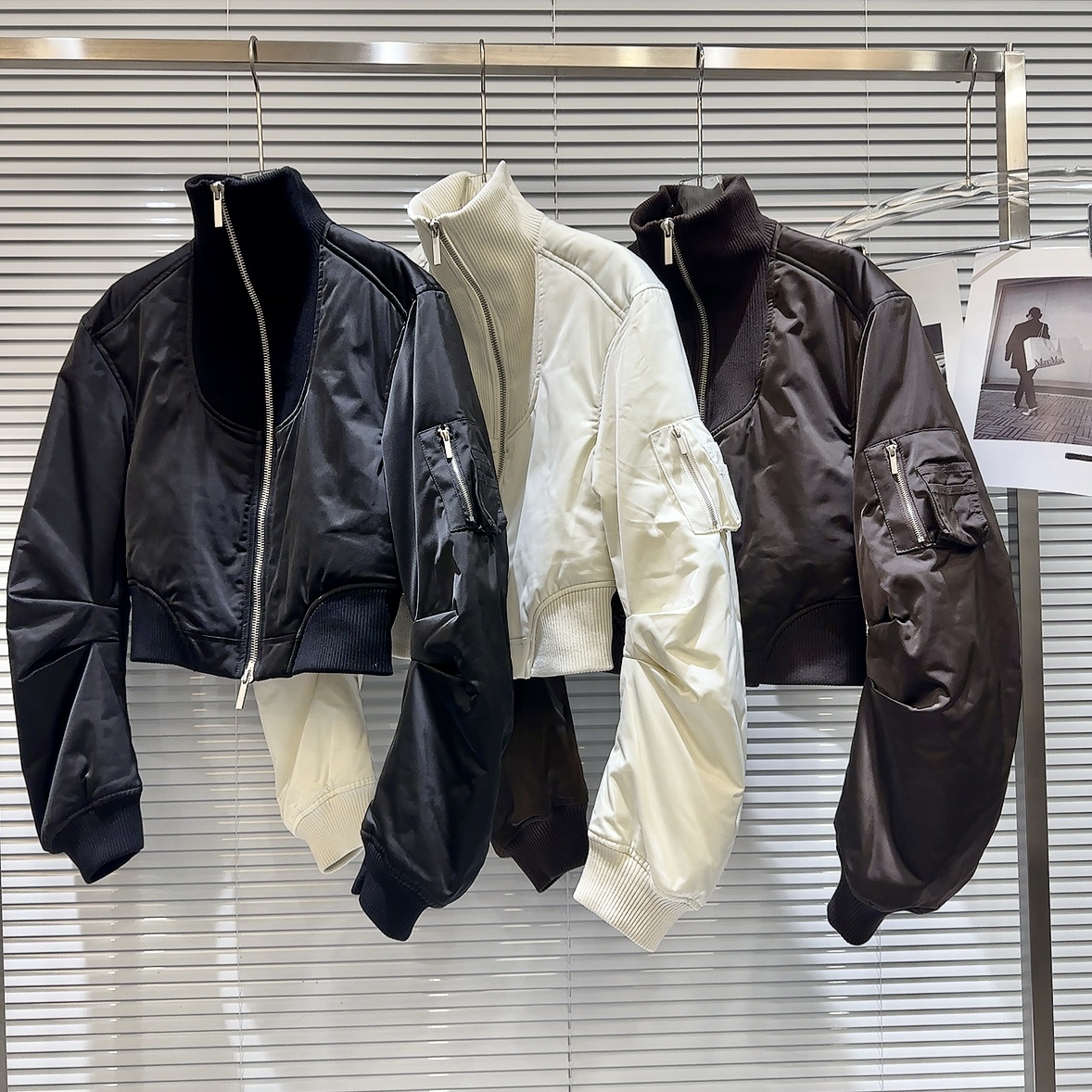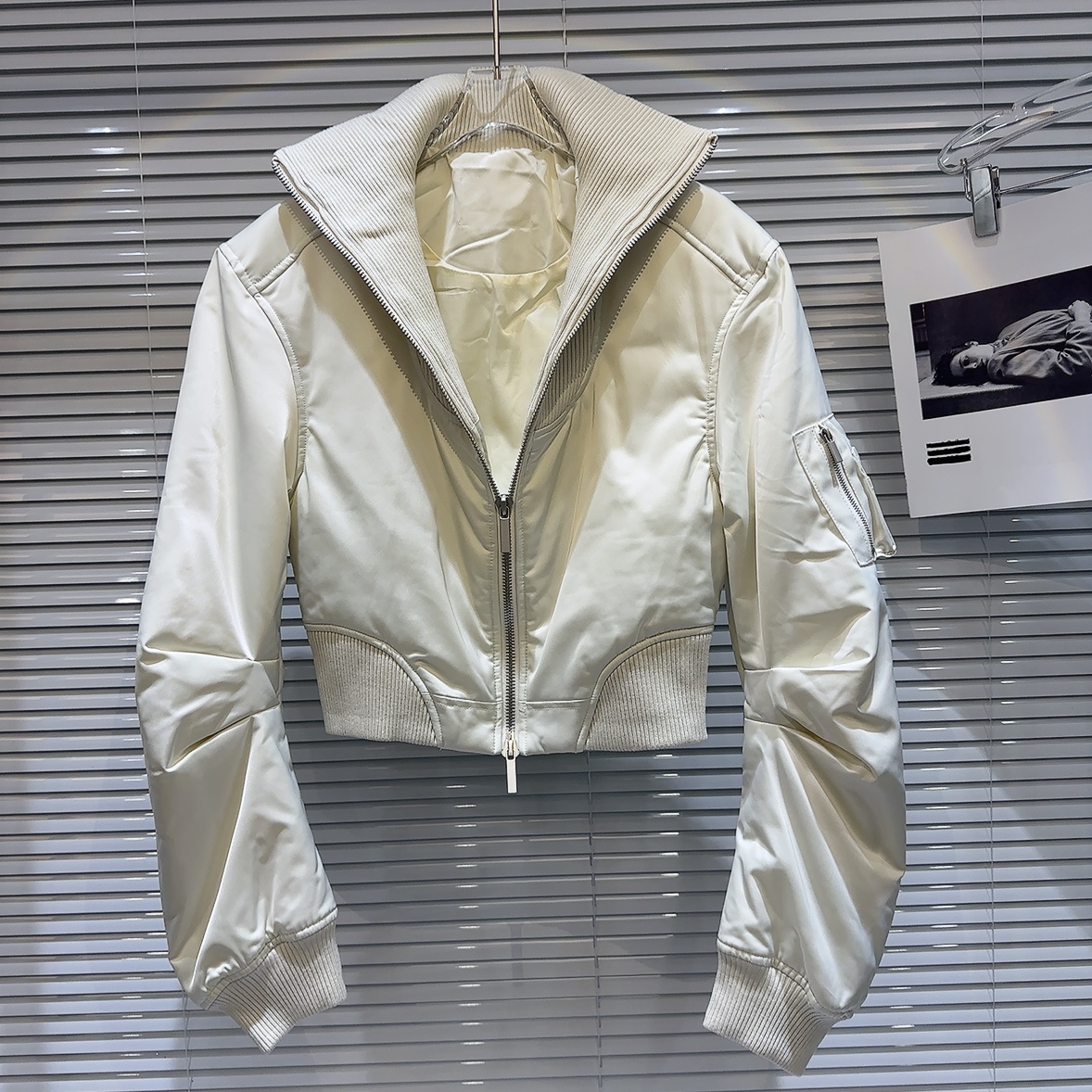 網紅同款2025冬季新款炸街辣妹螺紋領口保暖純色棉服夾克棉衣外套