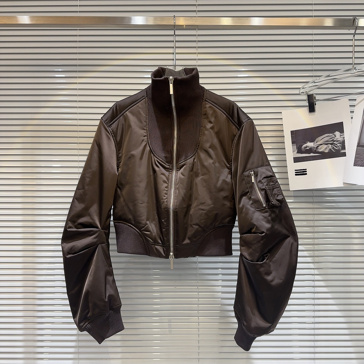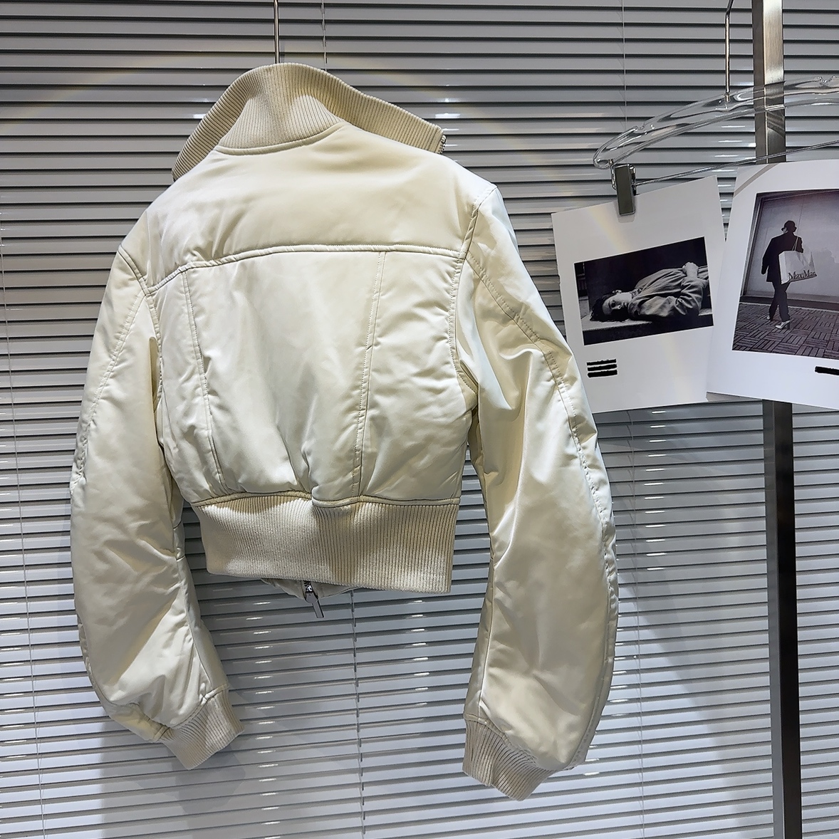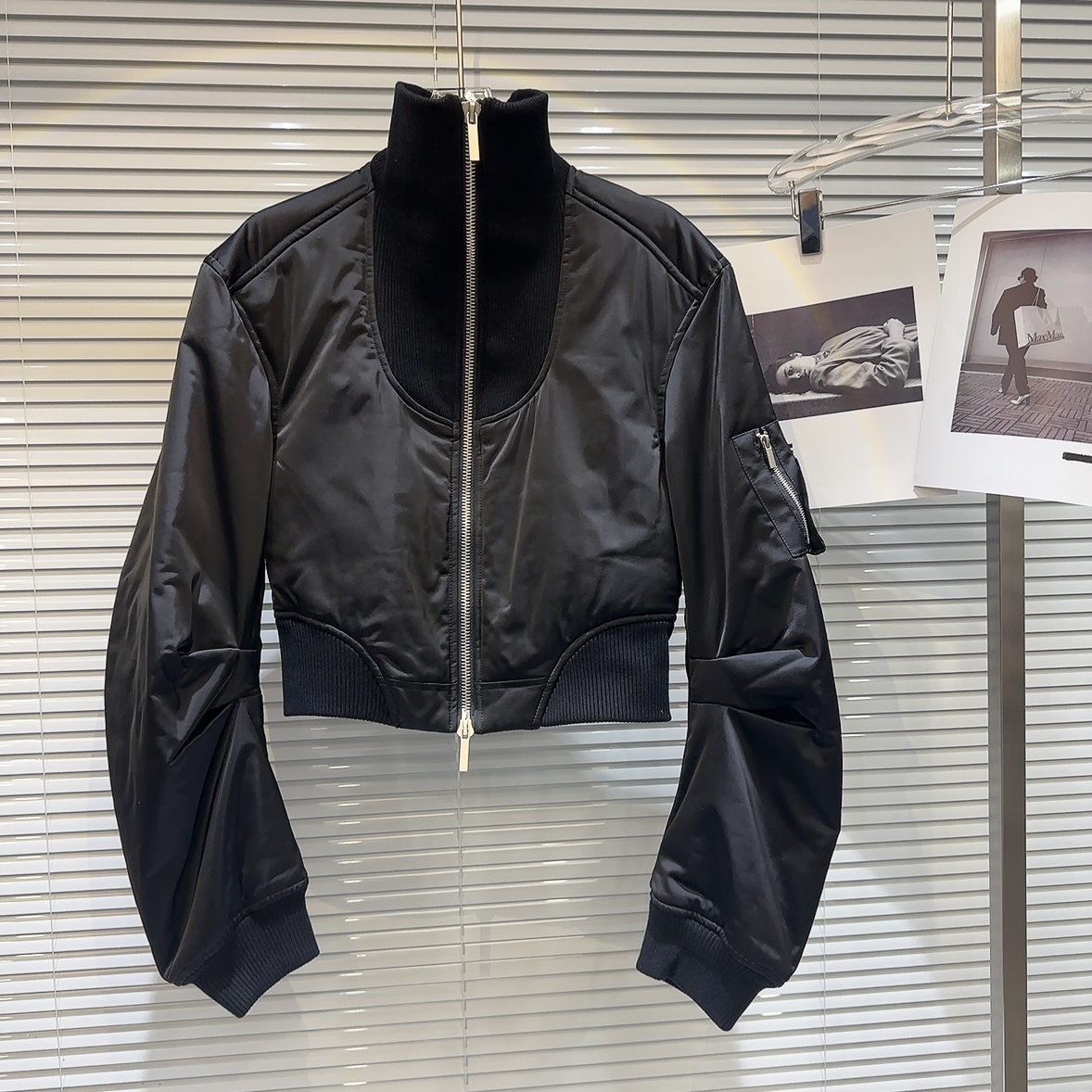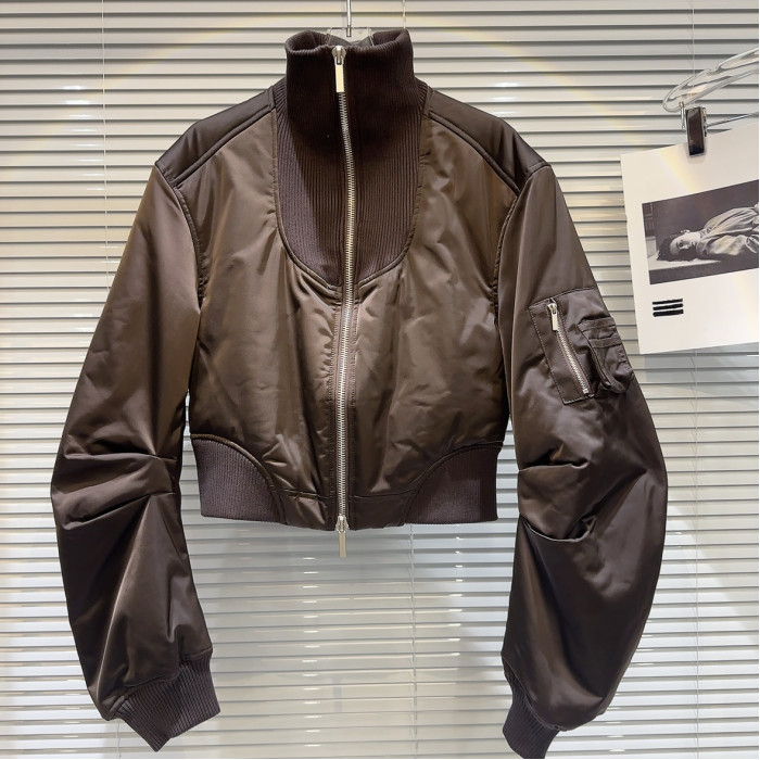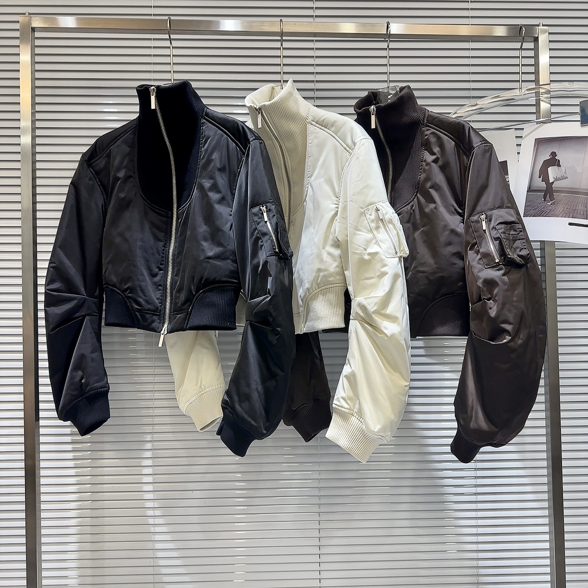 網紅同款2025冬季新款炸街辣妹螺紋領口保暖純色棉服夾克棉衣外套