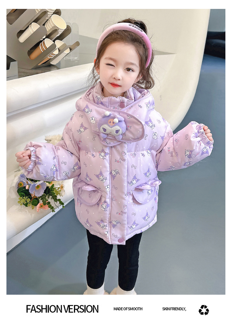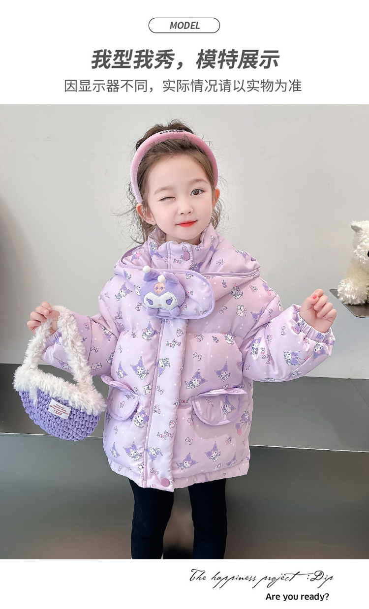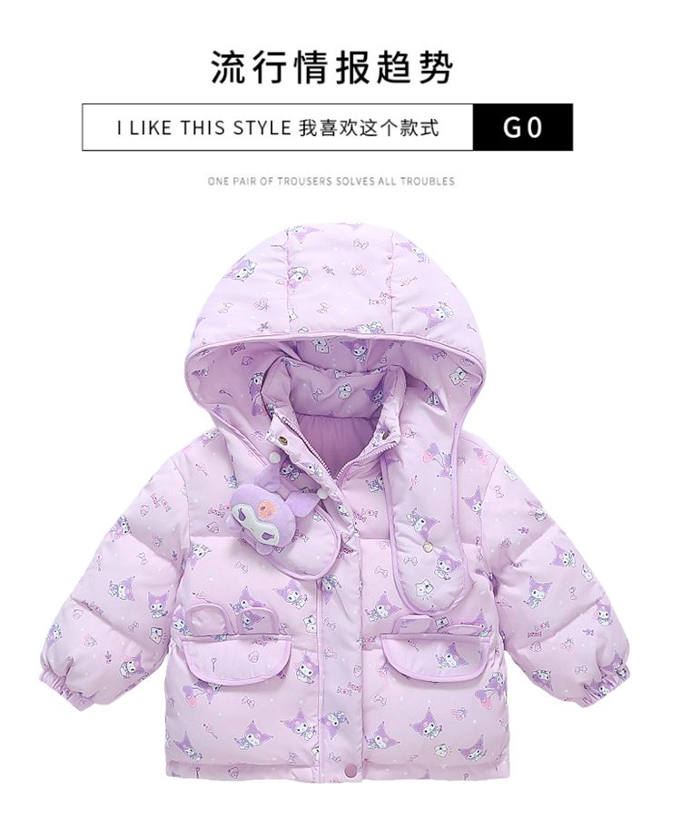 庫洛米女小童羽絨服冬季2023新款洋氣加厚保暖女寶寶90白鴨絨冬裝