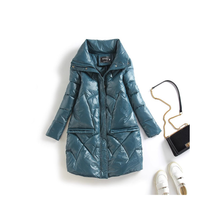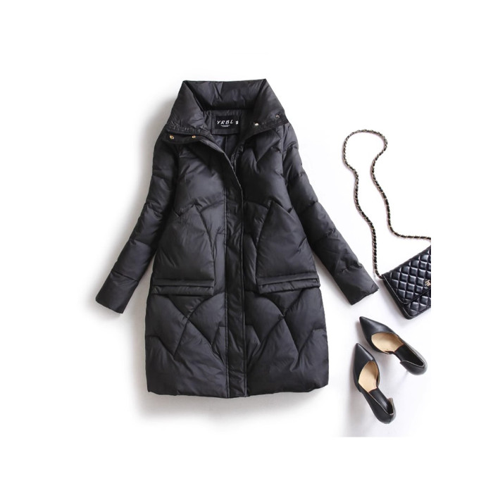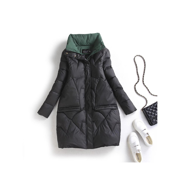 冬季棉衣女冬中長款2025新款黑色工作服羽絨棉服加厚保暖棉襖外套
