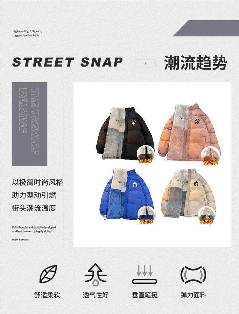 【奧萊官方】冬季棉服女2025新款雙面穿羊羔毛情侶棉衣加厚保暖