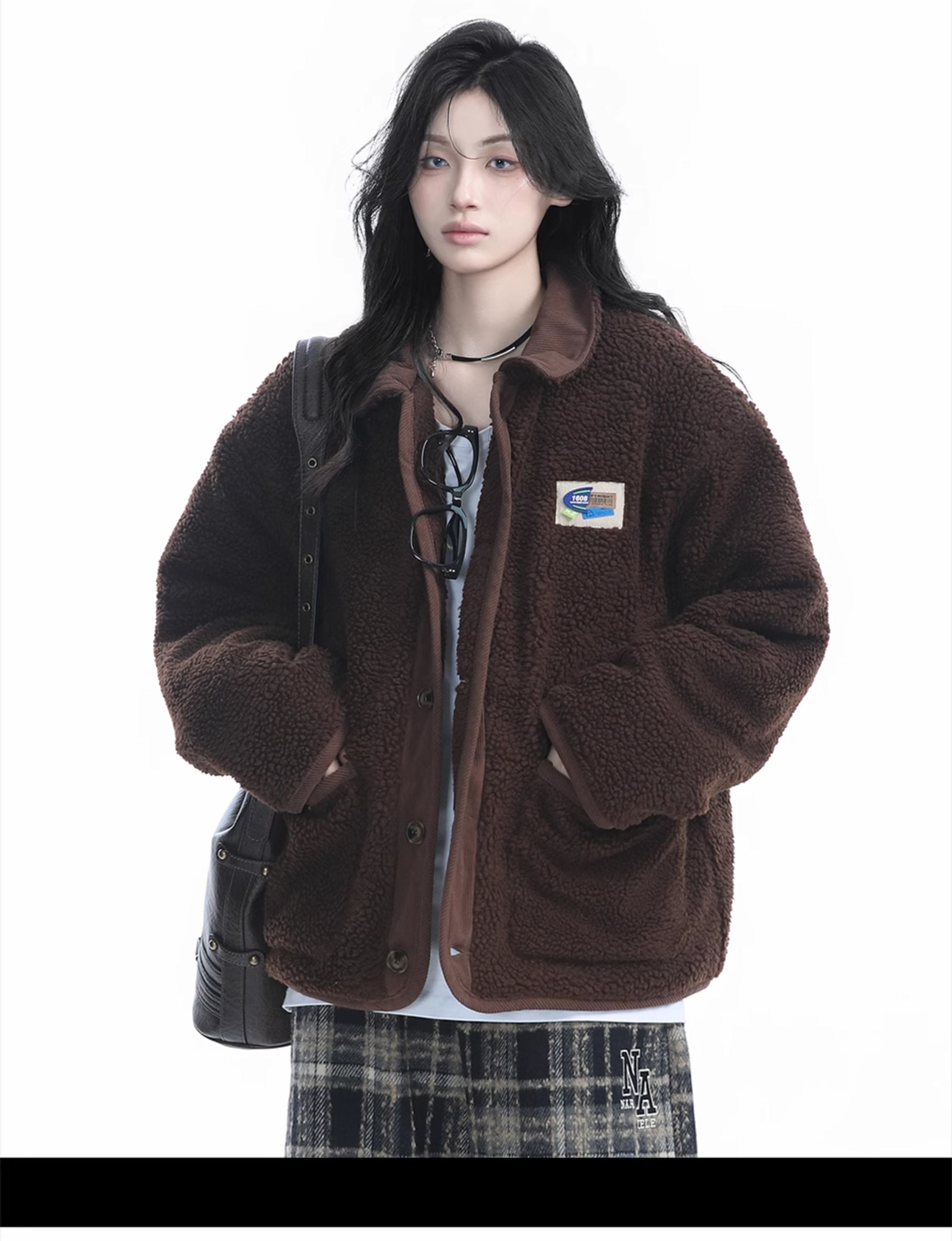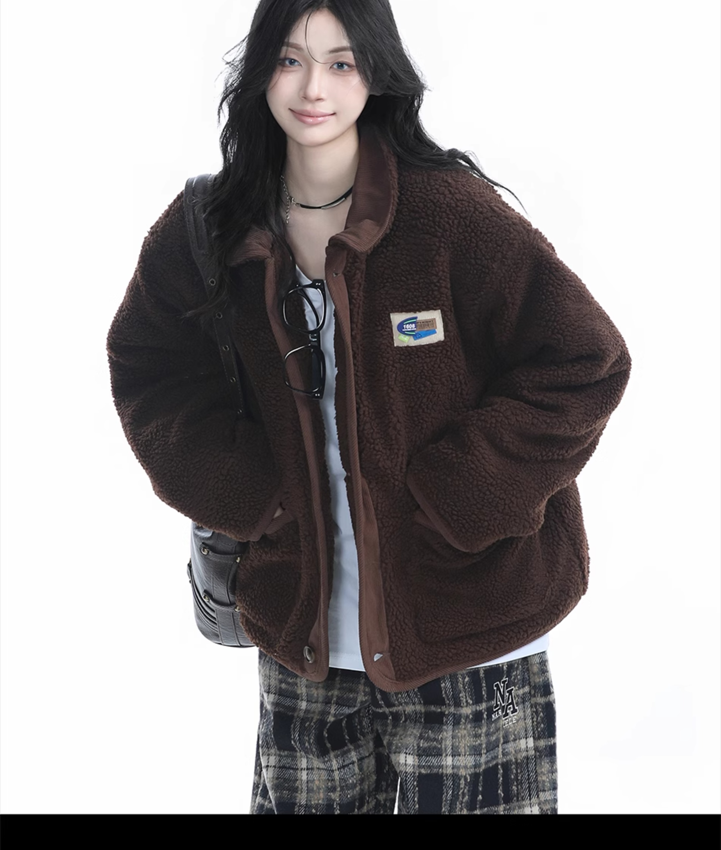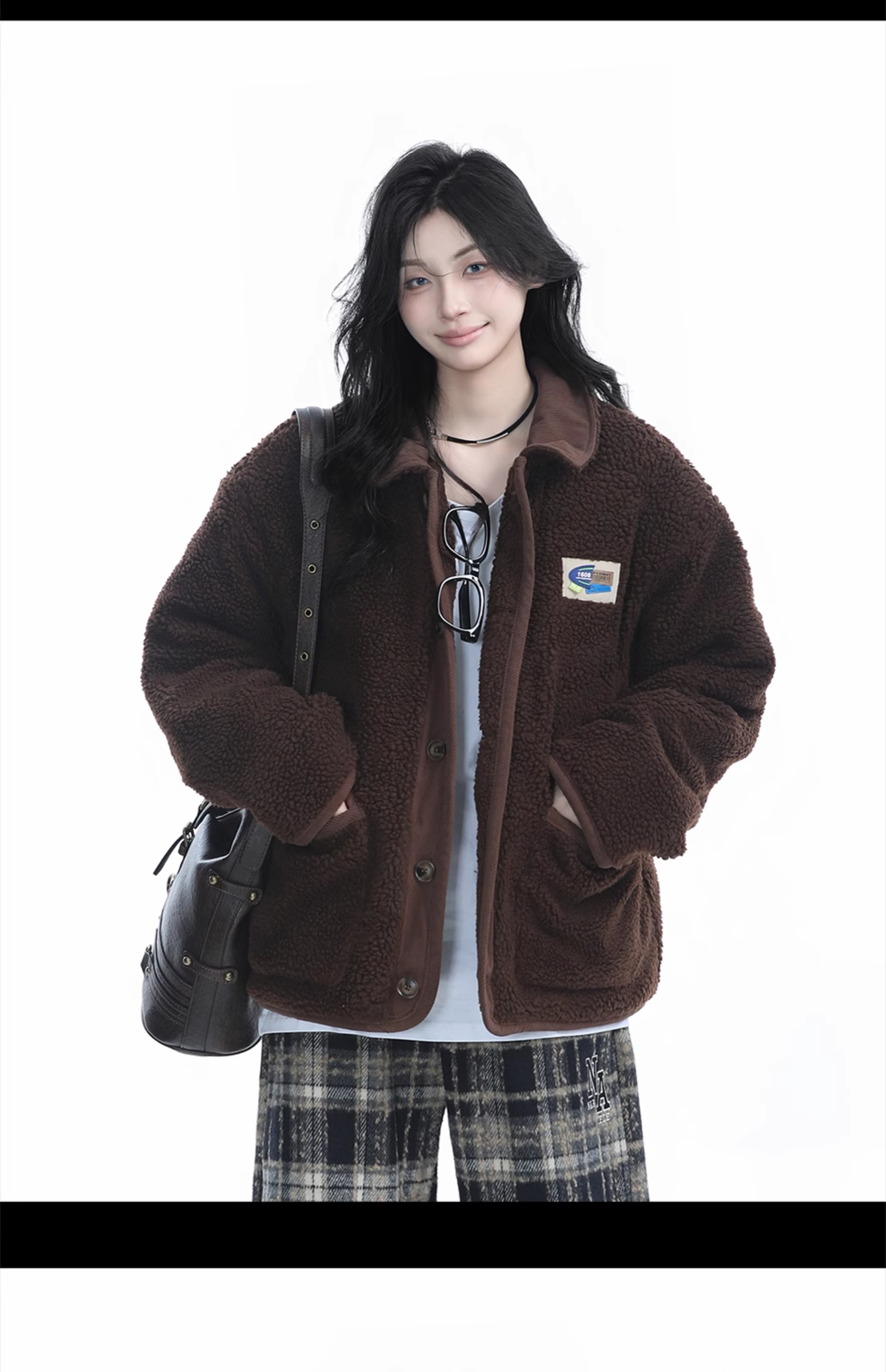 【坐吃山空】冬季美拉德棕色棉服外套女寬松加厚保暖羊羔毛棉襖潮