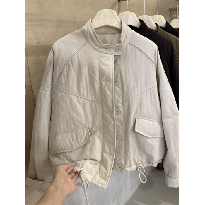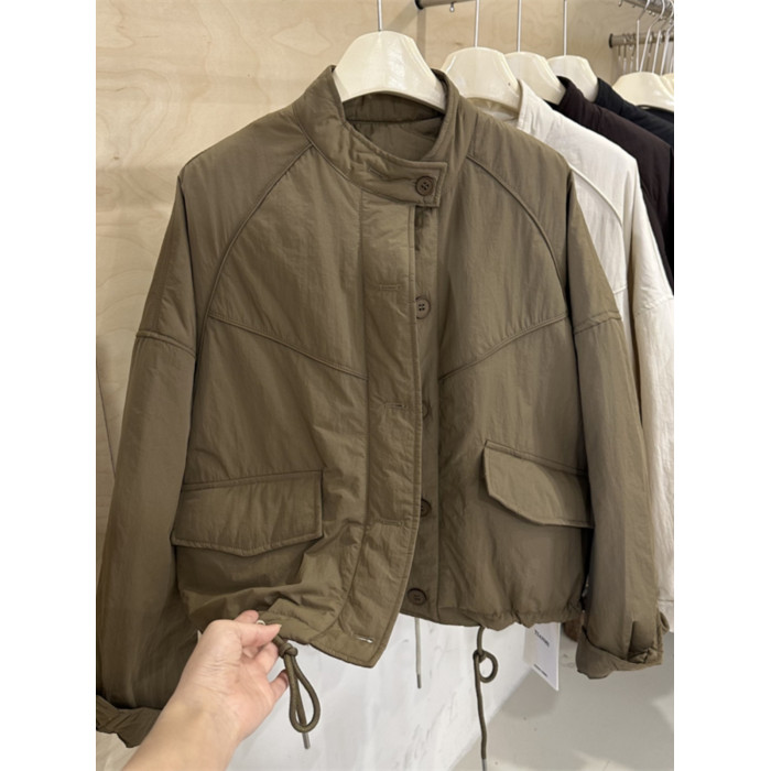 歐貨夾棉外套女工裝風寬松立領夾克2025秋冬新款休閒短款保暖棉衣