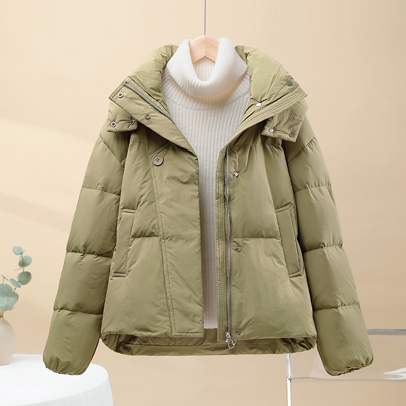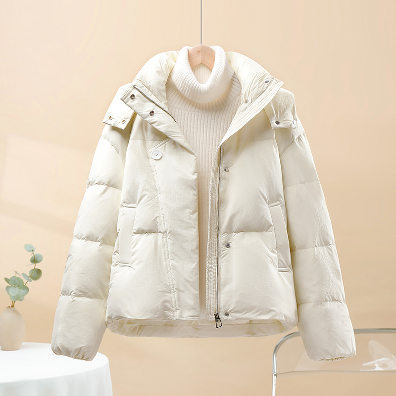 短款加絨加厚麵包服女款2025秋冬季小個子洋氣休閒連帽羽絨棉服潮
