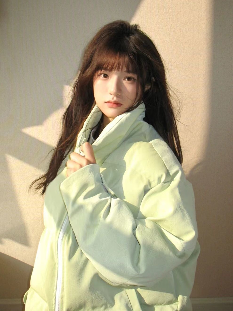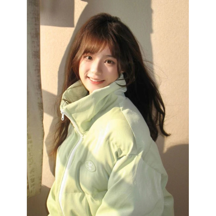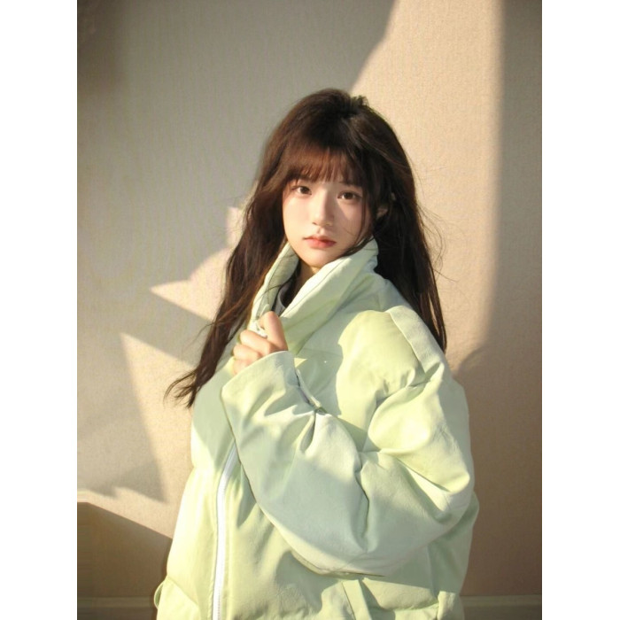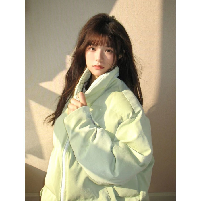 大碼淺綠色PU皮棉衣棉服外套女冬季防風加厚小衆oversize麵包服潮