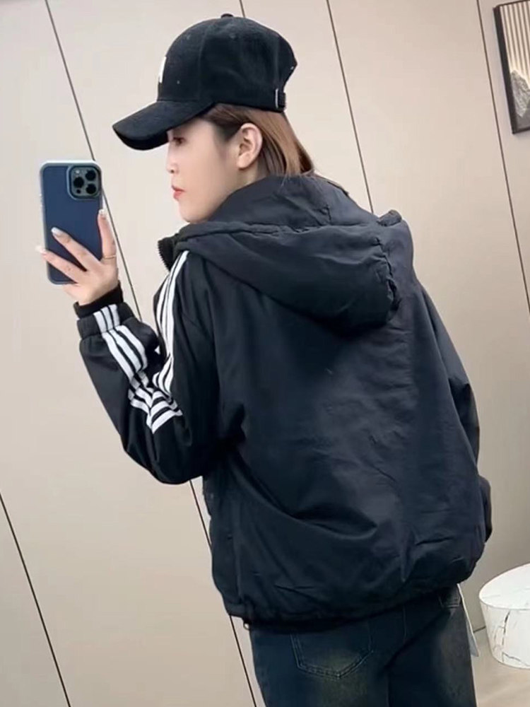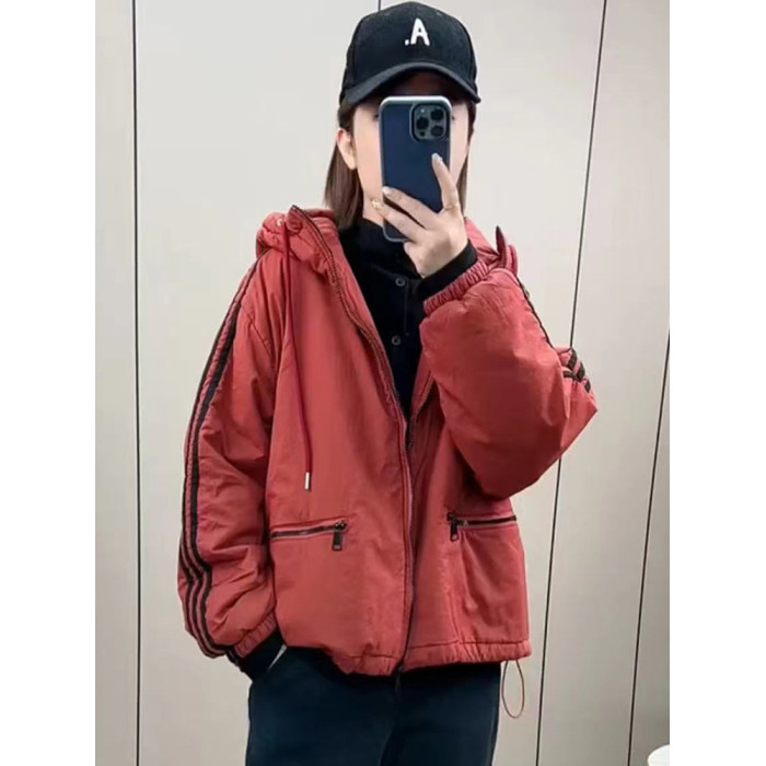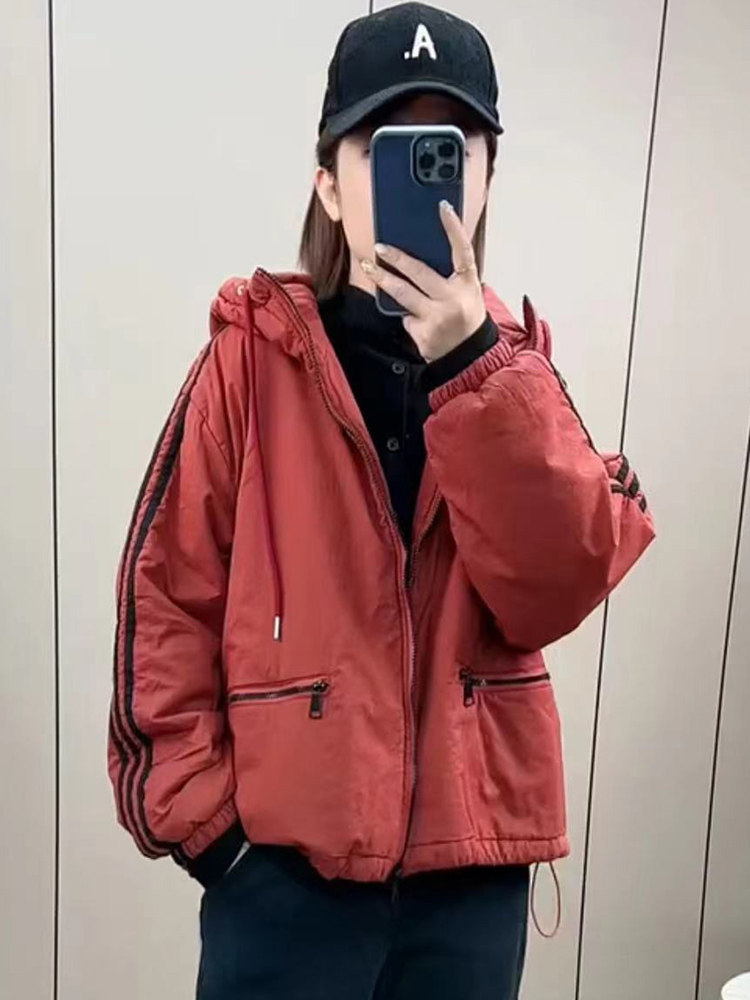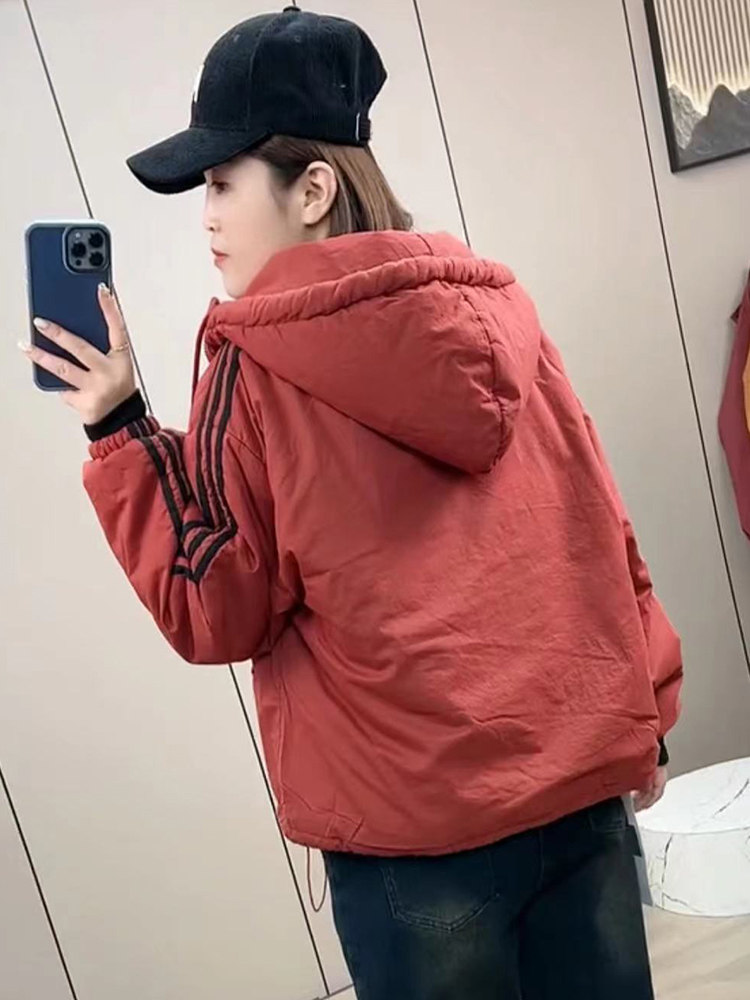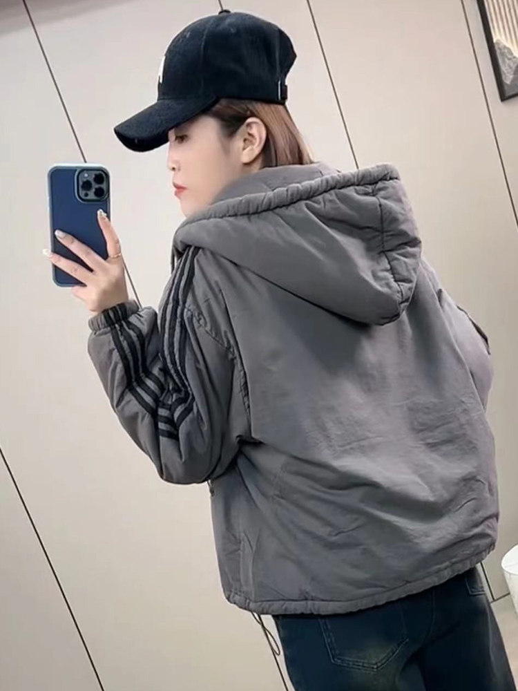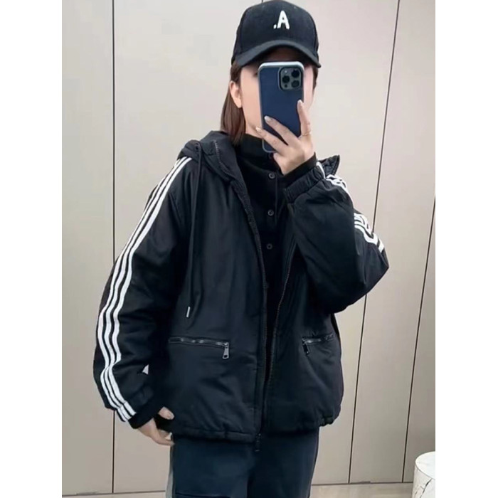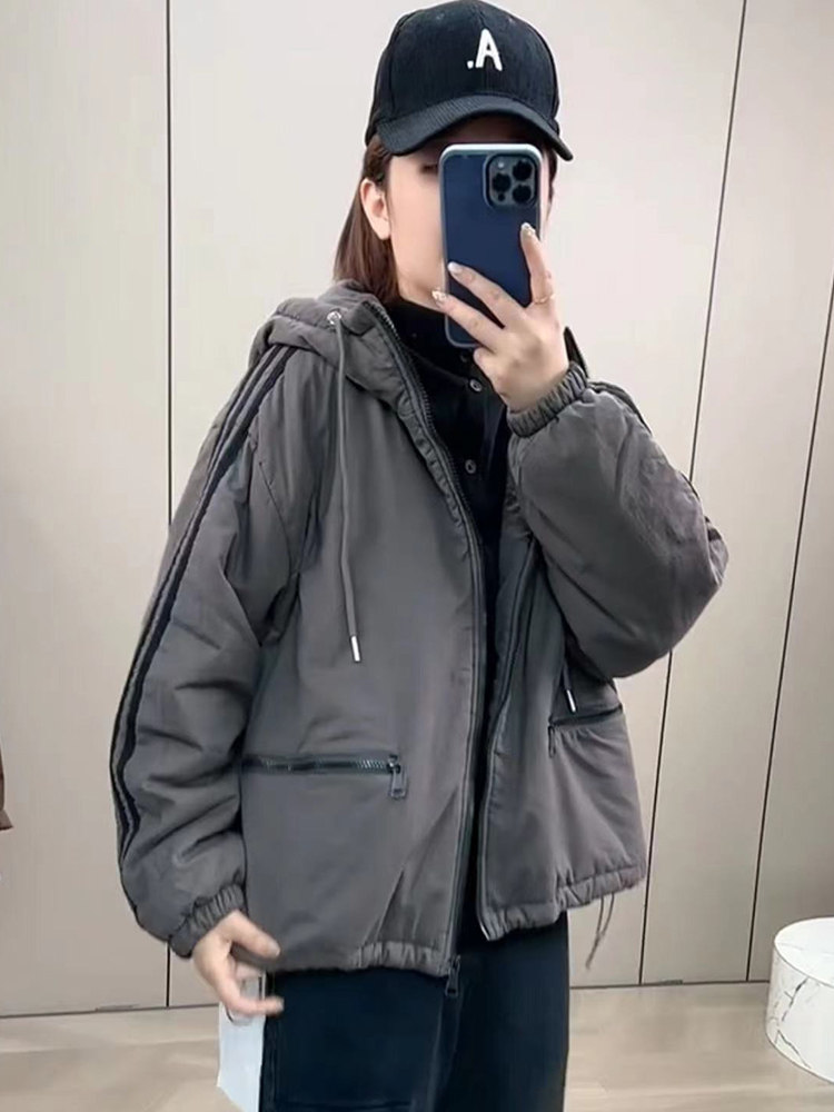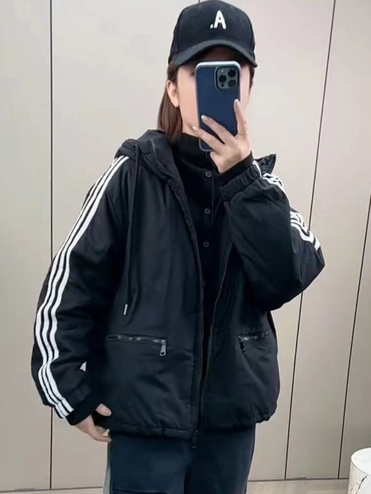 棉服女2025年新款秋冬季休閒寬松三道杠棉衣設計感防風夾棉外套潮