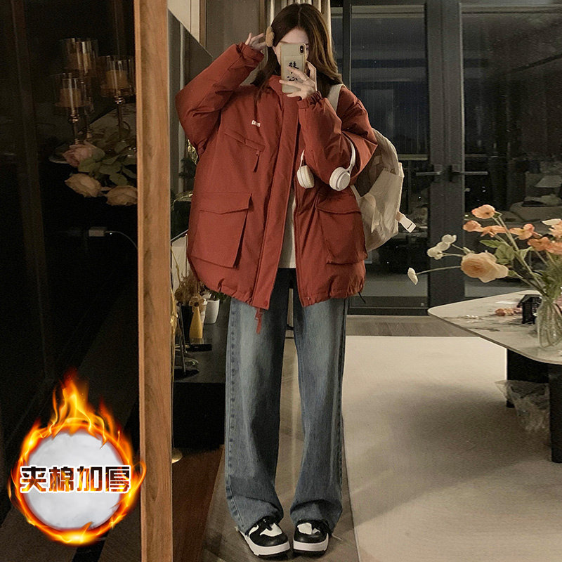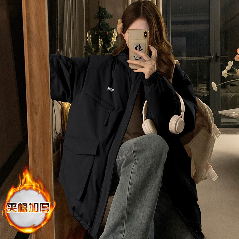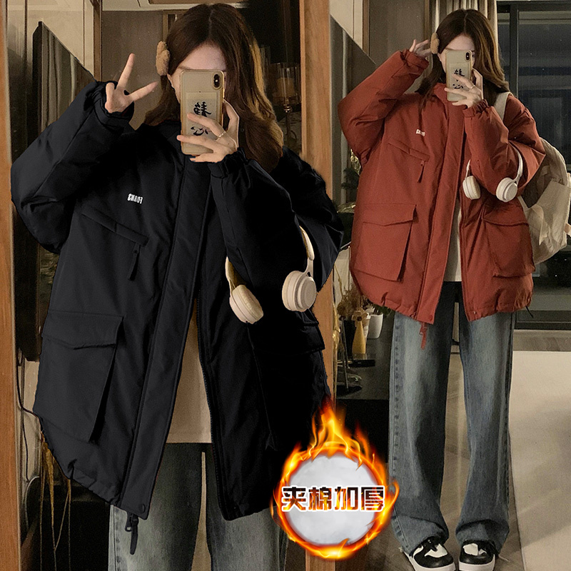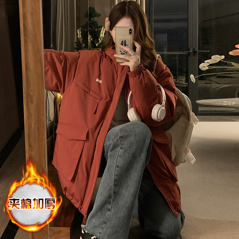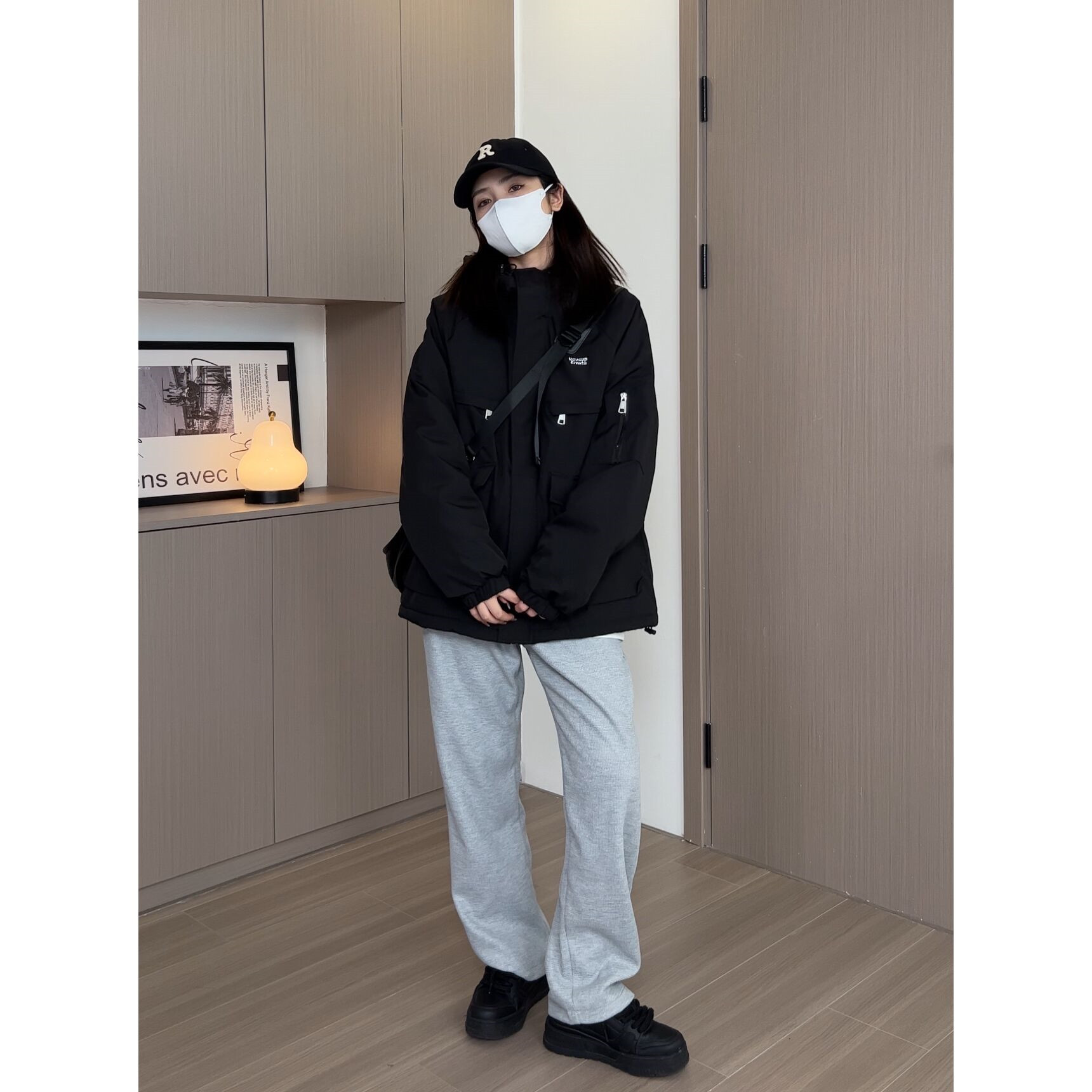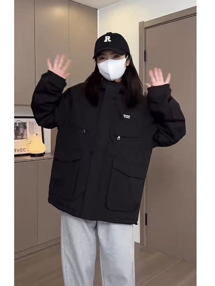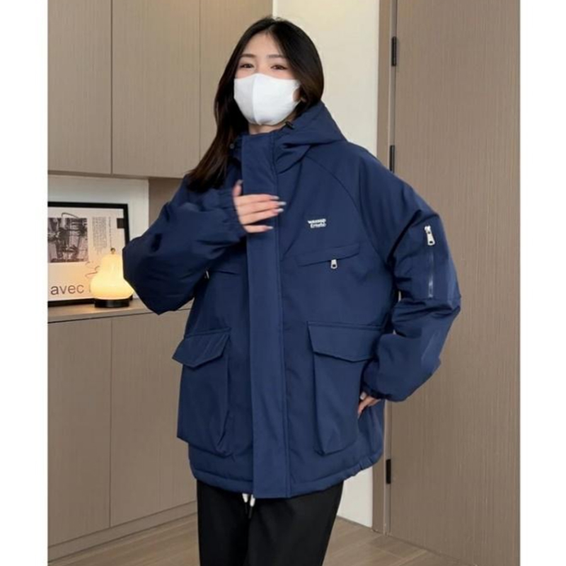 美式黑武士夾棉沖鋒衣外套男女冬季戶外機能寬松連帽加厚工裝棉服