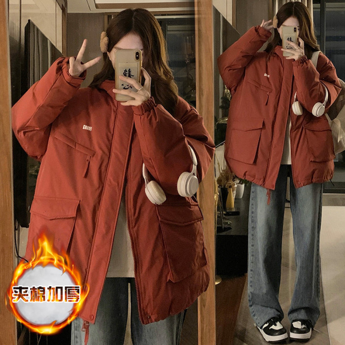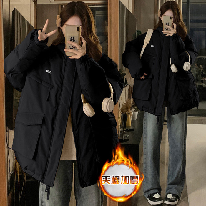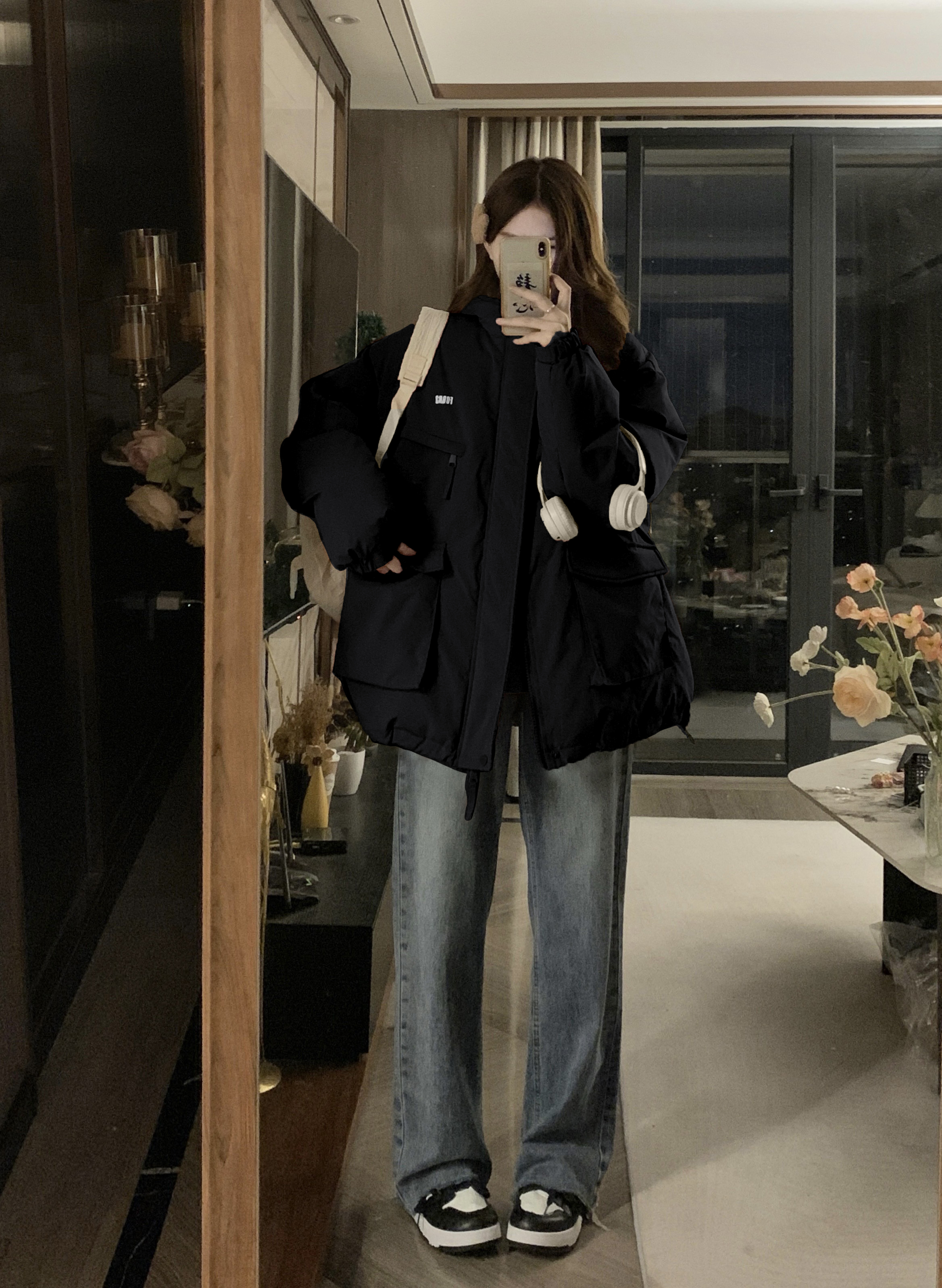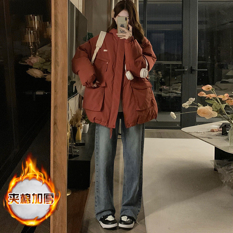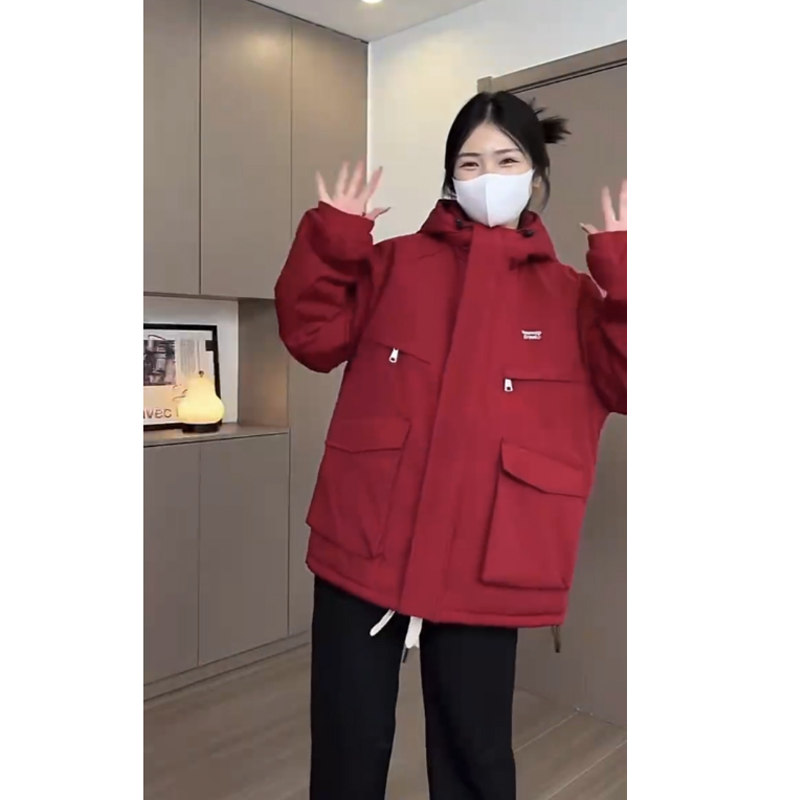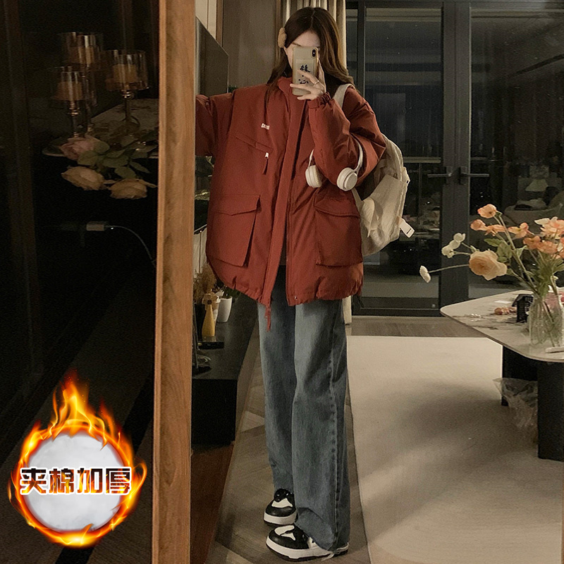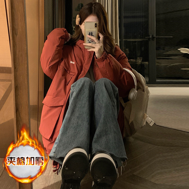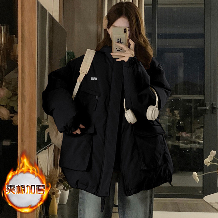美式黑武士夾棉沖鋒衣外套男女冬季戶外機能寬松連帽加厚工裝棉服
