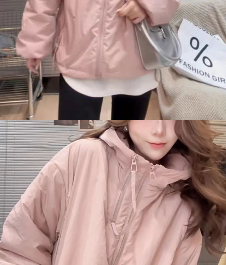 韓版連帽立領棉服外套女2025早秋寬松短款小個子休閒長袖薄款上衣