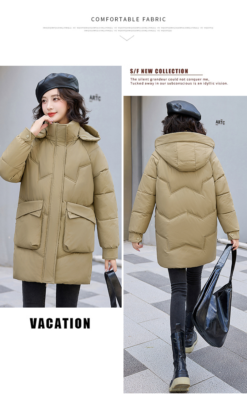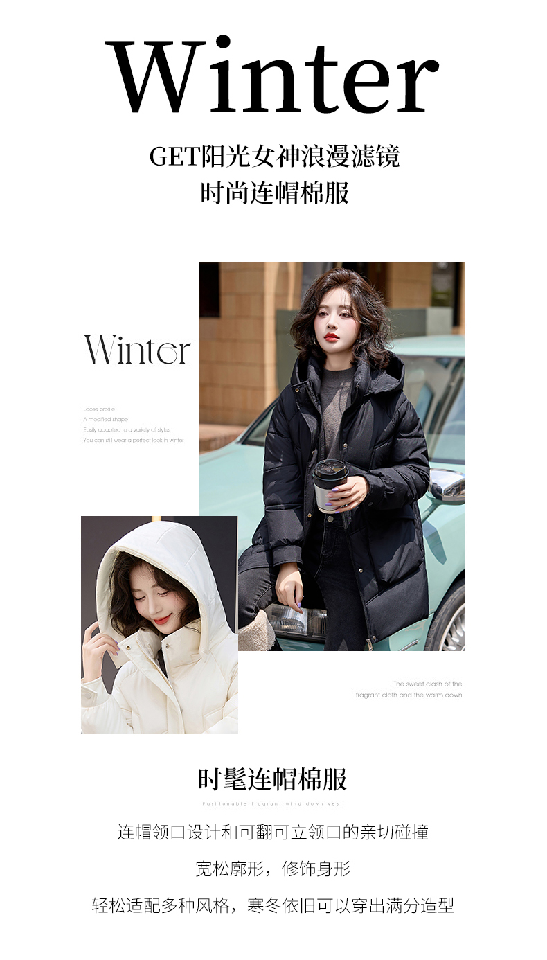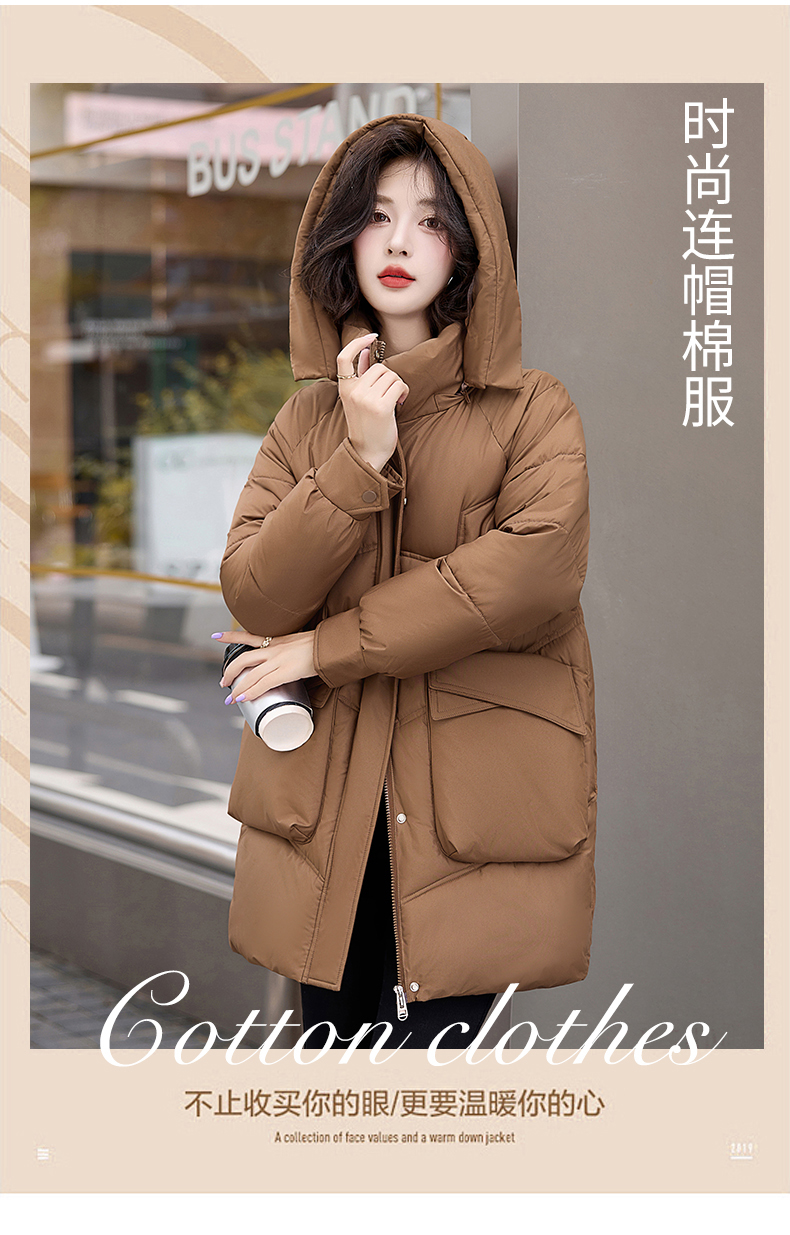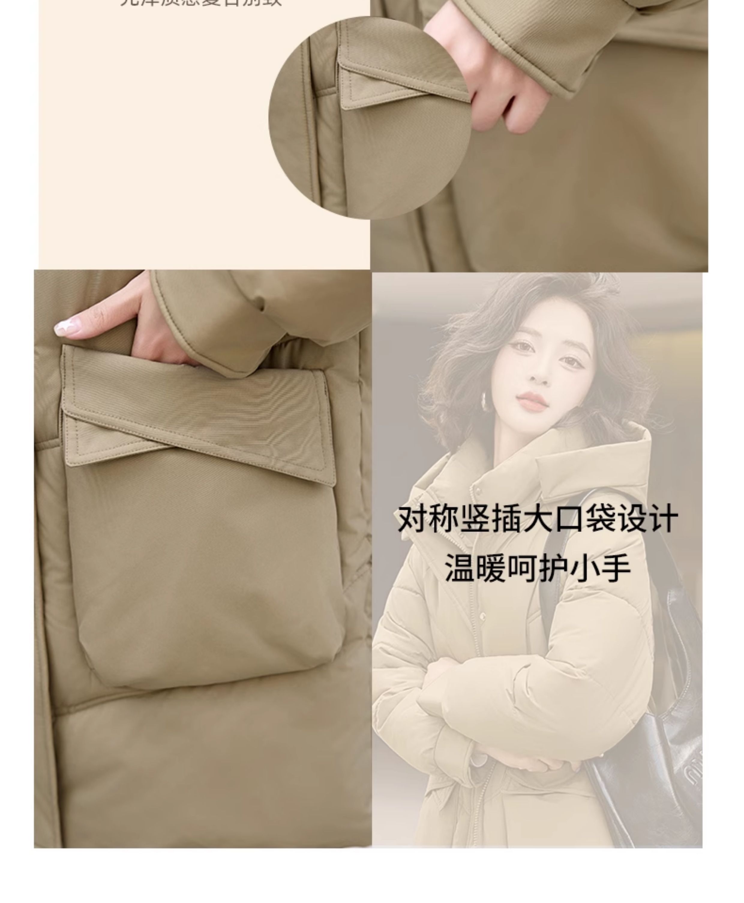 帽可拆大口袋不起駝時尚百搭加厚顯瘦羽絨棉外搭女士大碼活帽棉衣