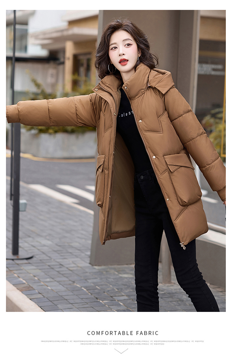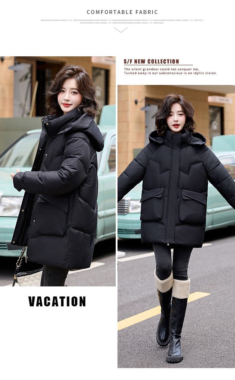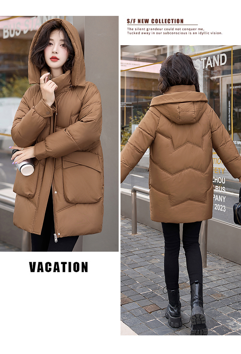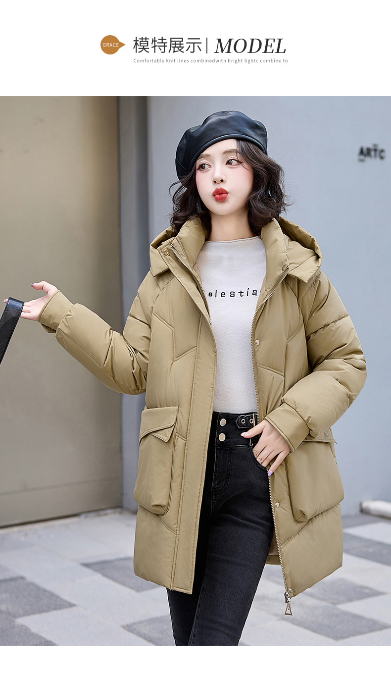 帽可拆大口袋不起駝時尚百搭加厚顯瘦羽絨棉外搭女士大碼活帽棉衣