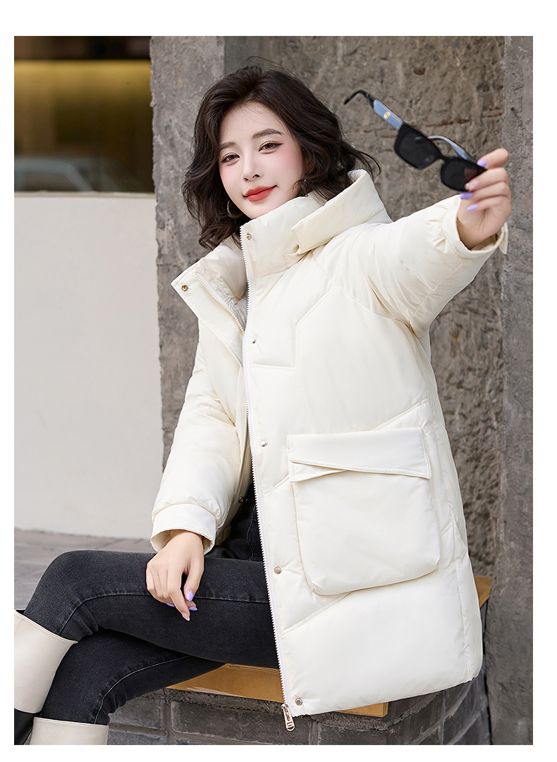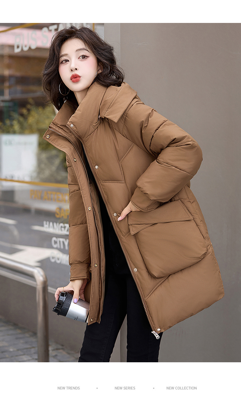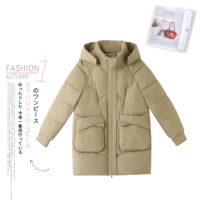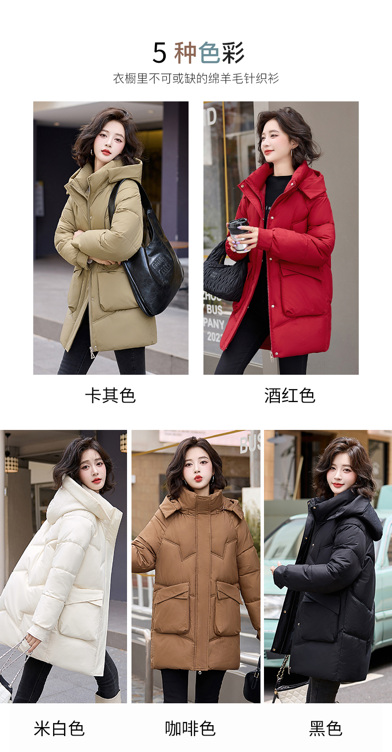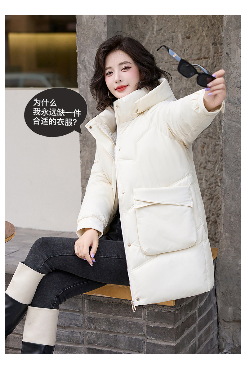 帽可拆大口袋不起駝時尚百搭加厚顯瘦羽絨棉外搭女士大碼活帽棉衣