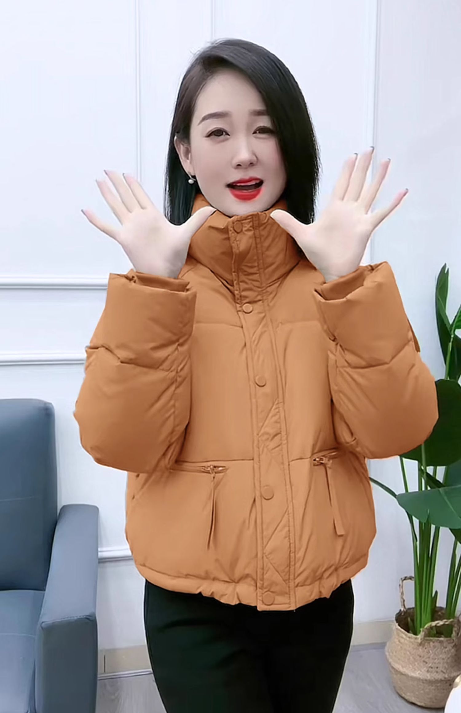 2025冬季新款純色小香風棉服外套立領麵包服短款小個子開衫棉衣女