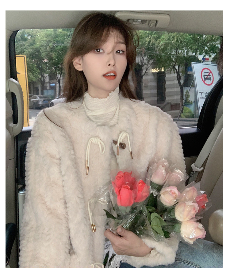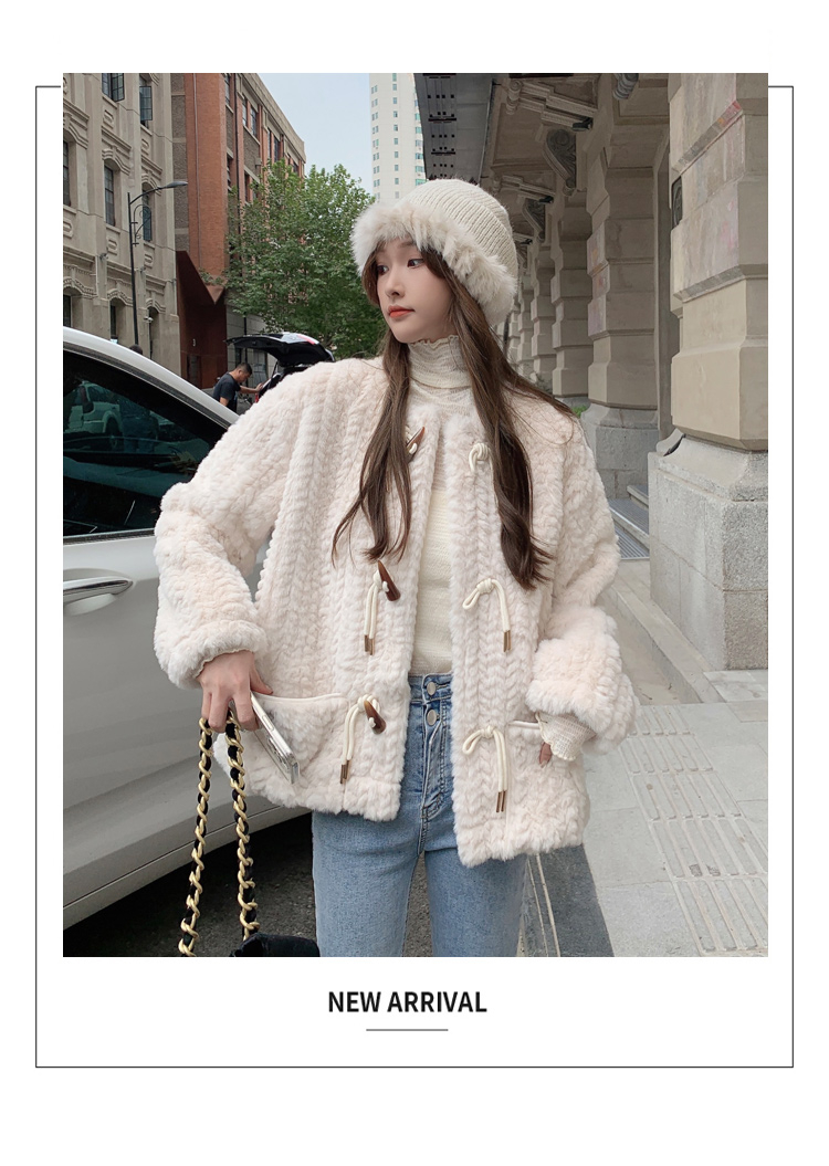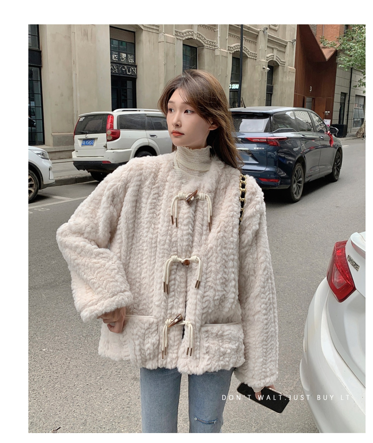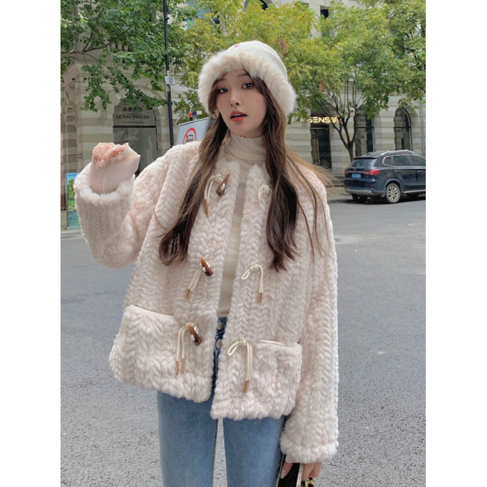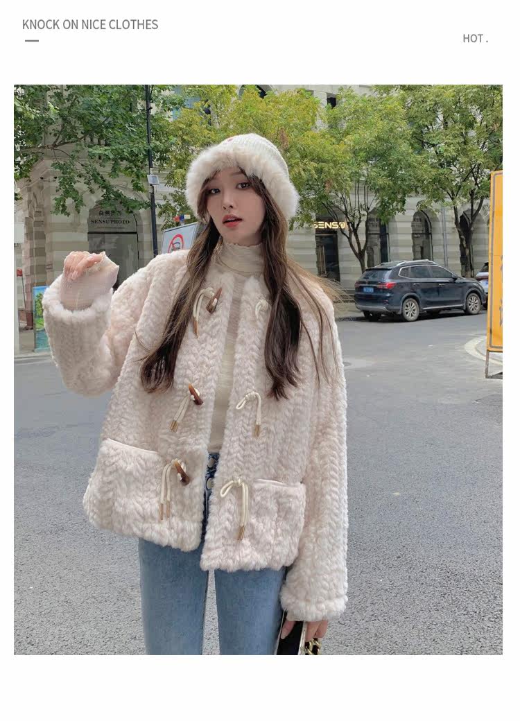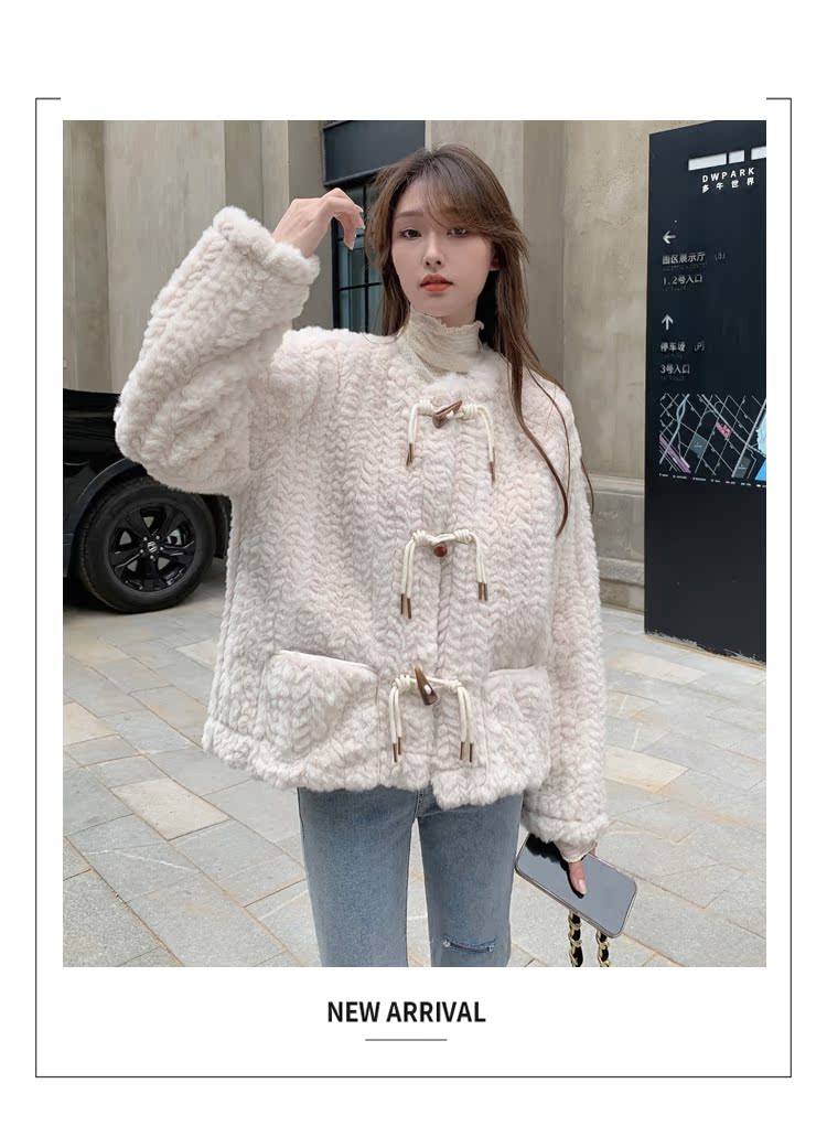 羊羔毛外套女冬短款皮毛一體寬松毛毛絨牛角釦圓領羊毛羔百搭學生